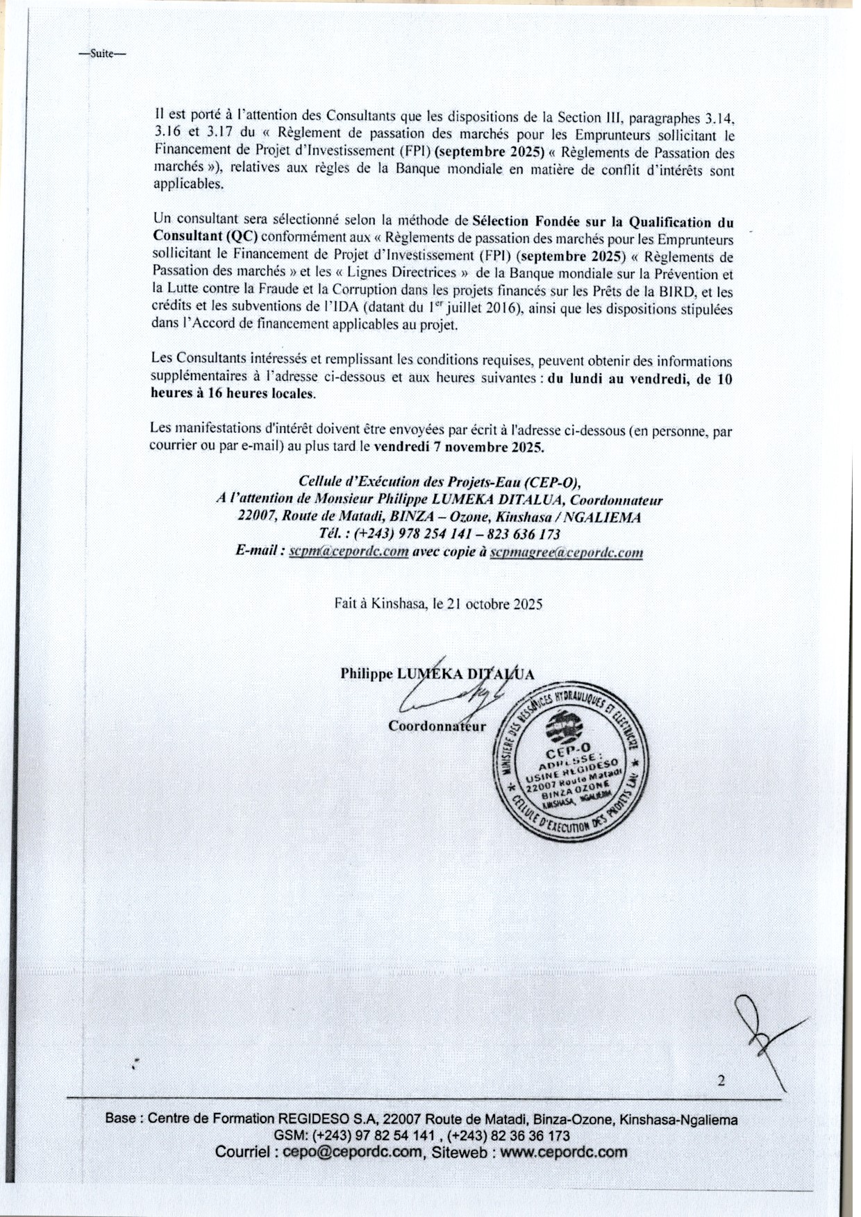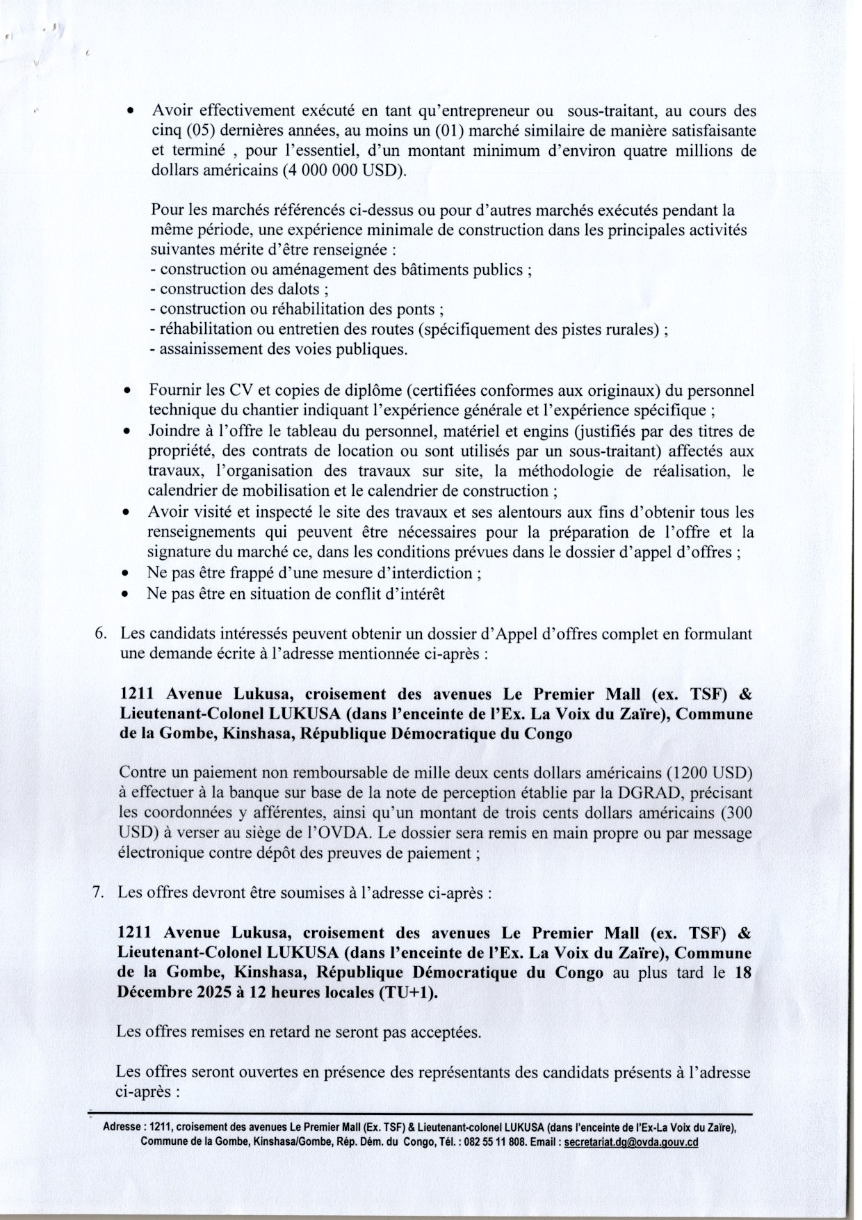 Avis de report de la date limite de depôt des offres relatif au marché d’acquisition de pièces d’assurances pour éléments turbines des groupes G27-G28 de la centrale hydroélectrique INGA 2.