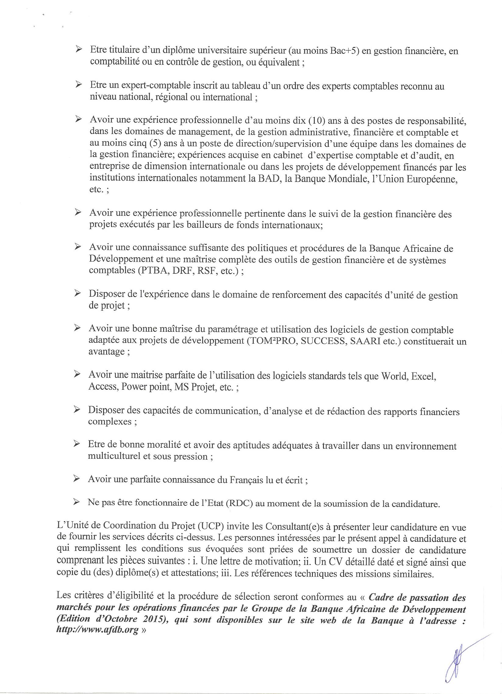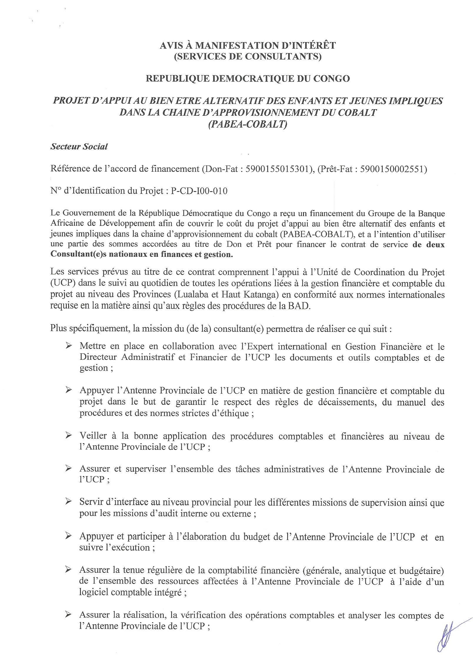 RECRUTEMENT D’UN CONSULTANT/FIRME EN VUE DES PRESTATIONS DE CONTRÔLE ET SURVEILLANCE DES TRAVAUX DE GÉNIE CIVIL ET D’ÉQUIPEMENTS »/MBUJI-MAYI.