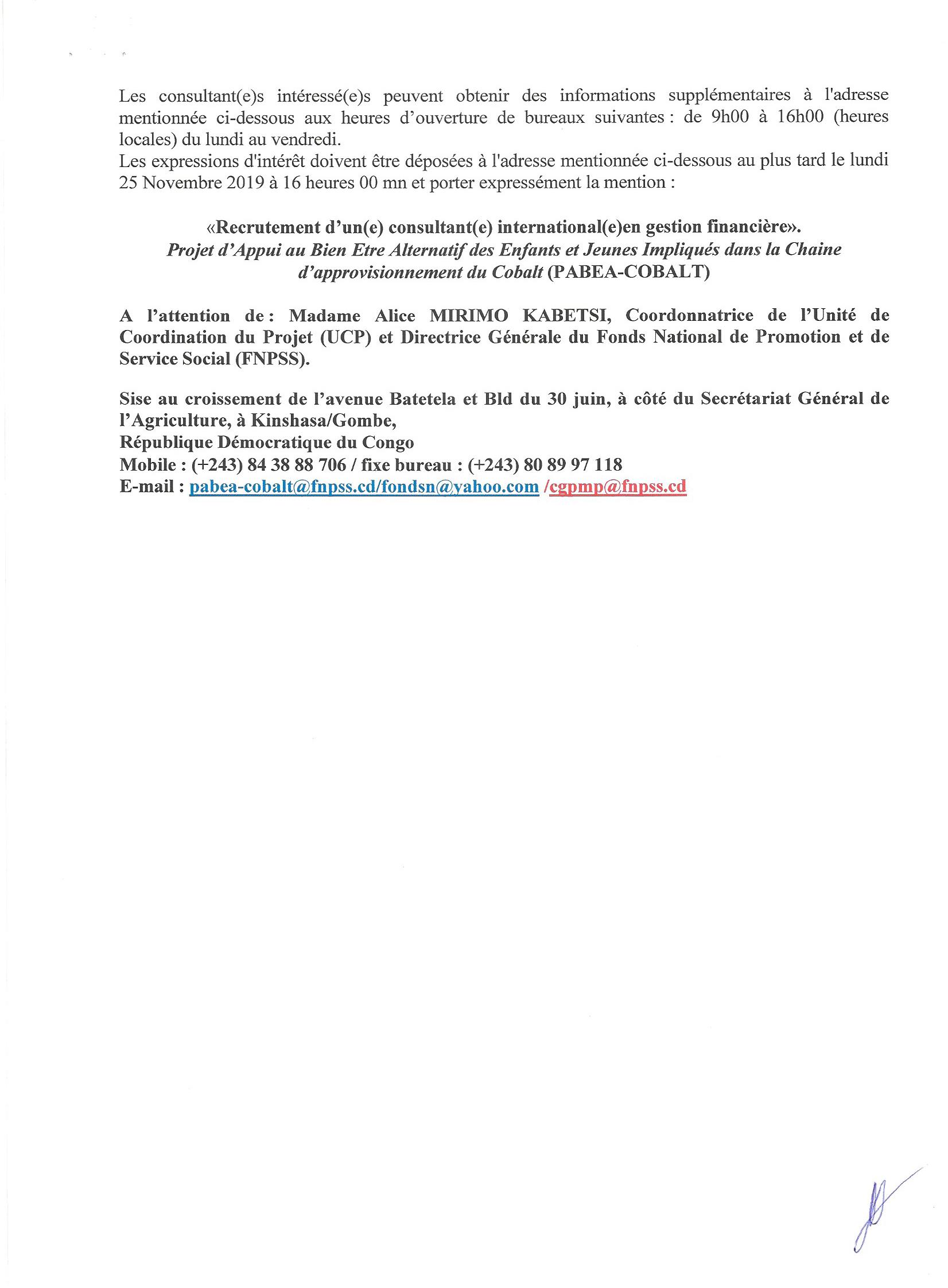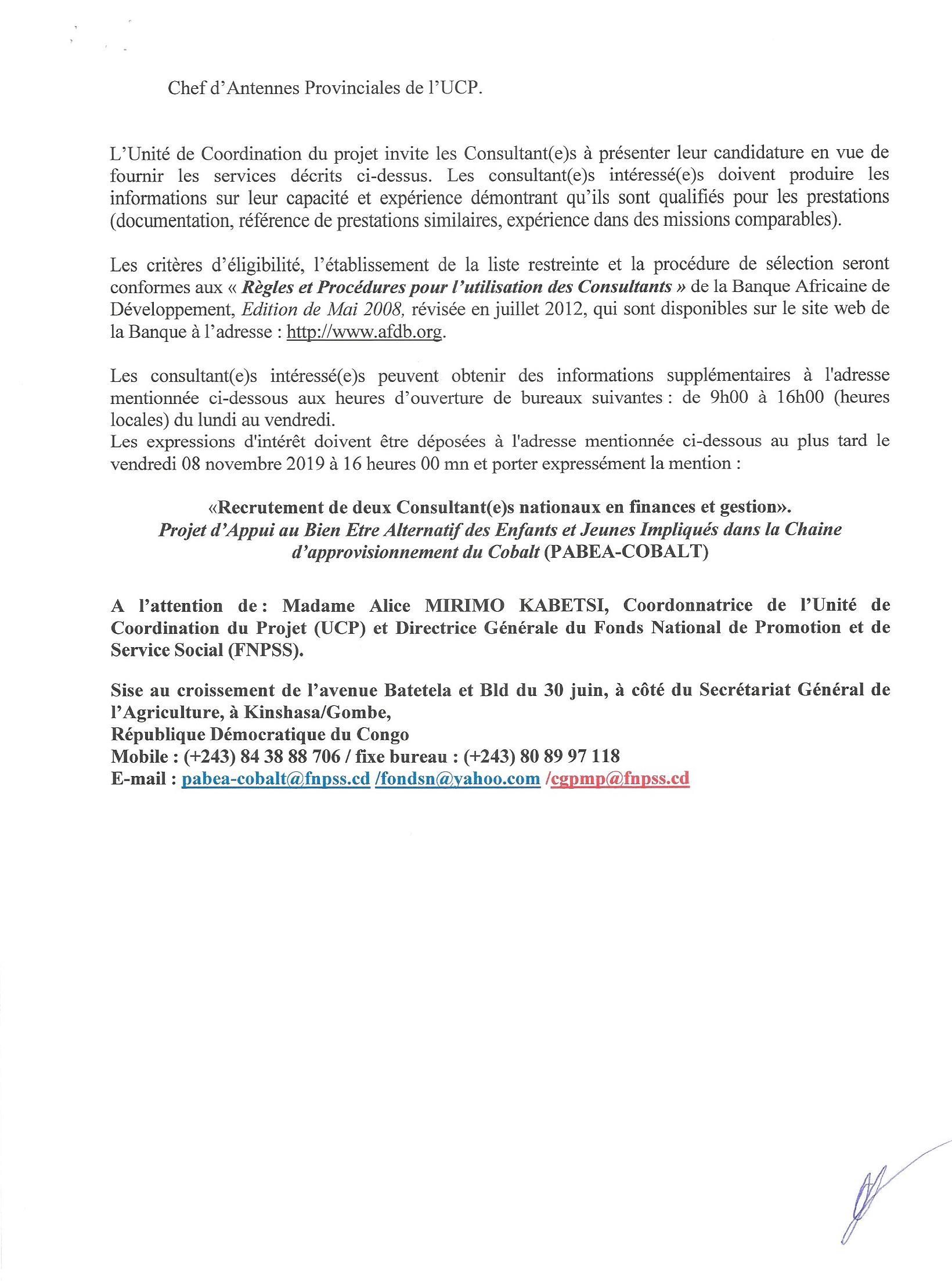 CONTRAT DE SERVICE DES DEUX (02) CONSULTANT (E) NATIONAUX EN FINANCES ET GESTION.