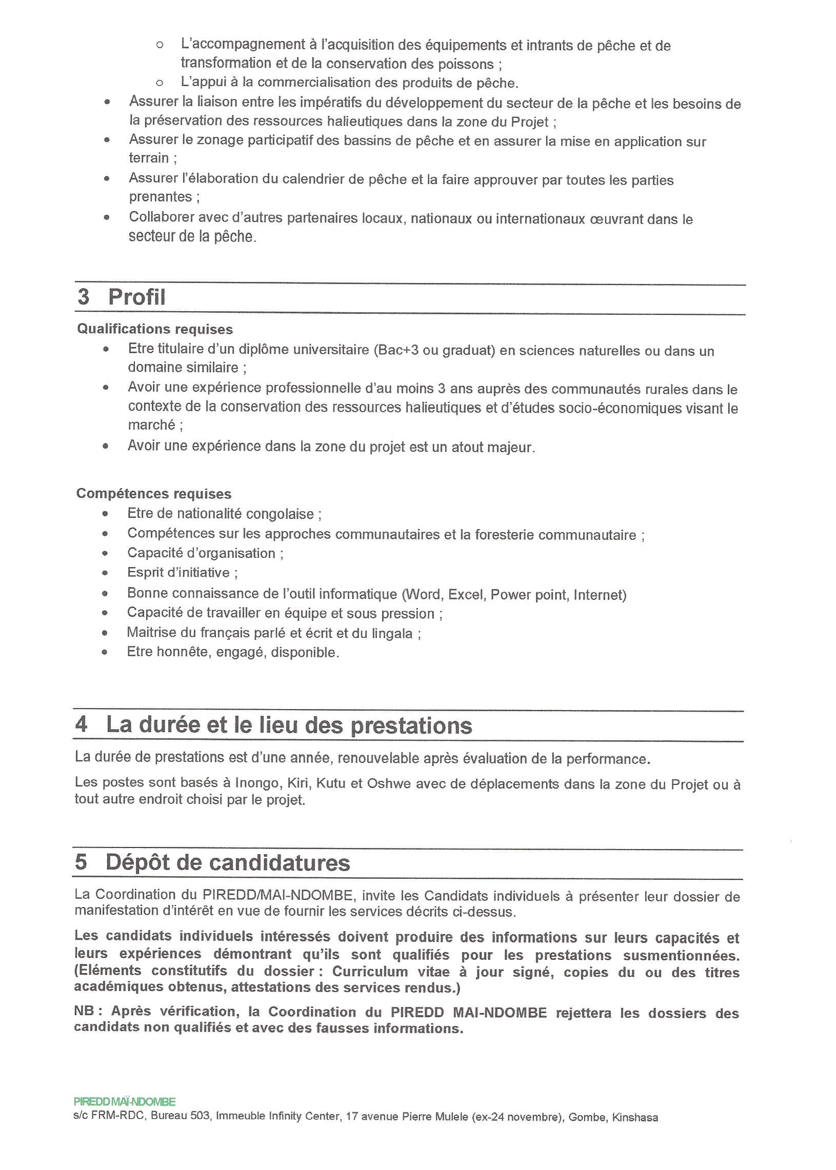 Recrutement de quatre (4) Responsable Pêche du Territoire.