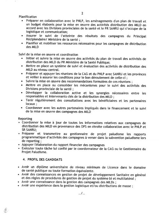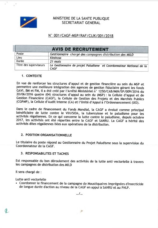 Recrutement d’un Gestionnaire chargé des campagnes de distribution des MILD