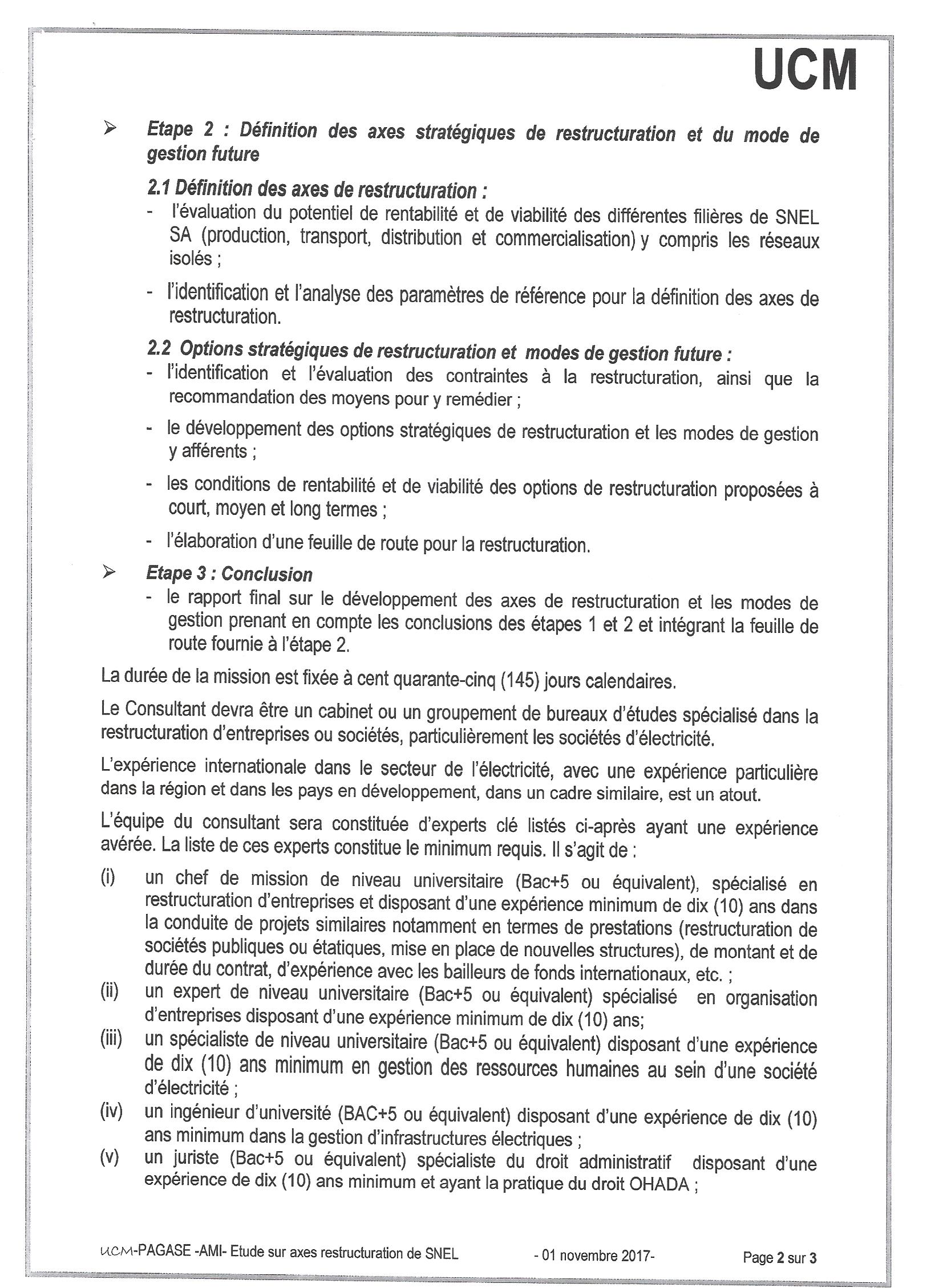 ETUDE DES AXES DE RESTRUCTURATION DE LA SOCIÉTÉ NATIONALE D’ELECTRICITÉ.