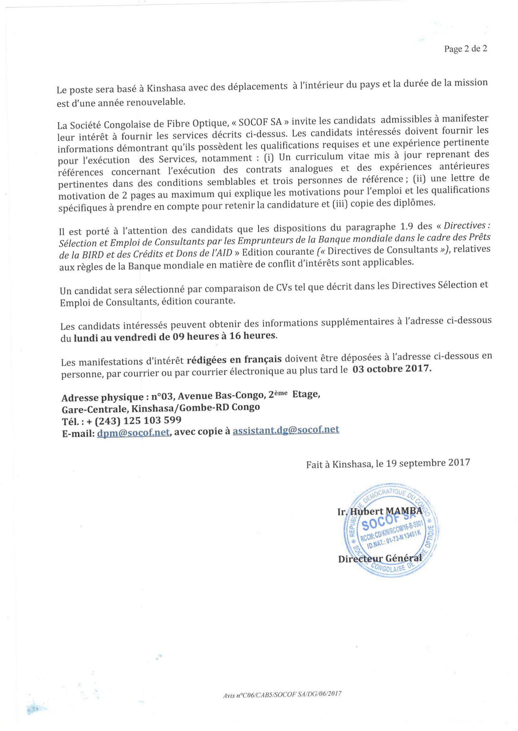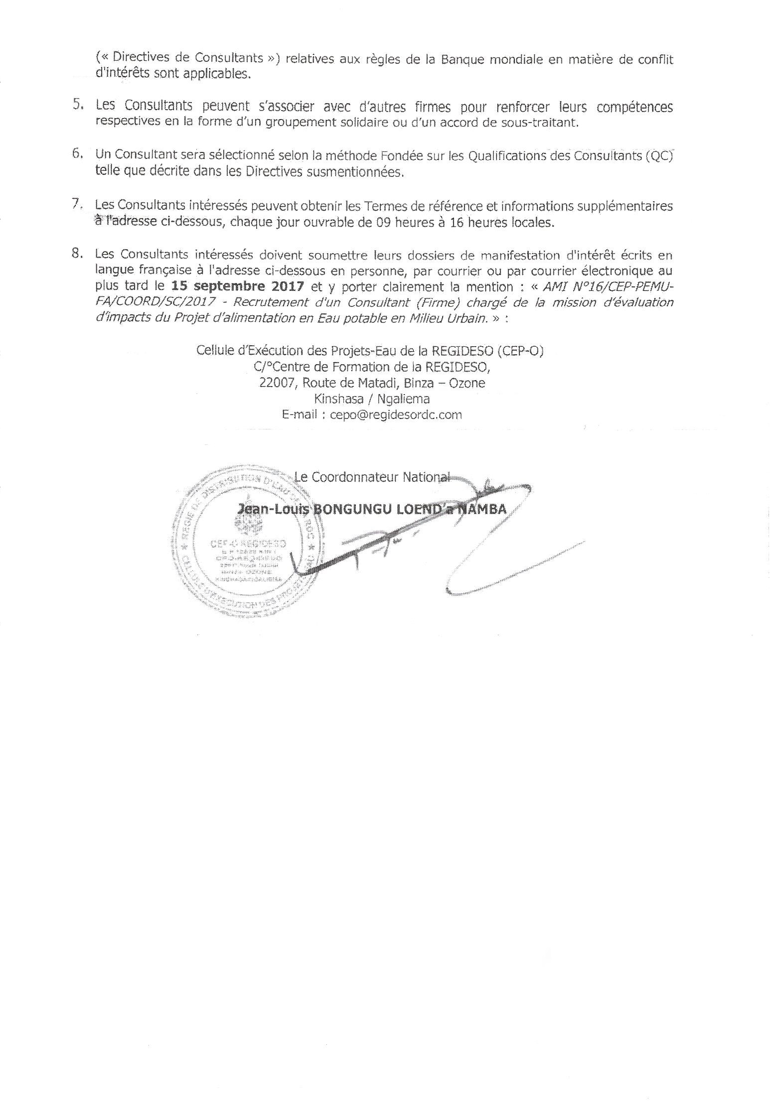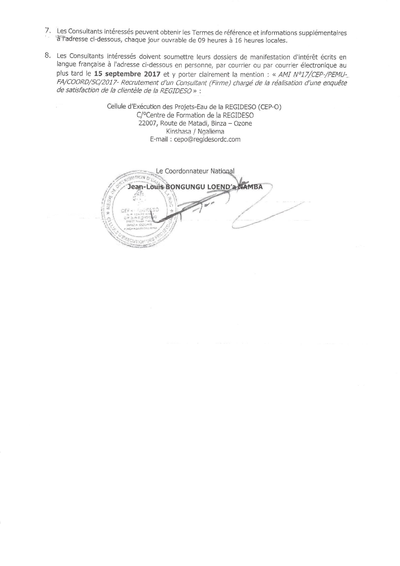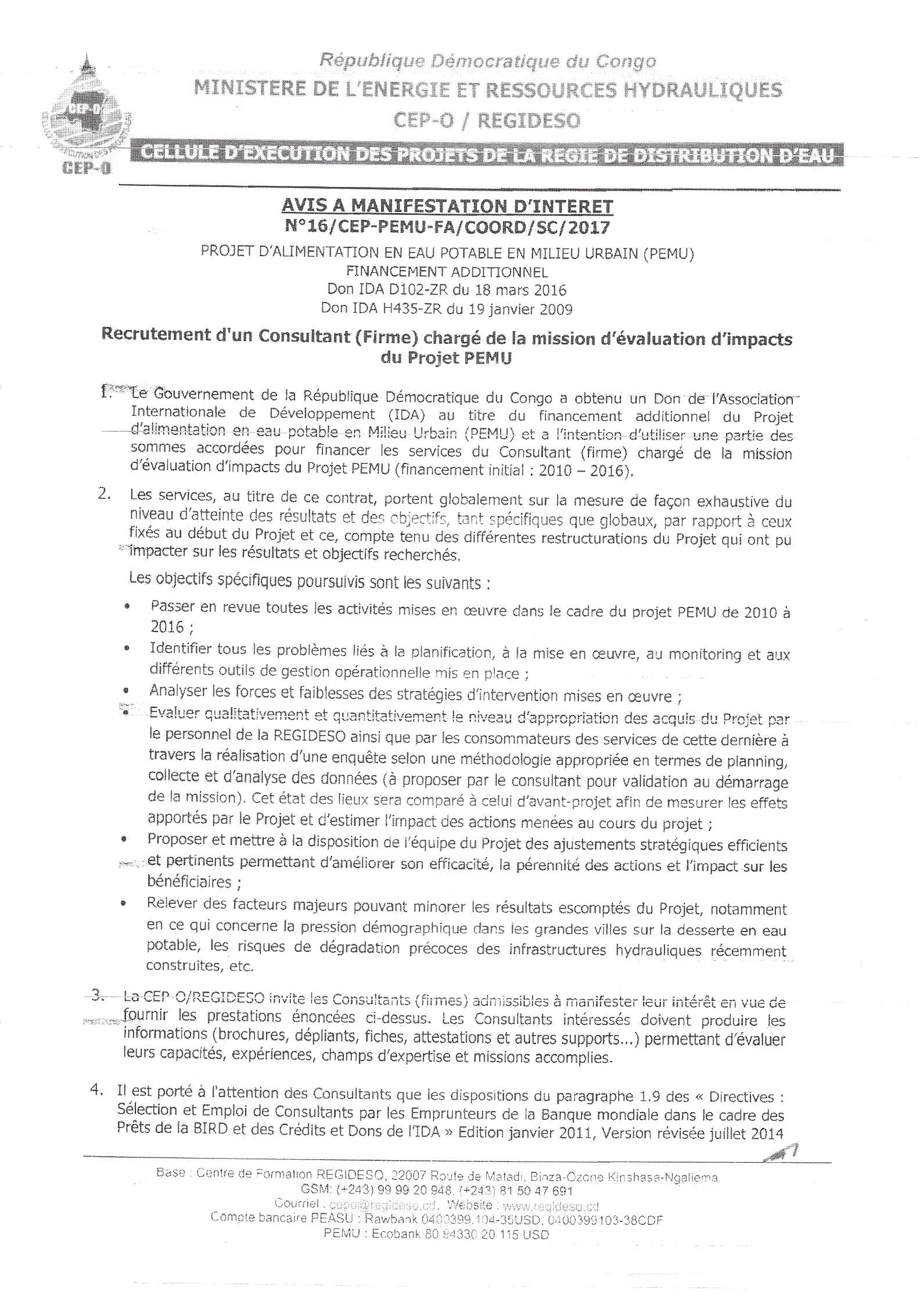 Recrutement de Consultant(s) – Firme(s), Centre(s) de Formation – chargé(s) de la formation des agents et cadres de la REGIDESO à Kinshasa N°19