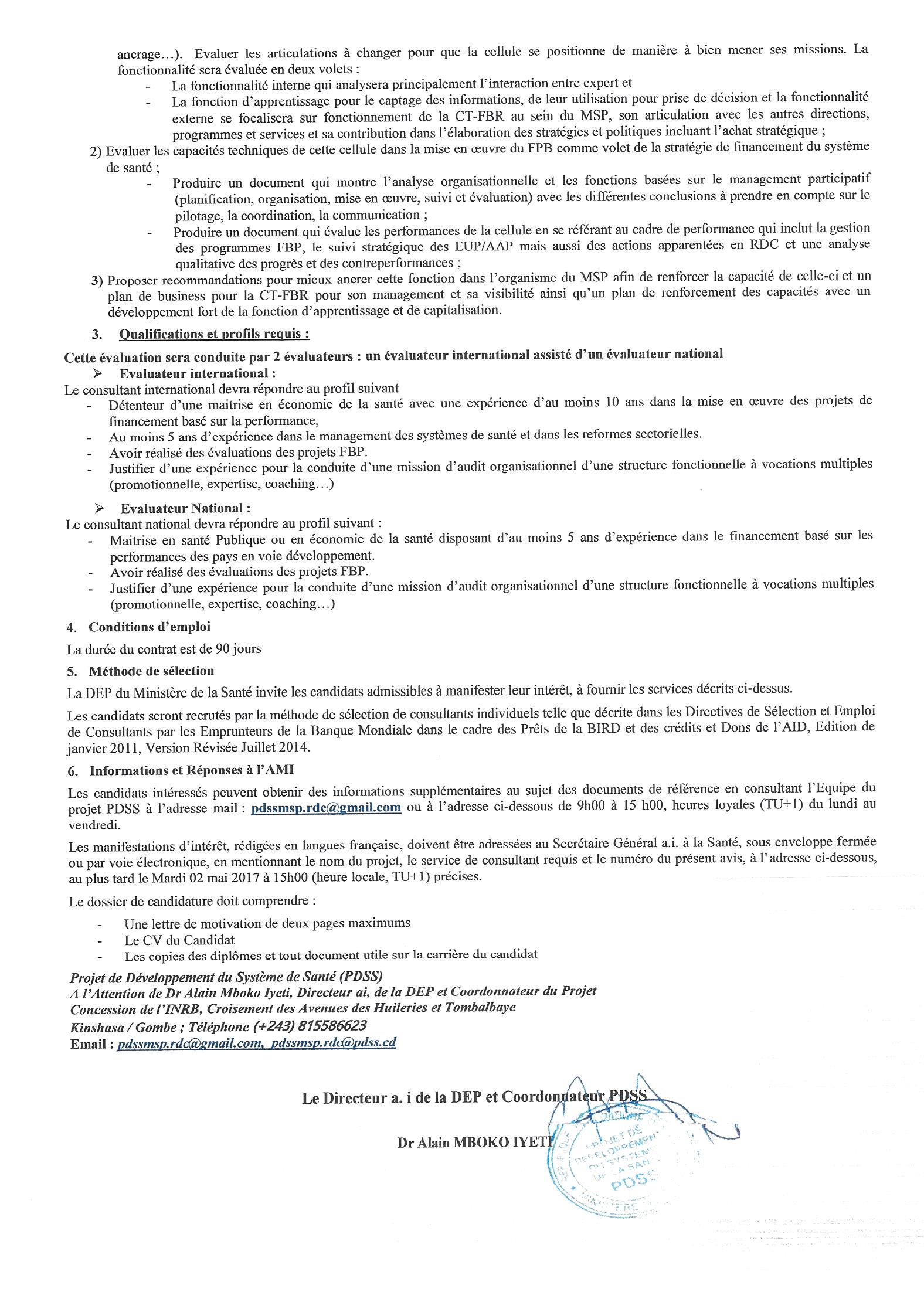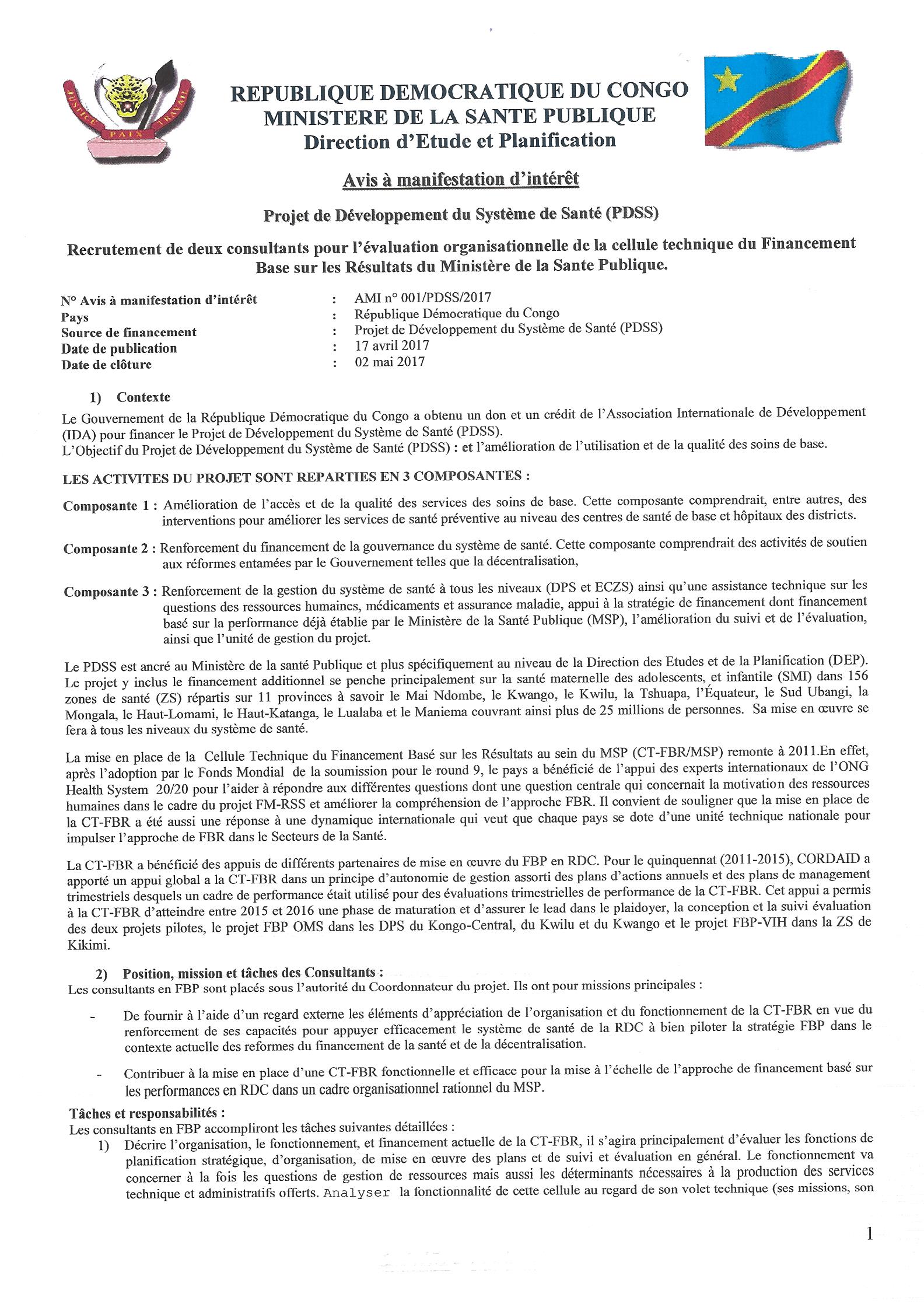RECRUTEMENT DE DEUX CONSULTANTS POUR L’ÉVALUATION ORGANISATIONNELLE DE LA CELLULE TECHNIQUE DU FINANCEMENT BASE SUR LES RÉSULTATS DU MINISTÈRE DE LA SANTE PUBLIQUE.