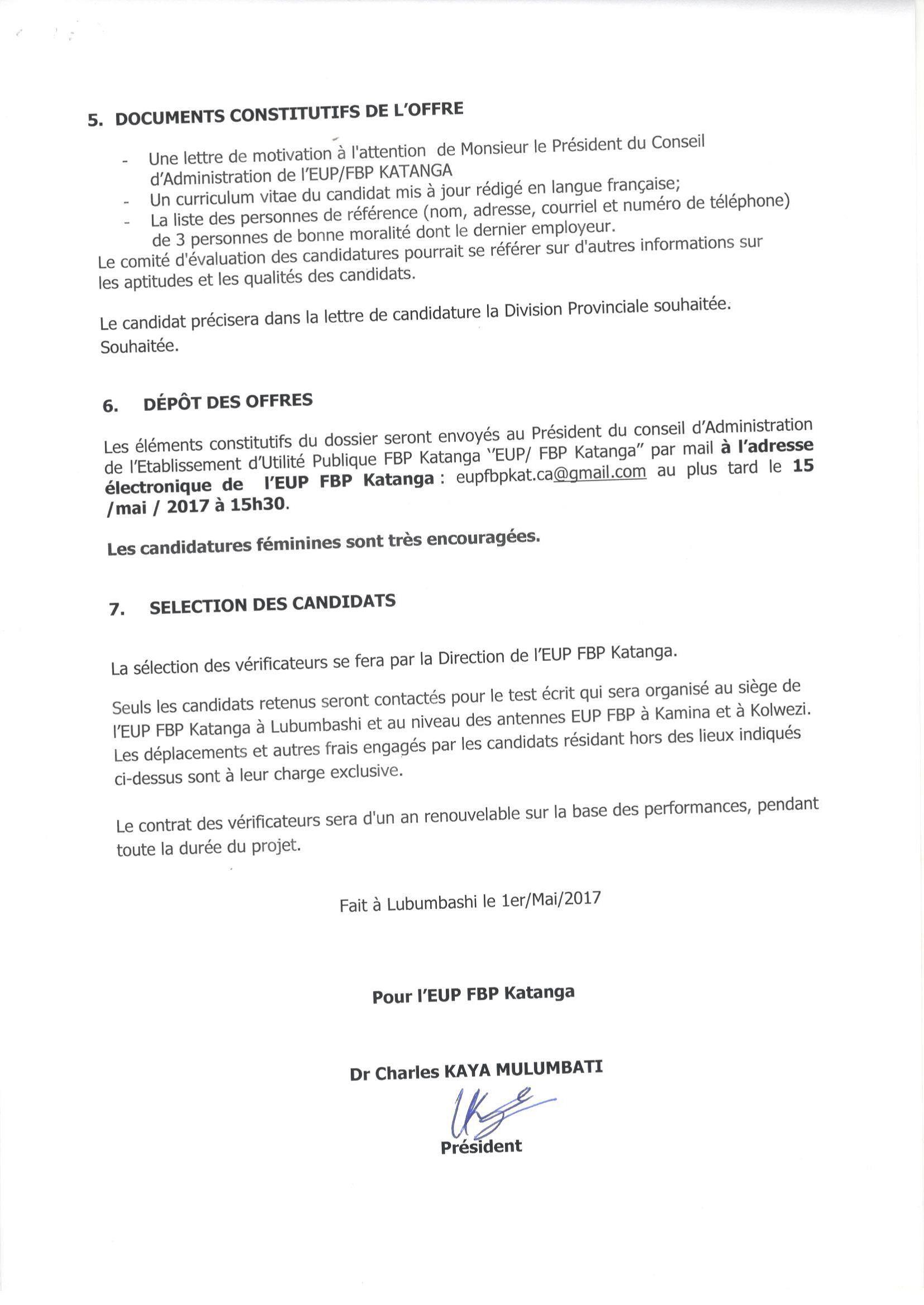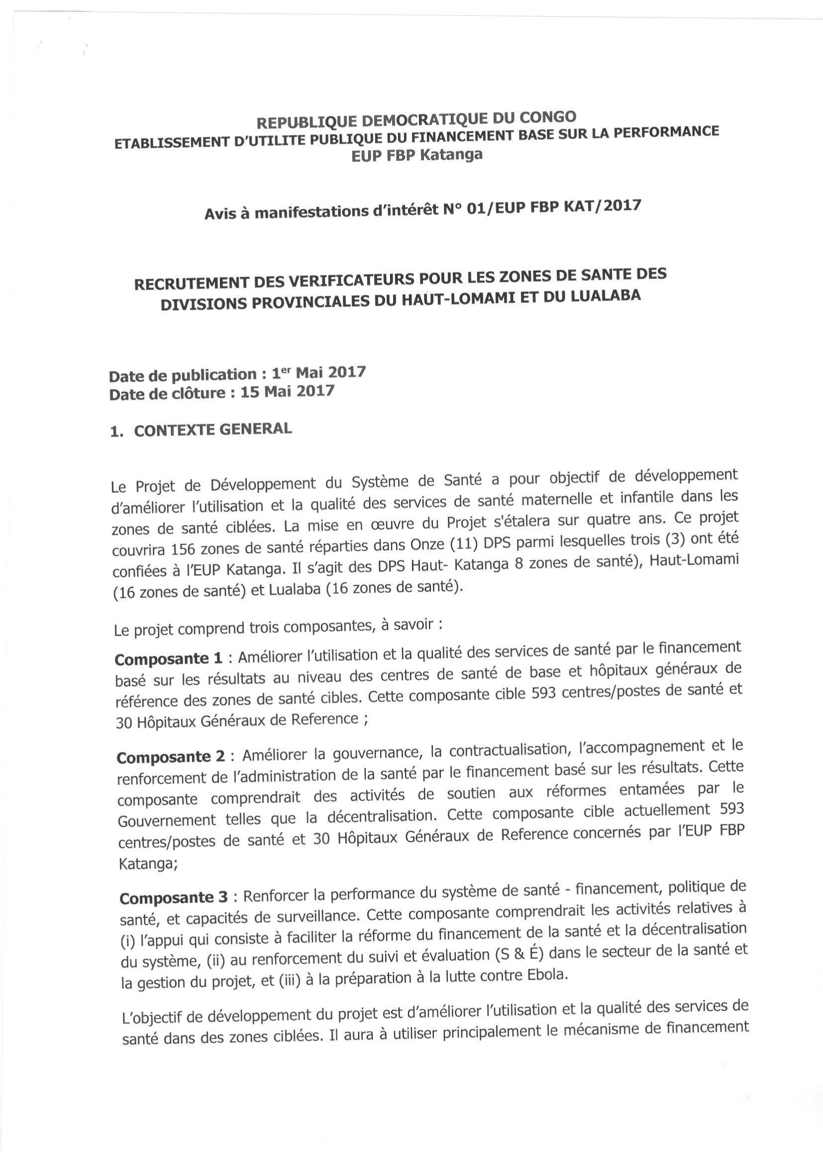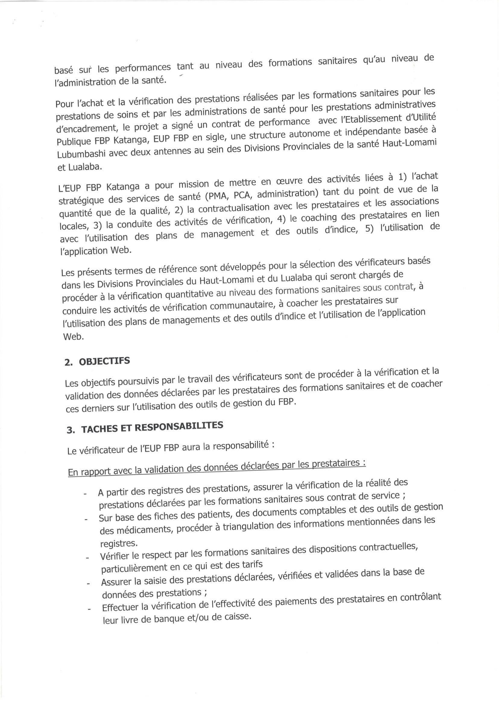 Recrutement des vérificateurs pour les zones de Sante des Division Provinciales du Haut-Lomami et du Lualaba.