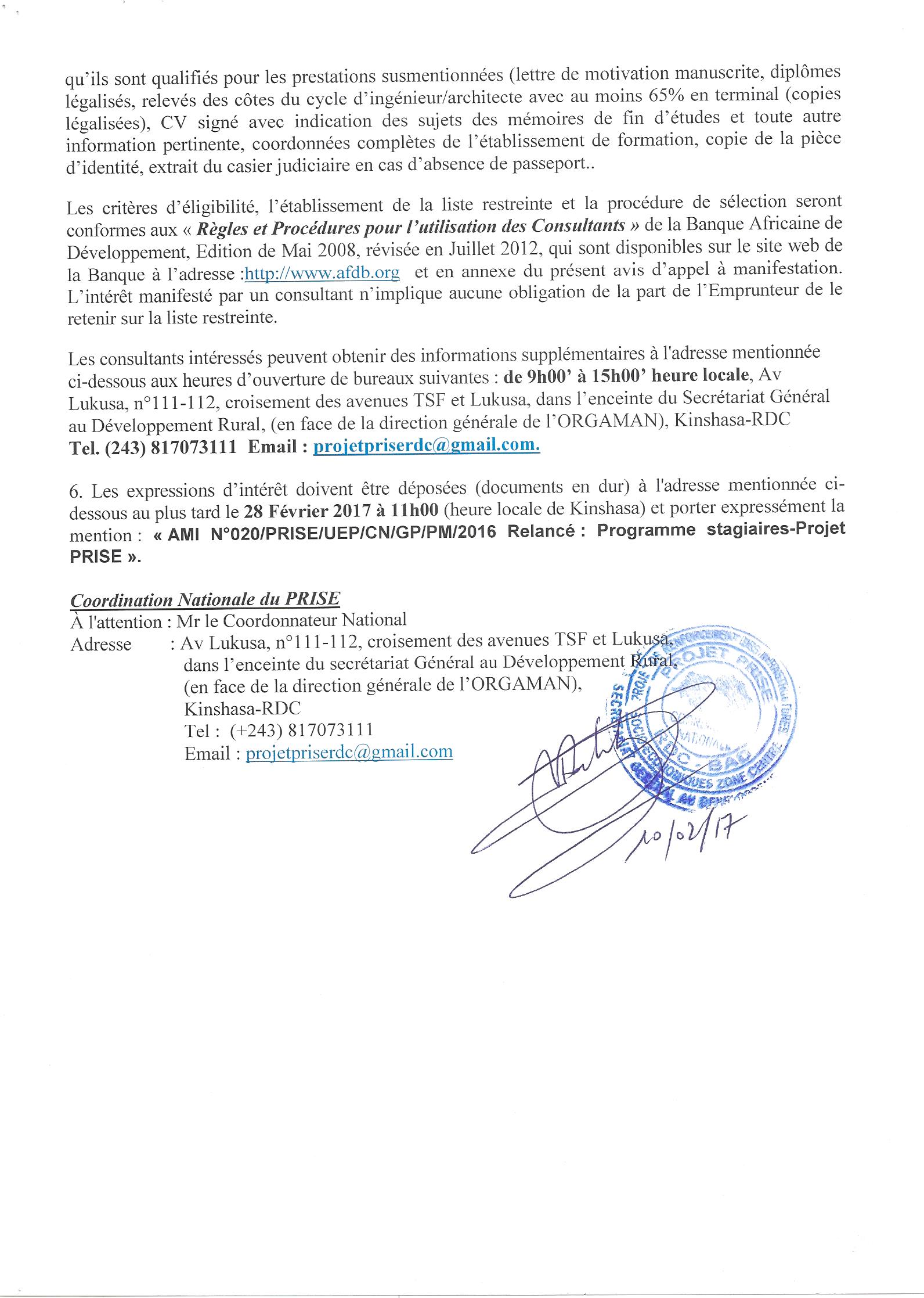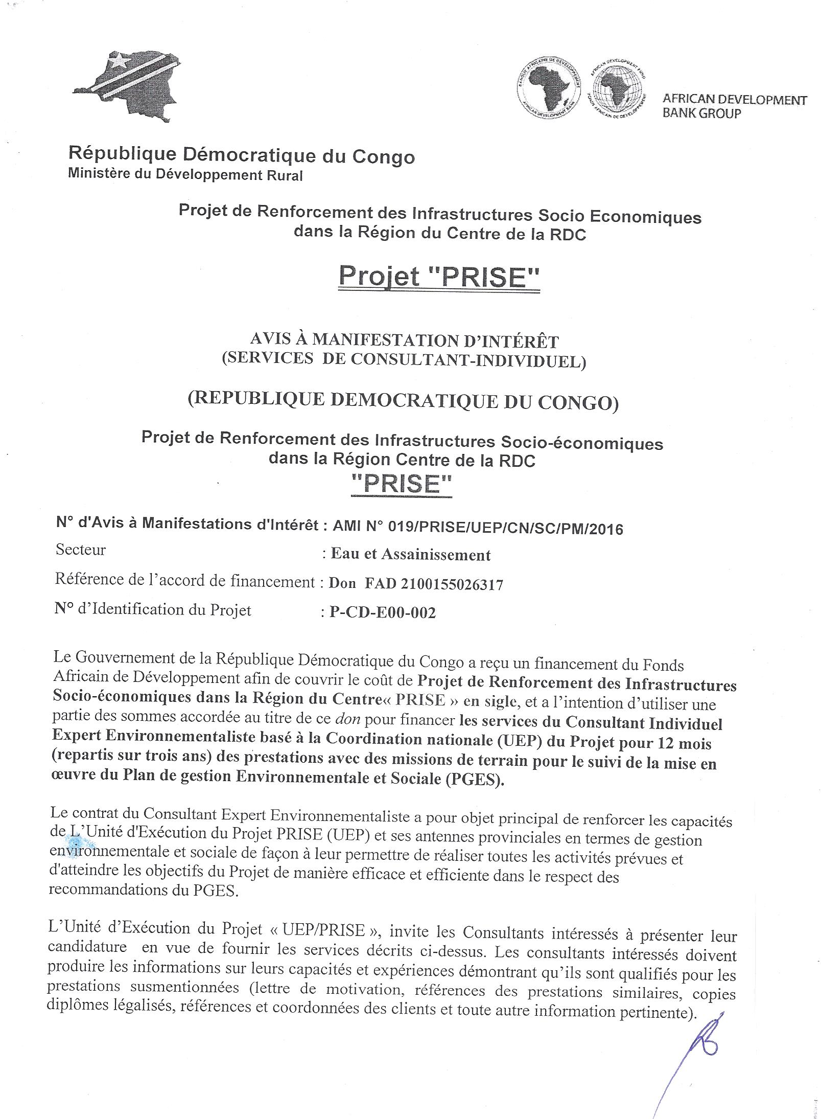 EXPERT NATIONAL COMPTABLE POUR L’UNITÉ D’EXÉCUTION DU PROJET PRISE À KINSHASA-RDC.