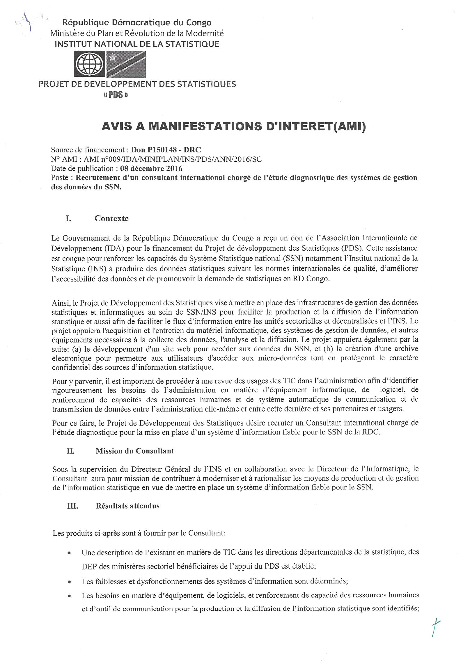 Recrutement d’un consultant international chargé de l’étude diagnostique des systèmes de gestion des données du SSN.