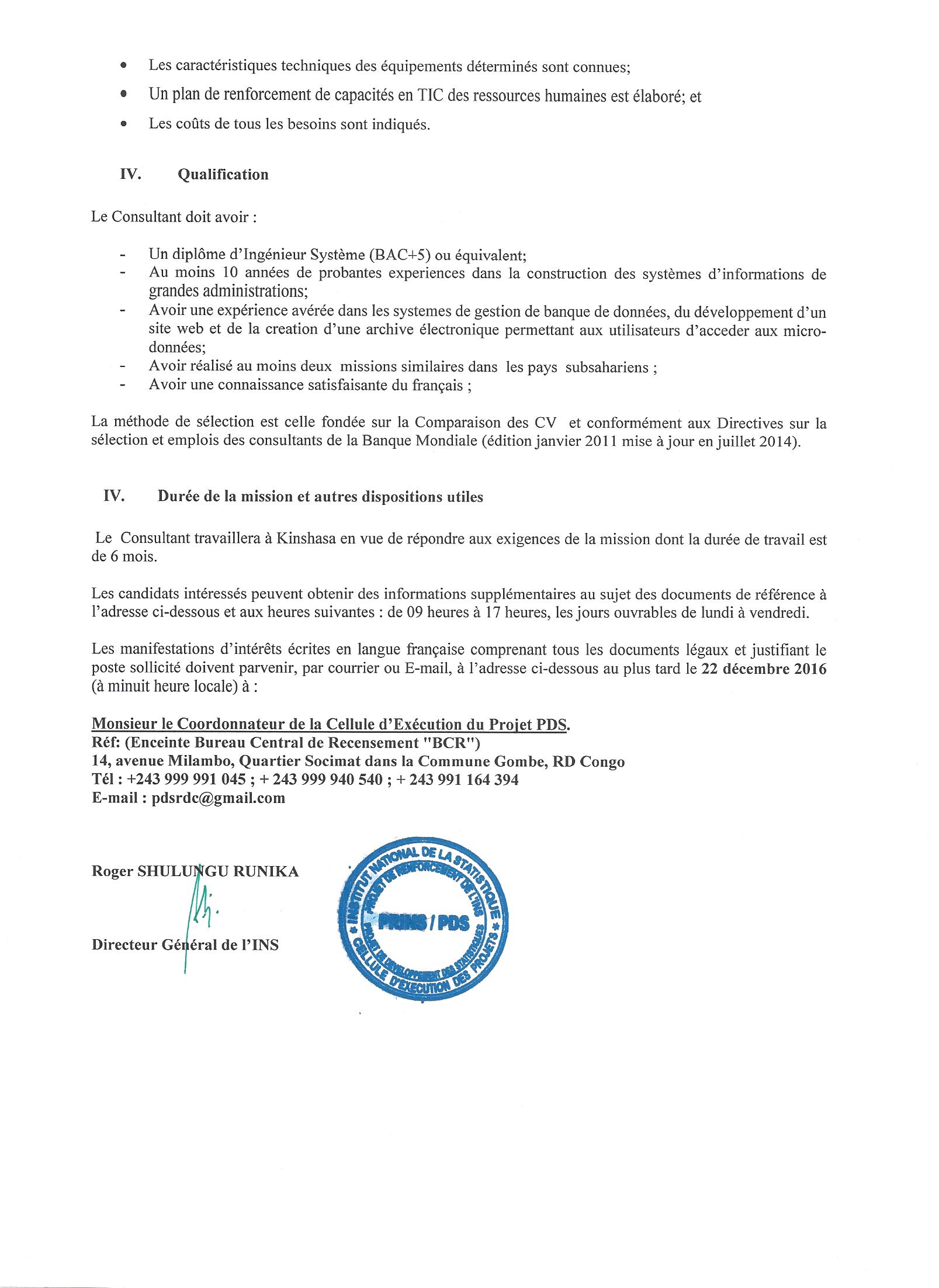 Avis d’Annulation de Recrutement d’un Coordonnateur National pour la Gestion des Projet PRINS et PDS.