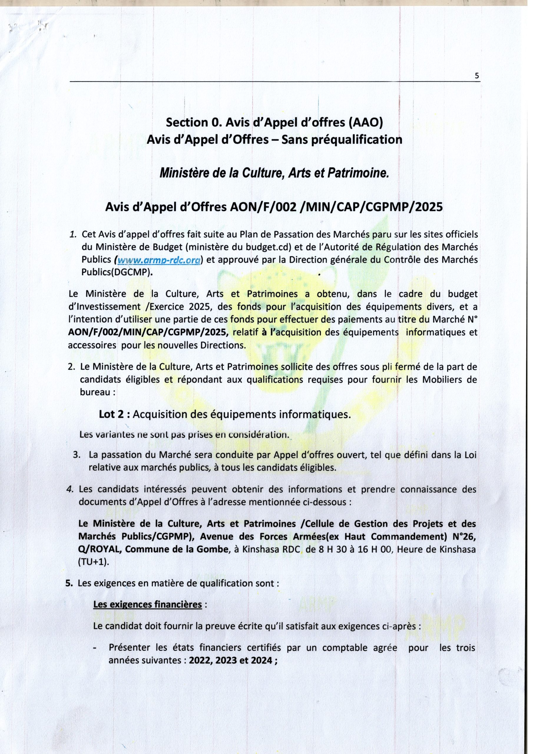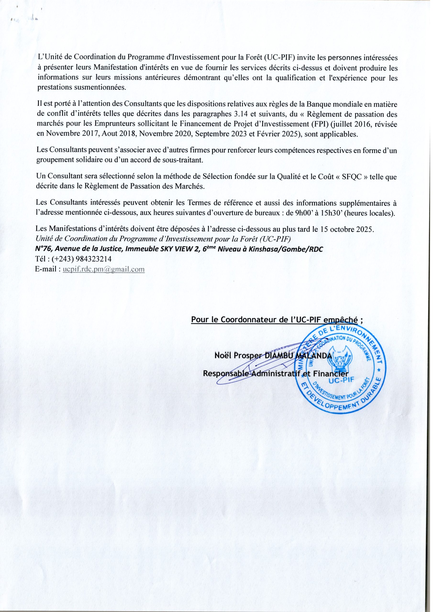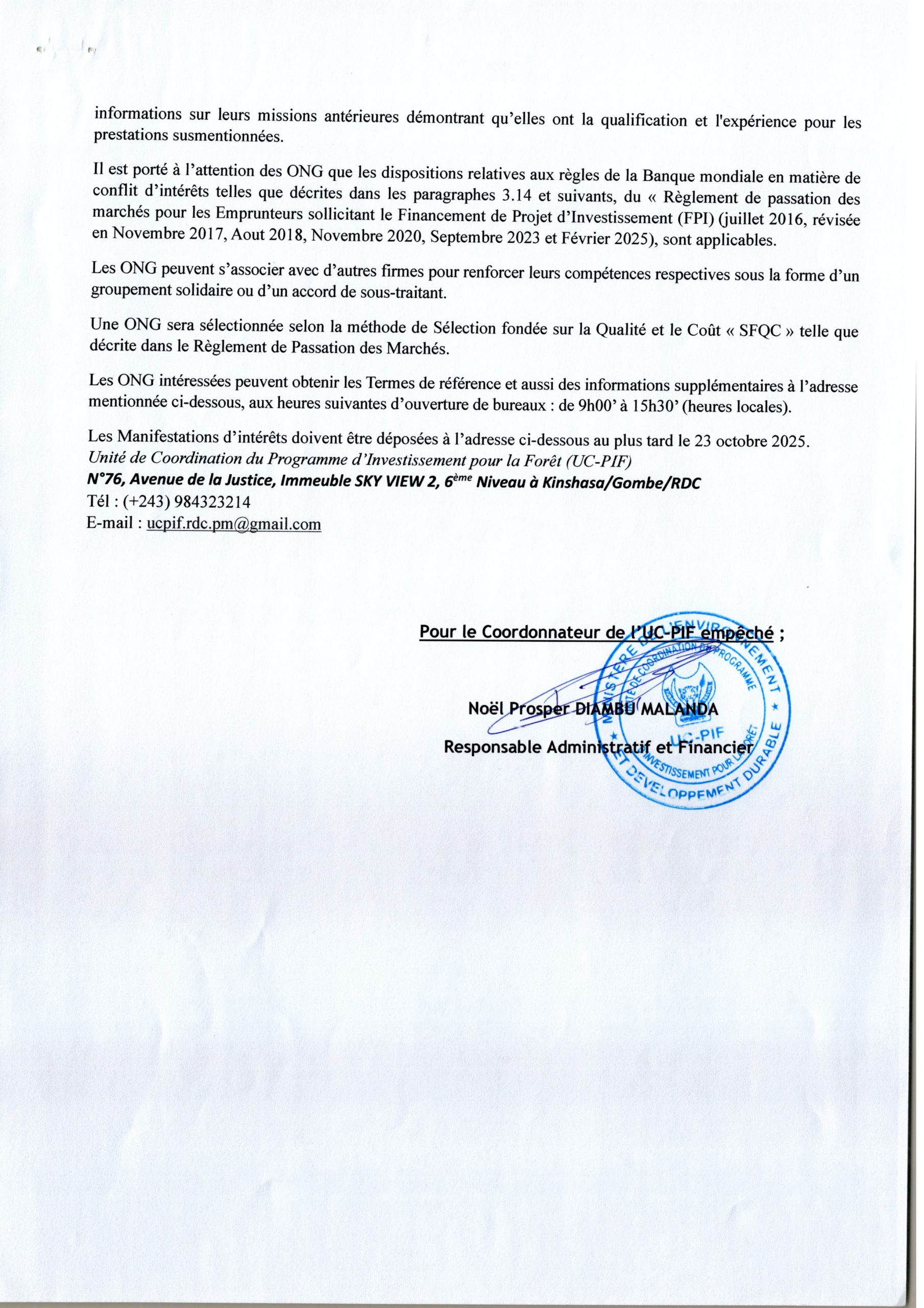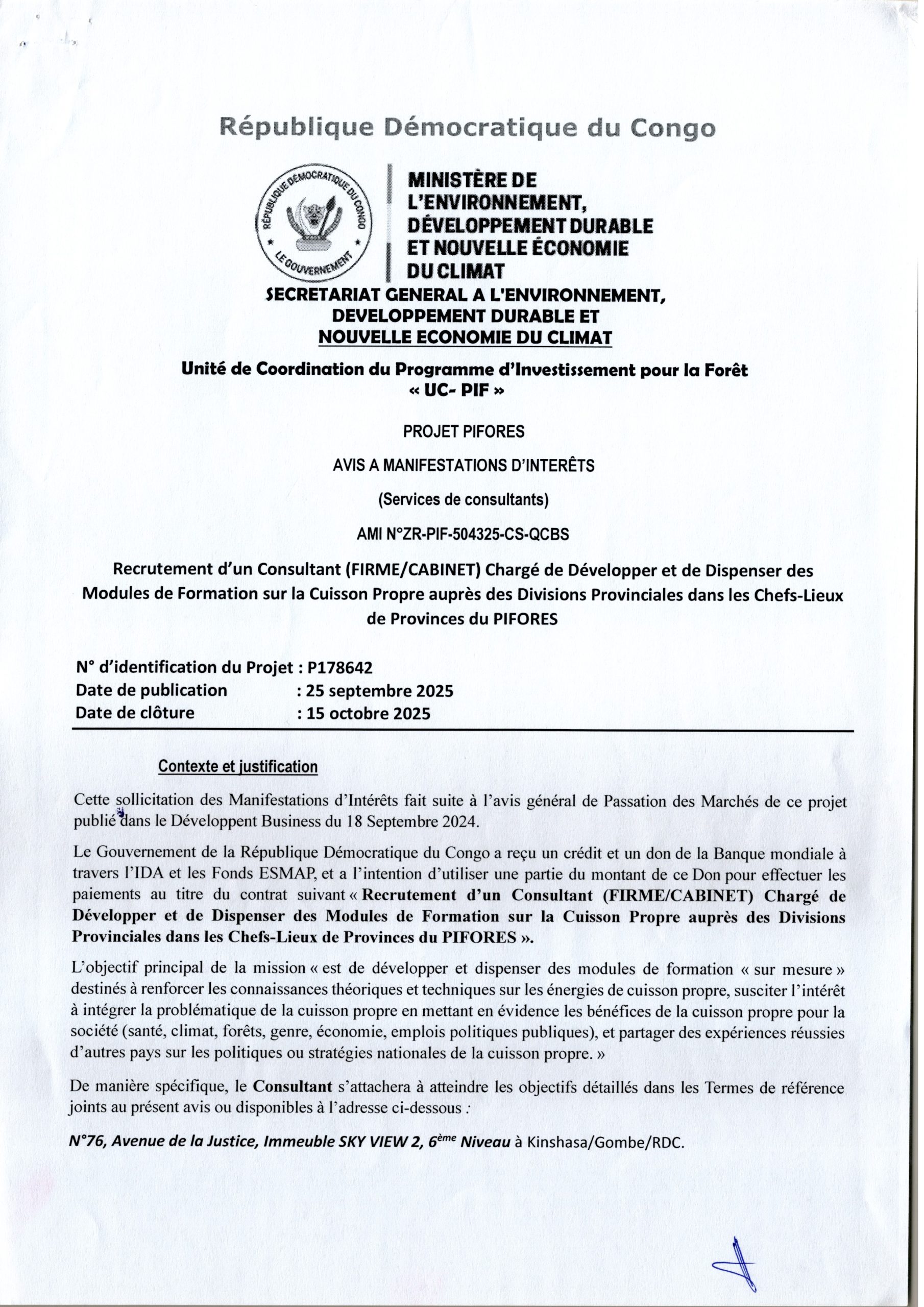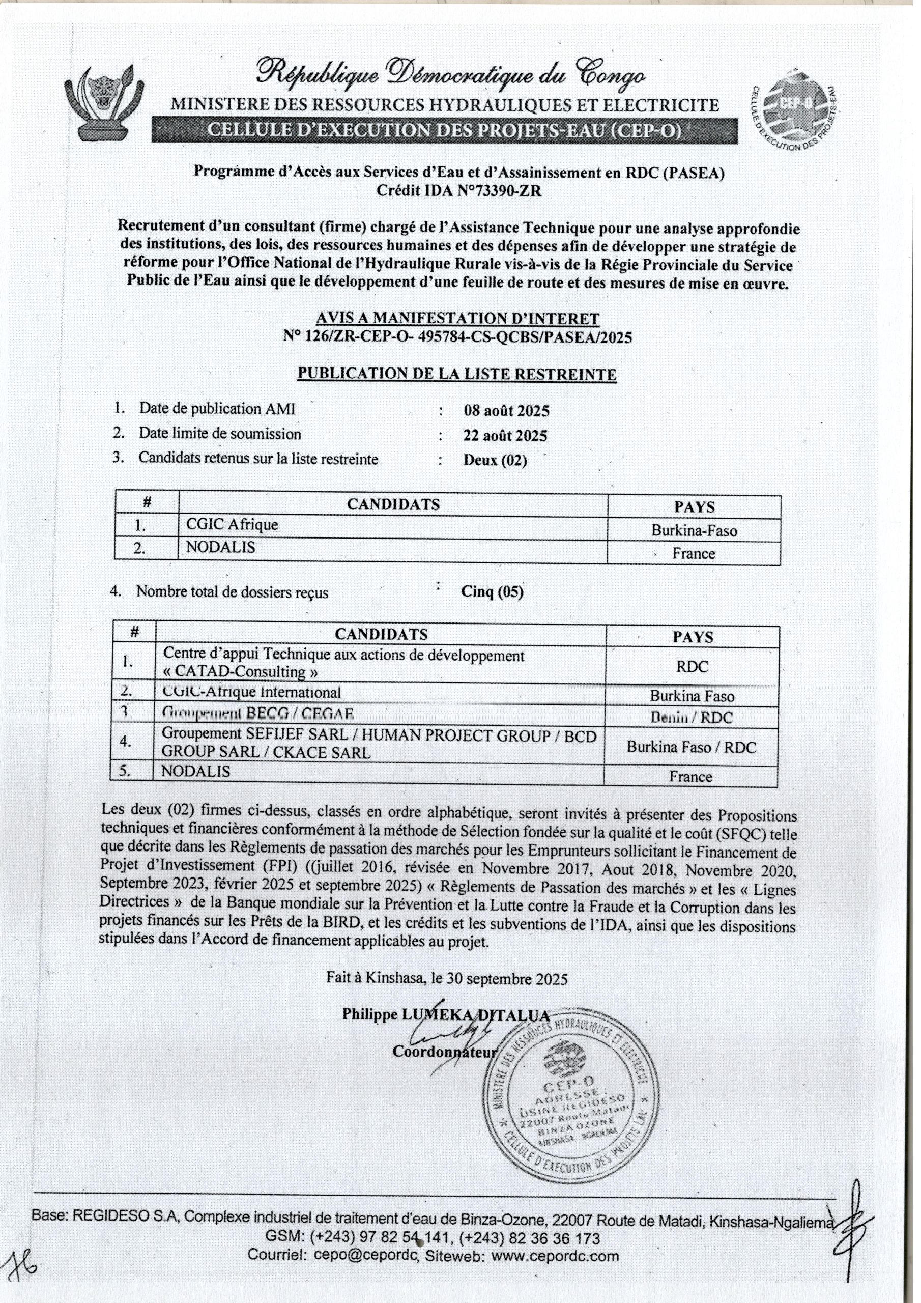 Recrutement d’une firme pour l’étude de faisabilité : Développement d’une feuille de route pour la mise en œuvre de la signature électronique en RDC.