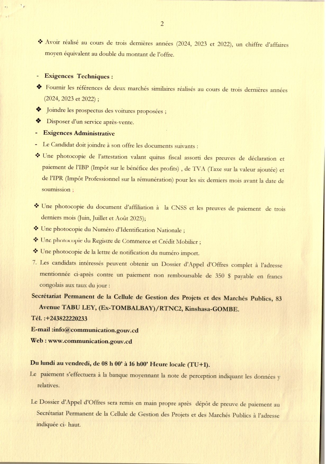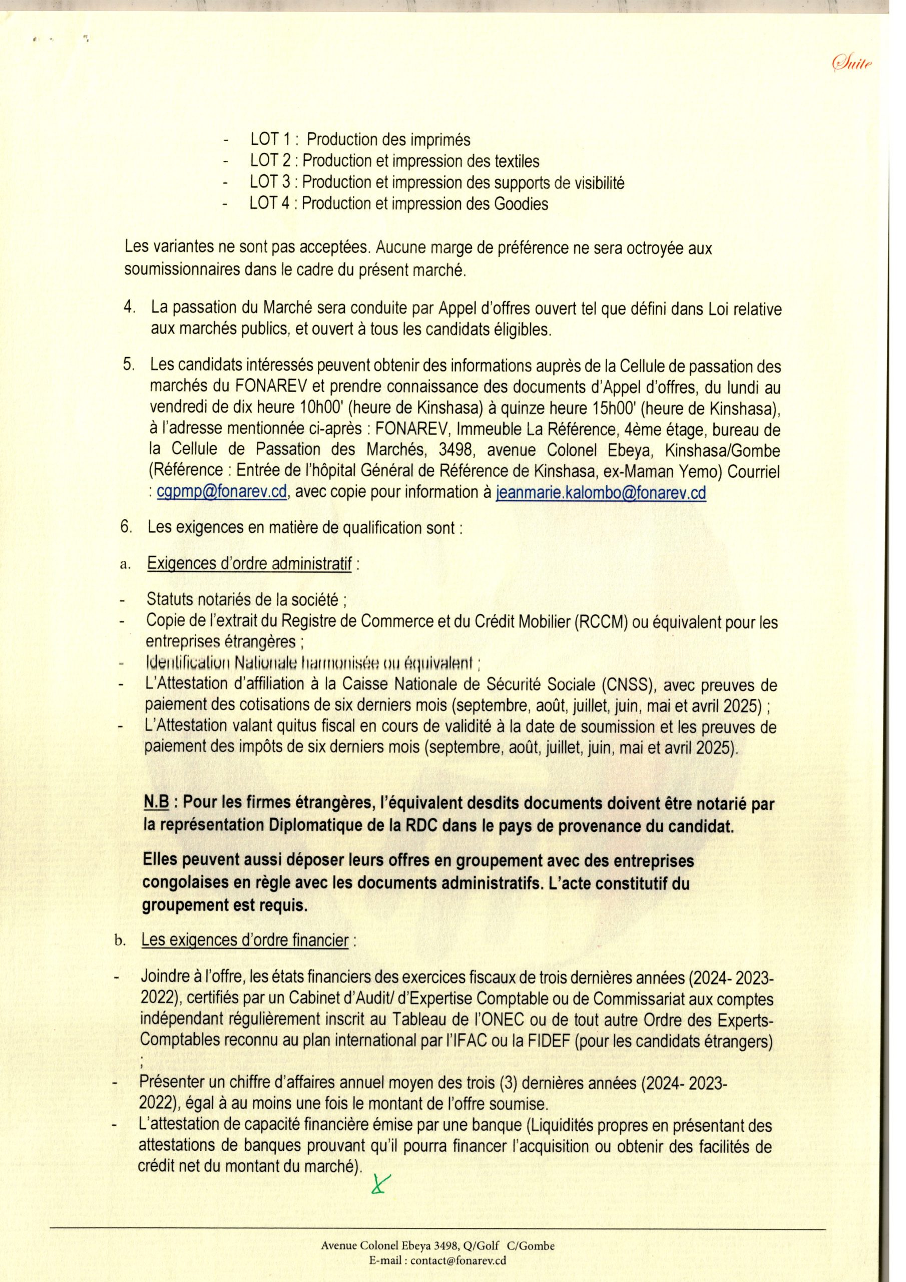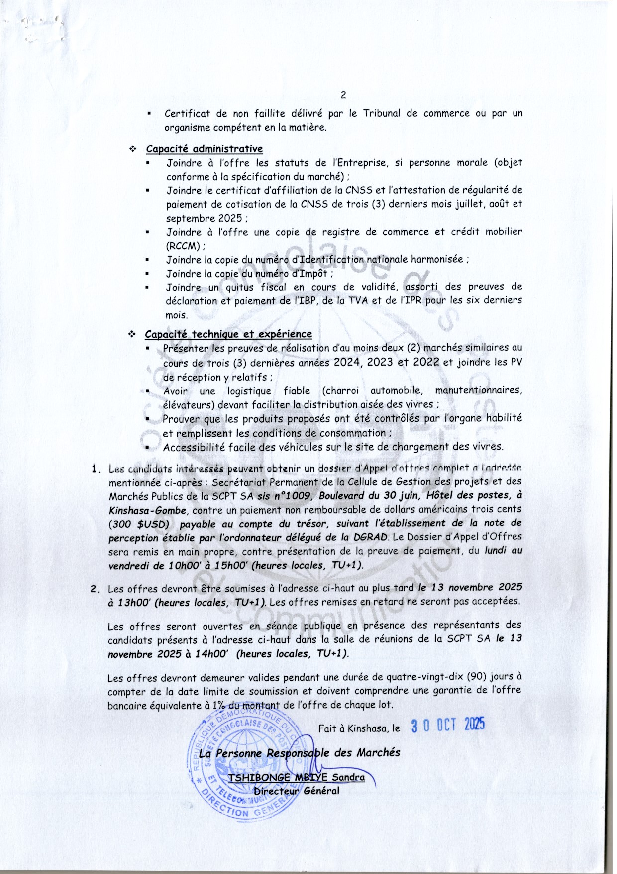 Acquisition des vivres surgelés et divers à distribuer au personnel de la SCPT S.A. à l’occasion des festivités de fin d’année 2025