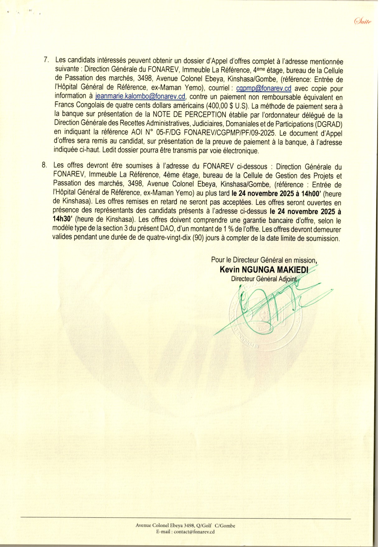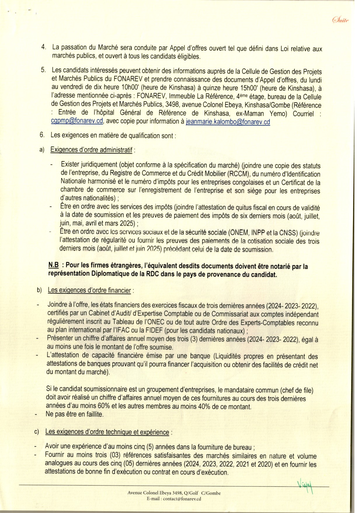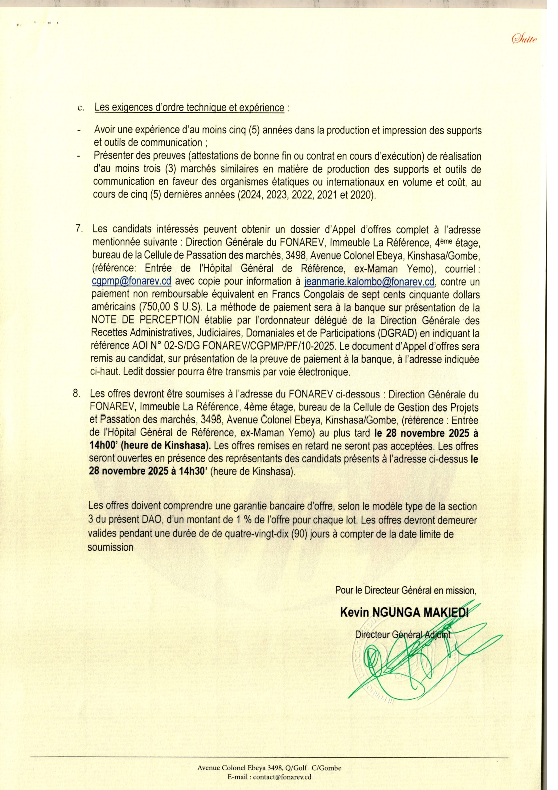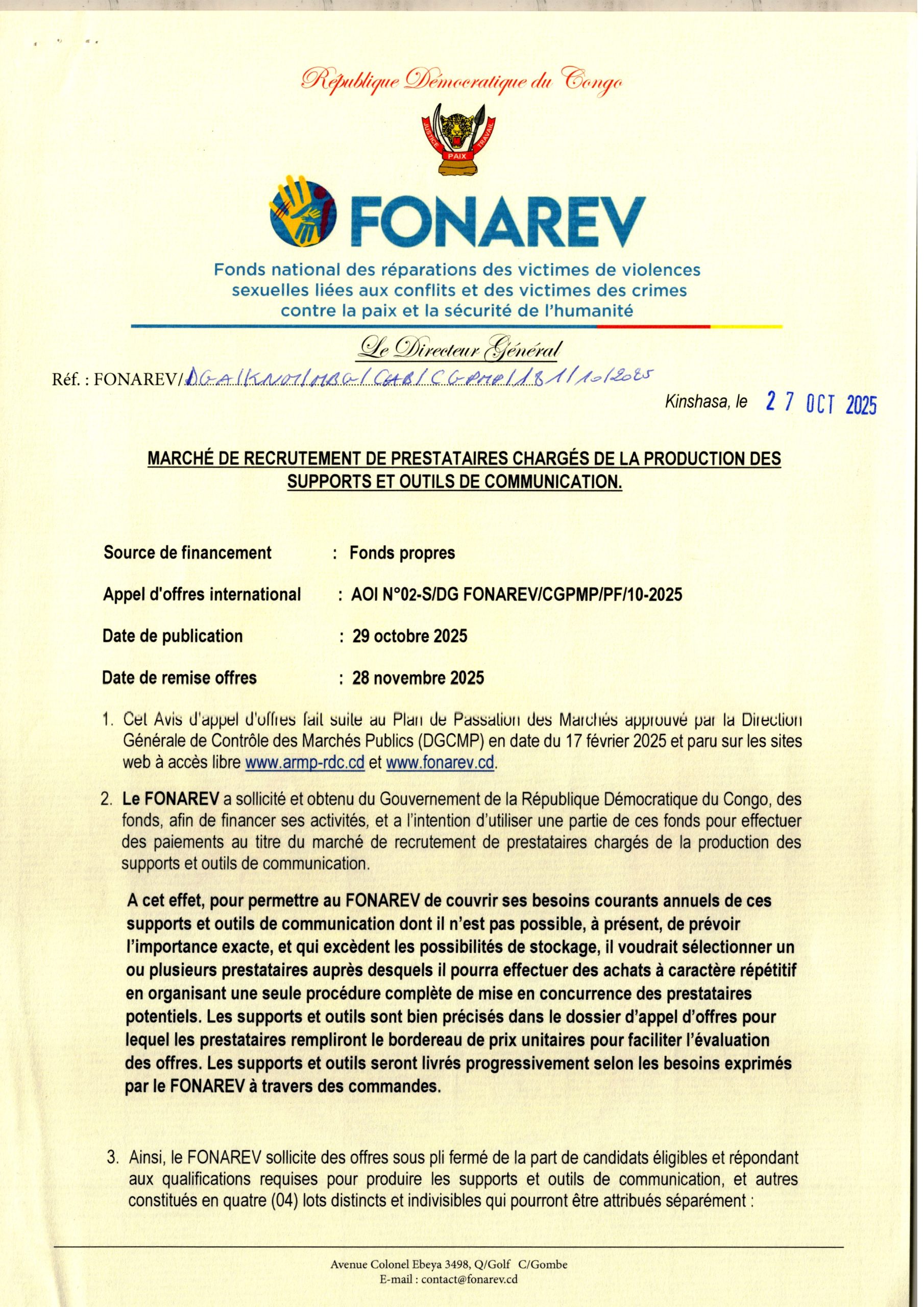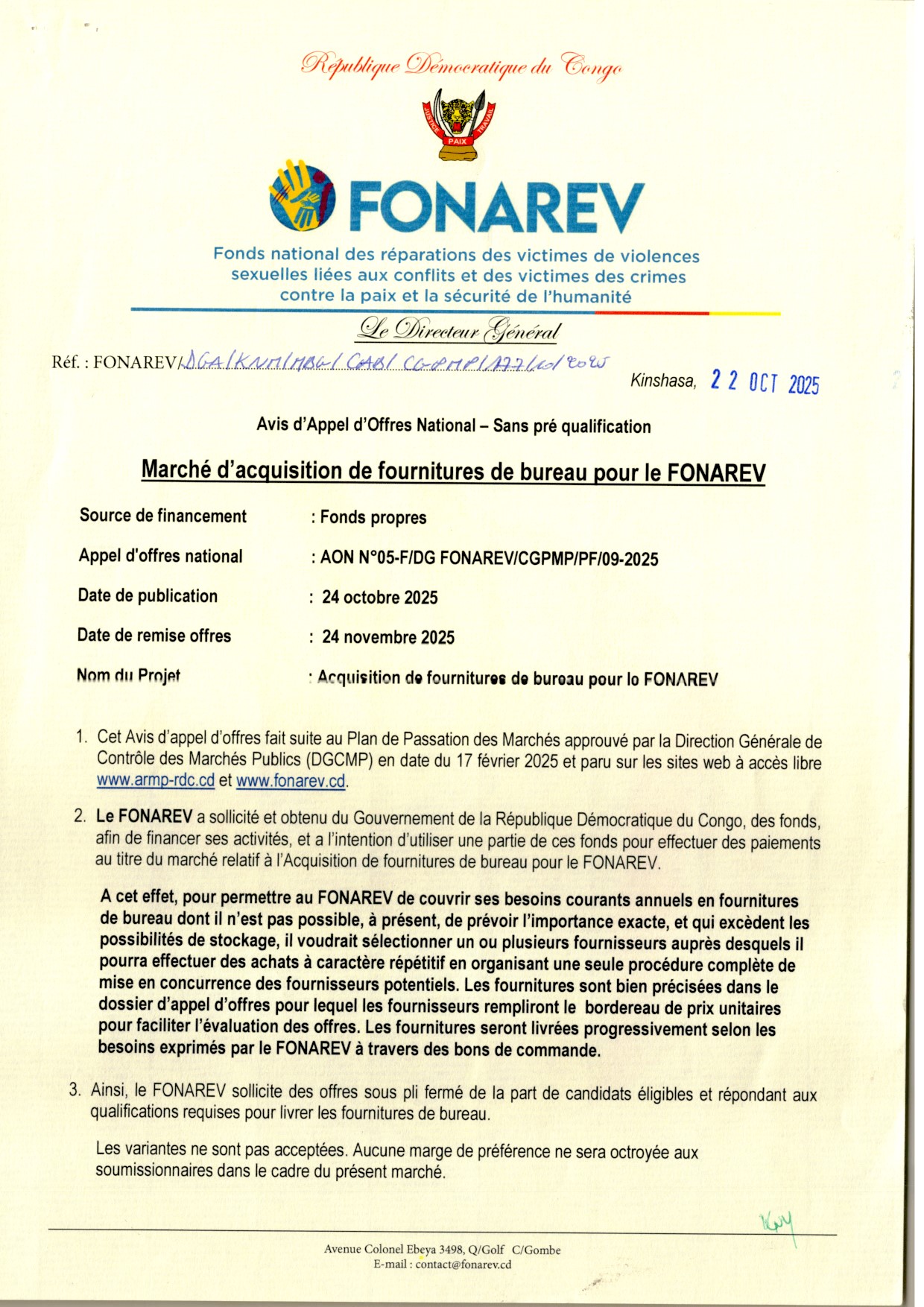 Acquisition de fournitures de bureau pour le FONAREV.
