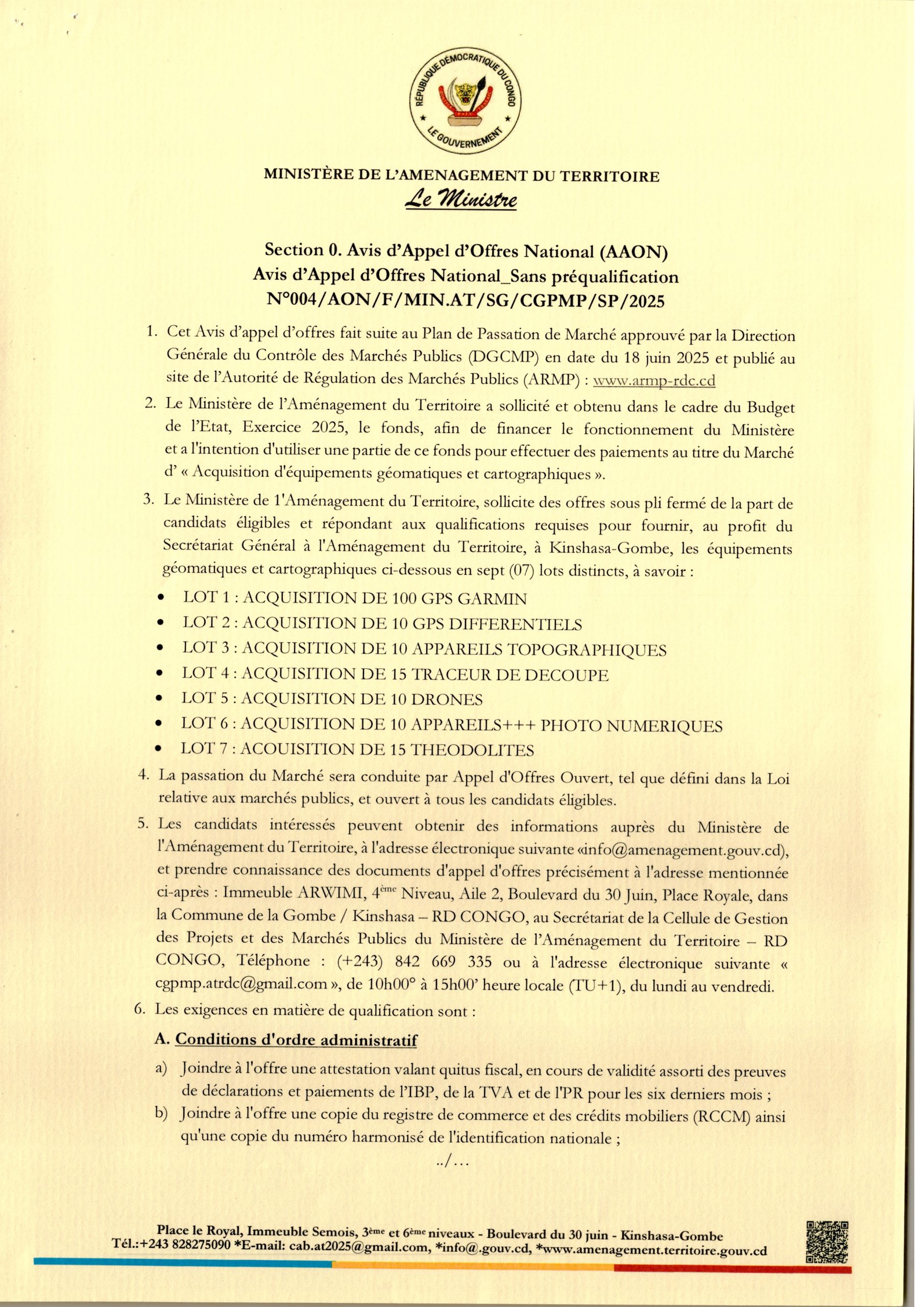 Acquisition d’équipements géomatiques et cartographiques (lot 1,2…7).
