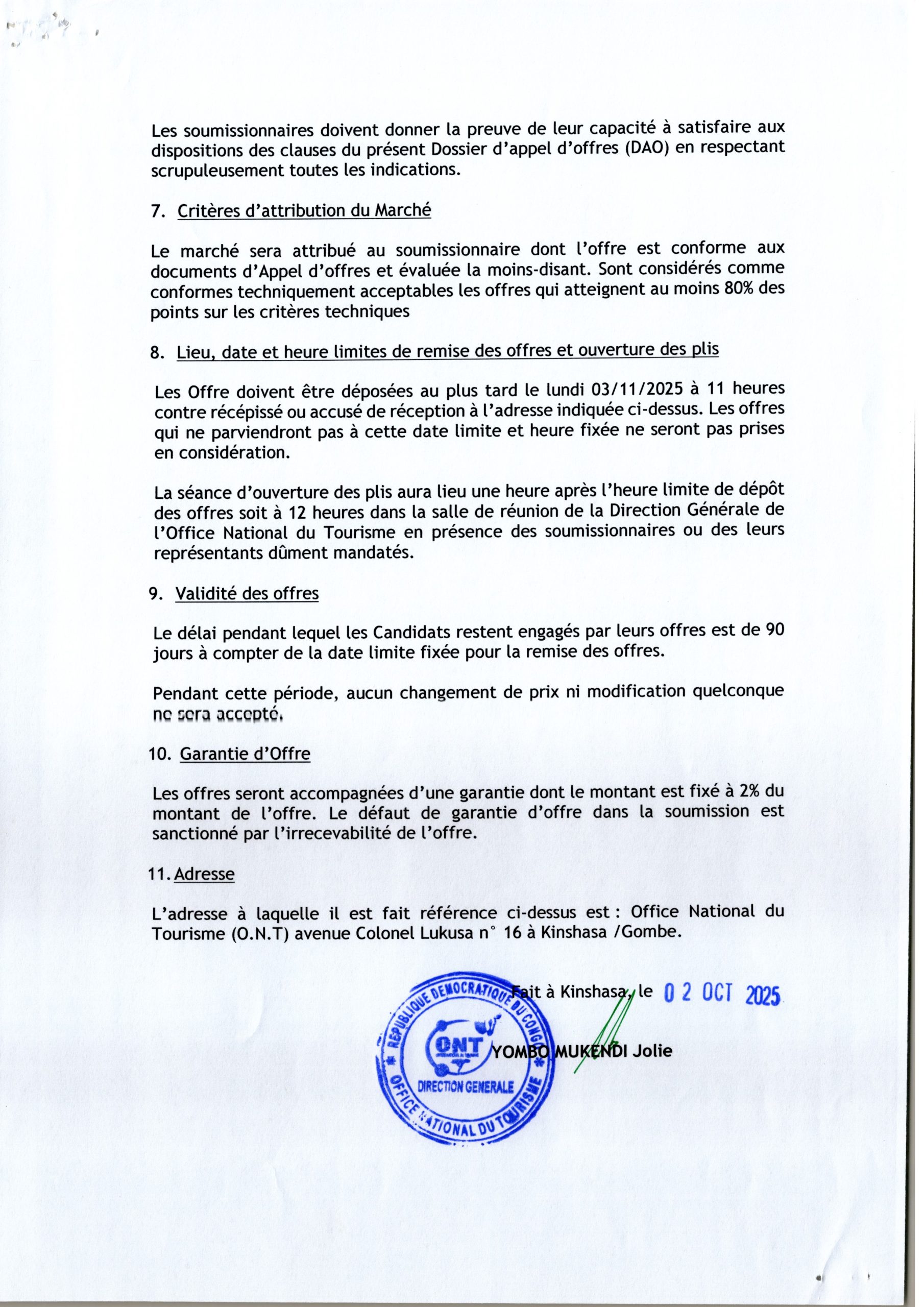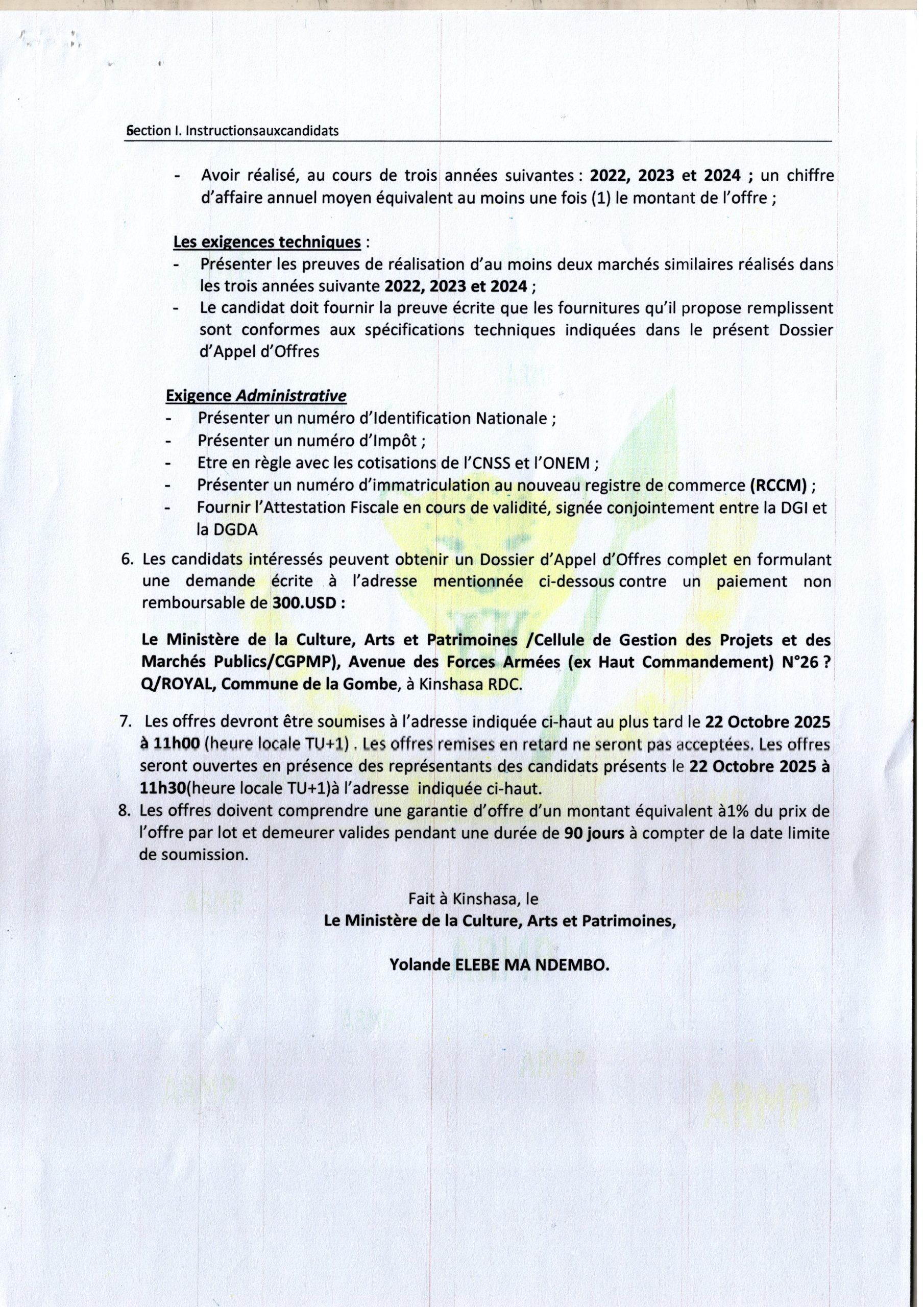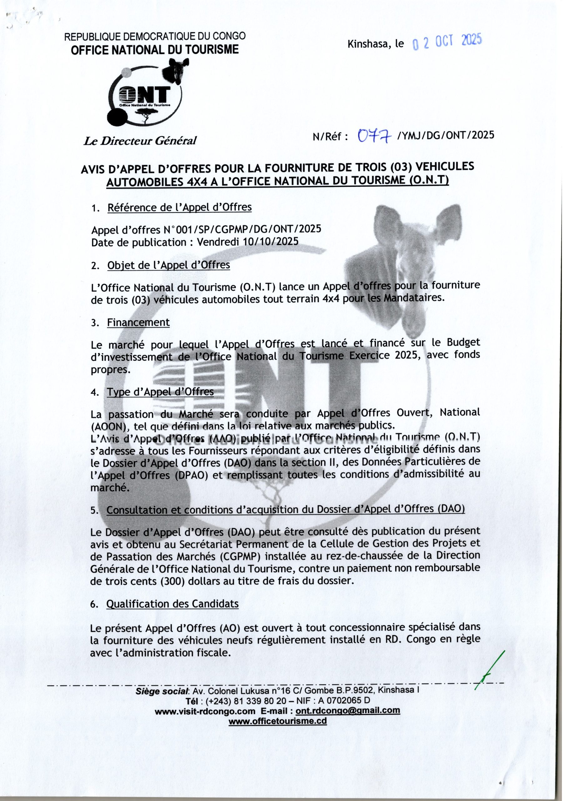 Avis général de passation des marchés.