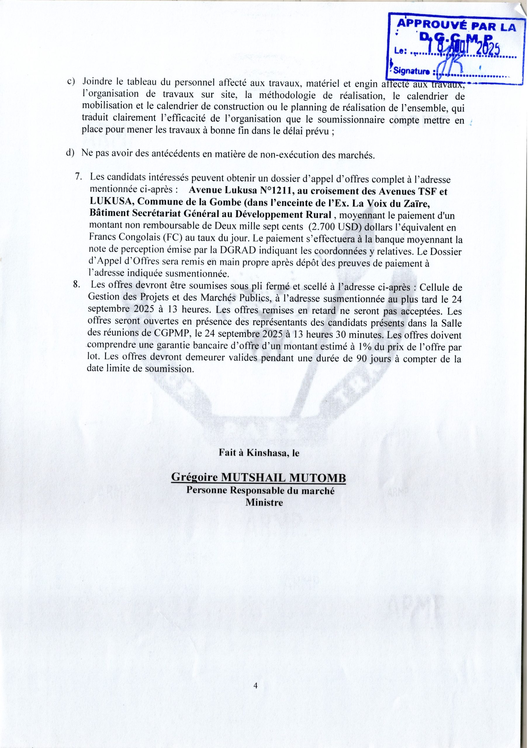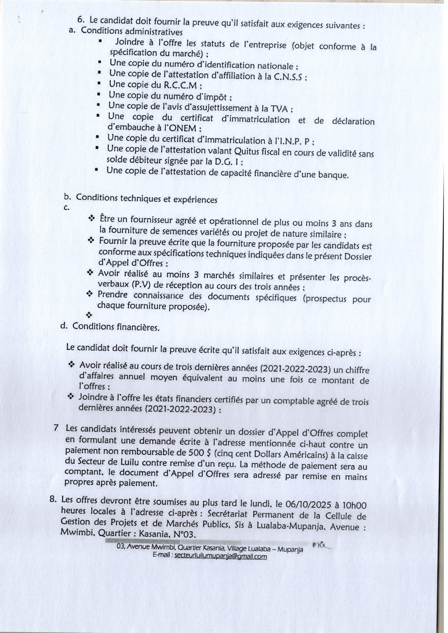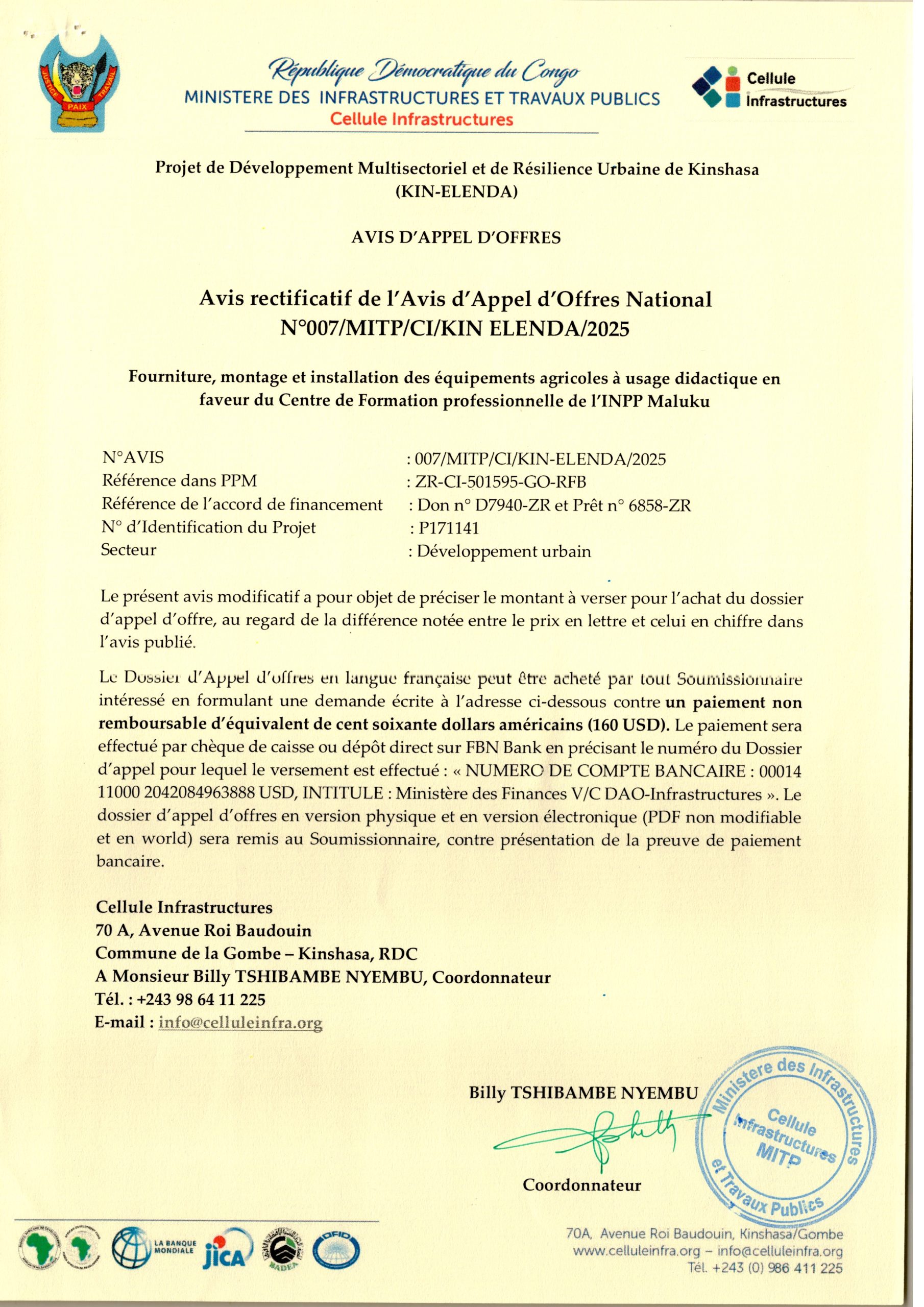Avis rectificatif de l’avis d’appel d’offres national relatif à la fourniture, montage et installation des équipements agricoles à usage didactique en faveur du centre de formation…