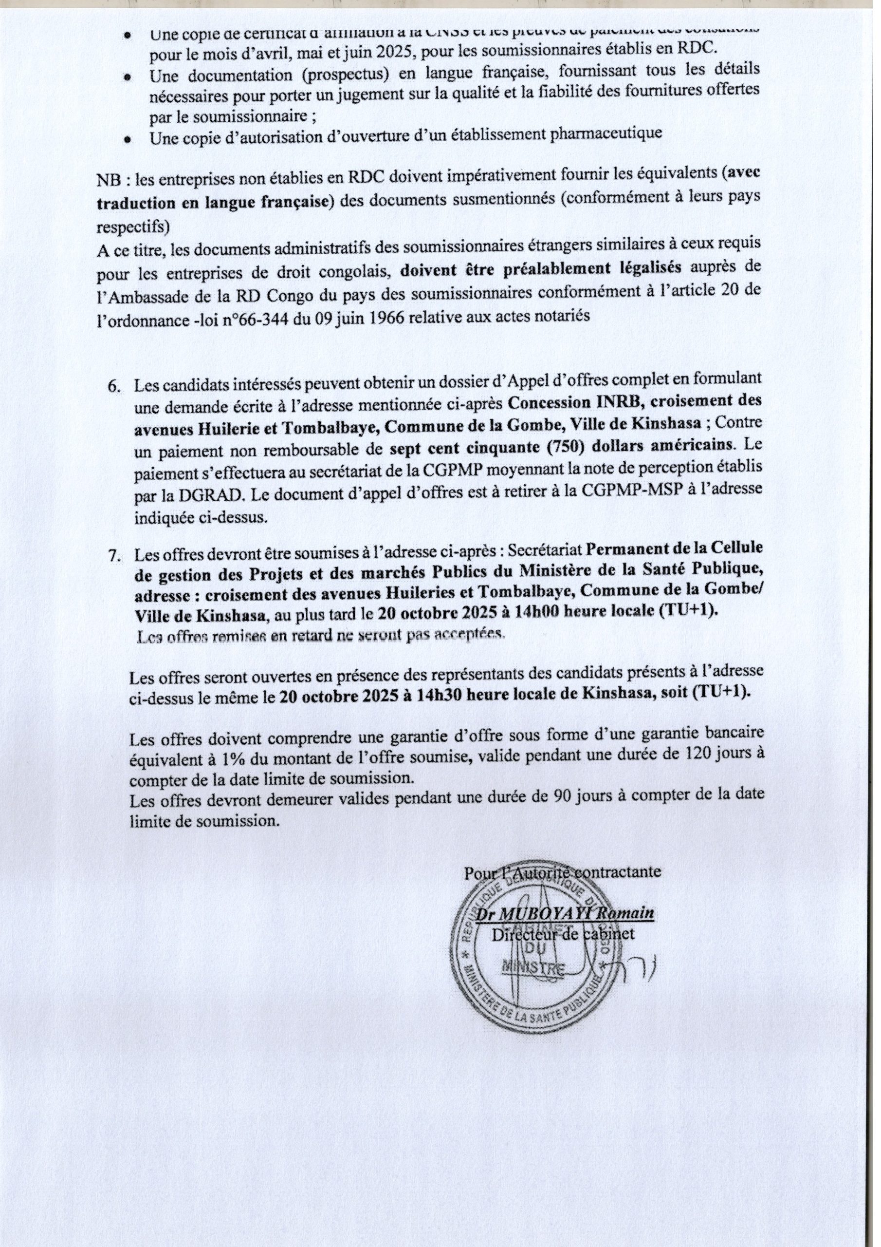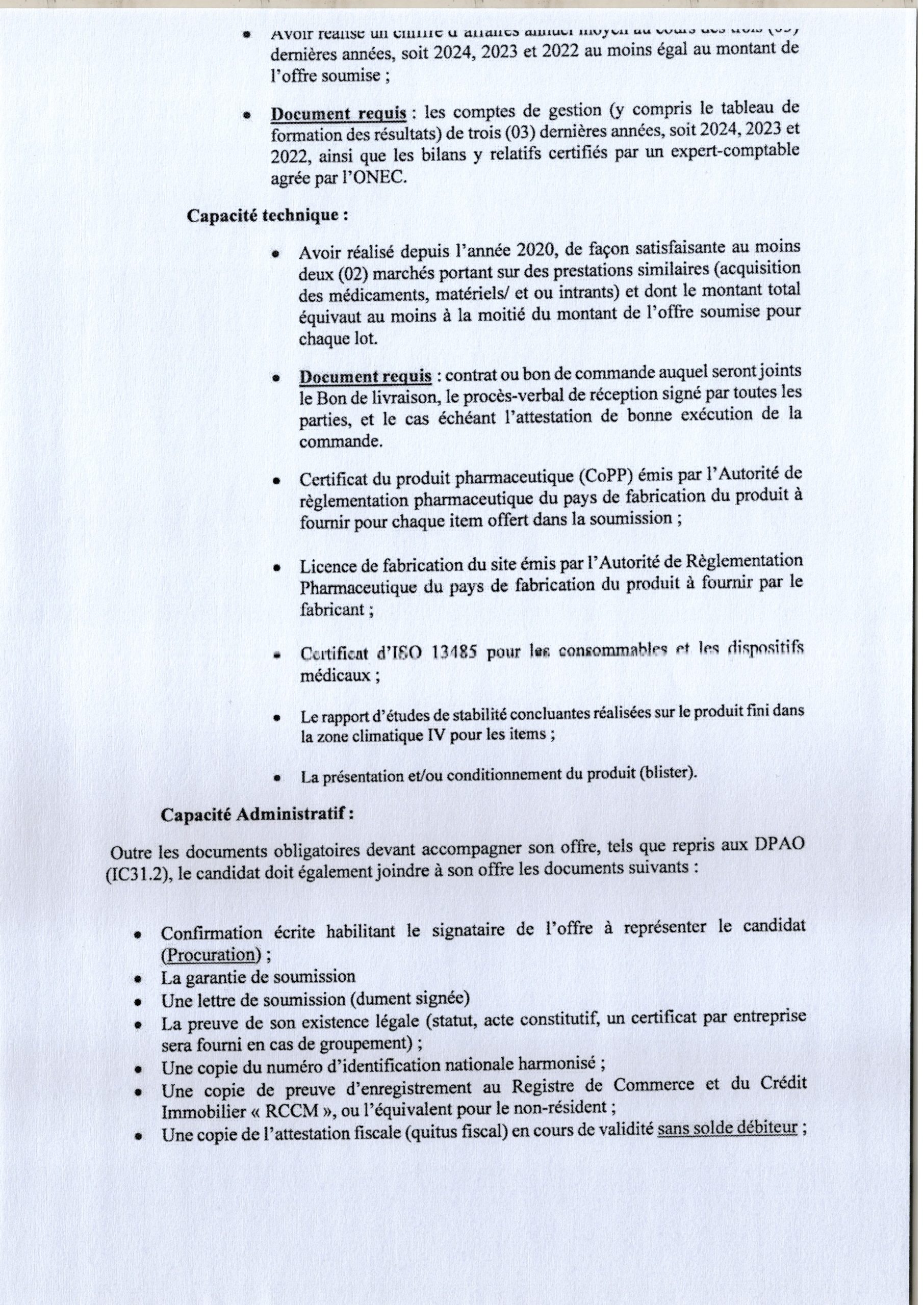 Acquisition des Médicaments, Matériels d’urgence et Intrants en faveur du Programme National des Urgences et Action Humanitaires