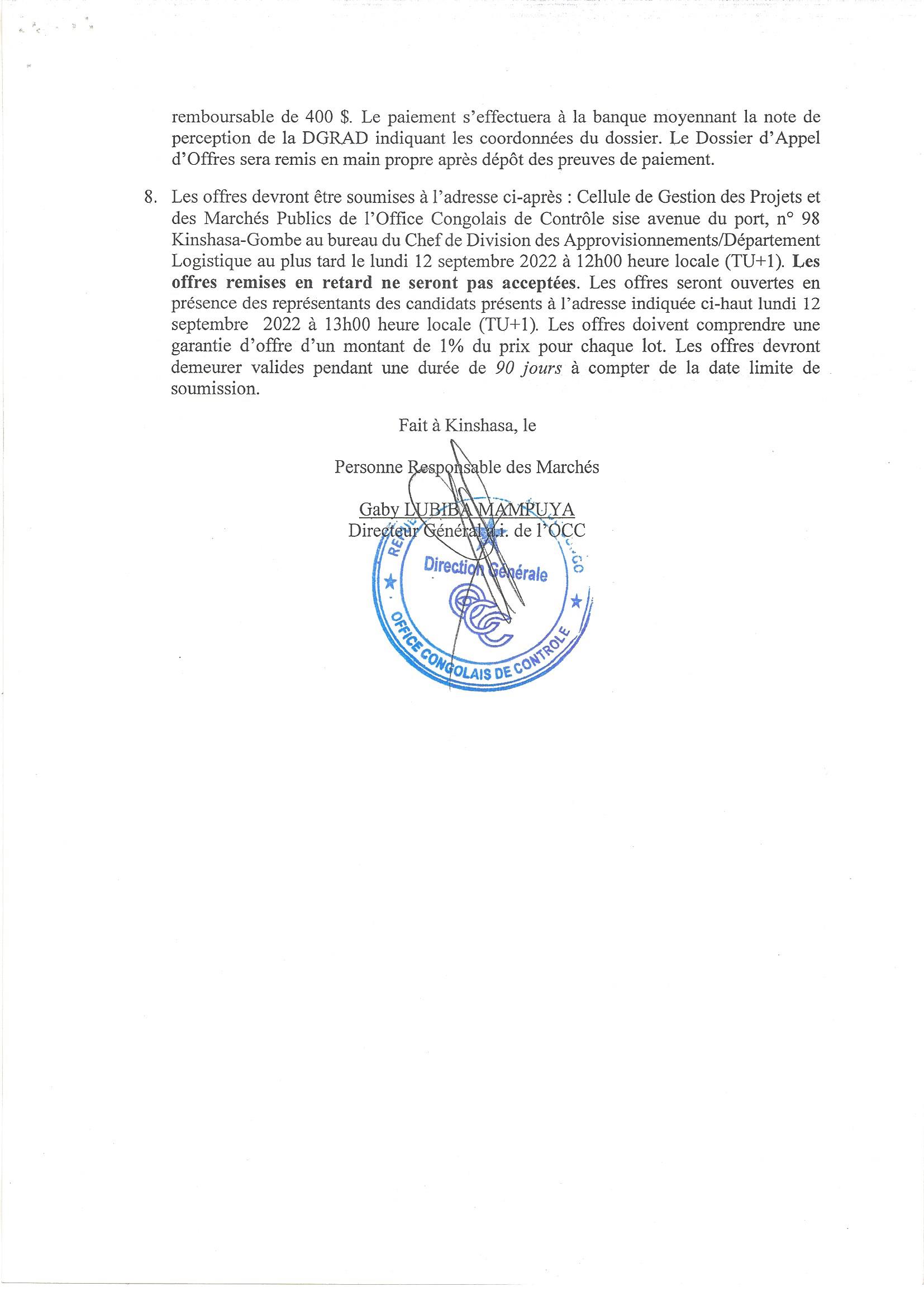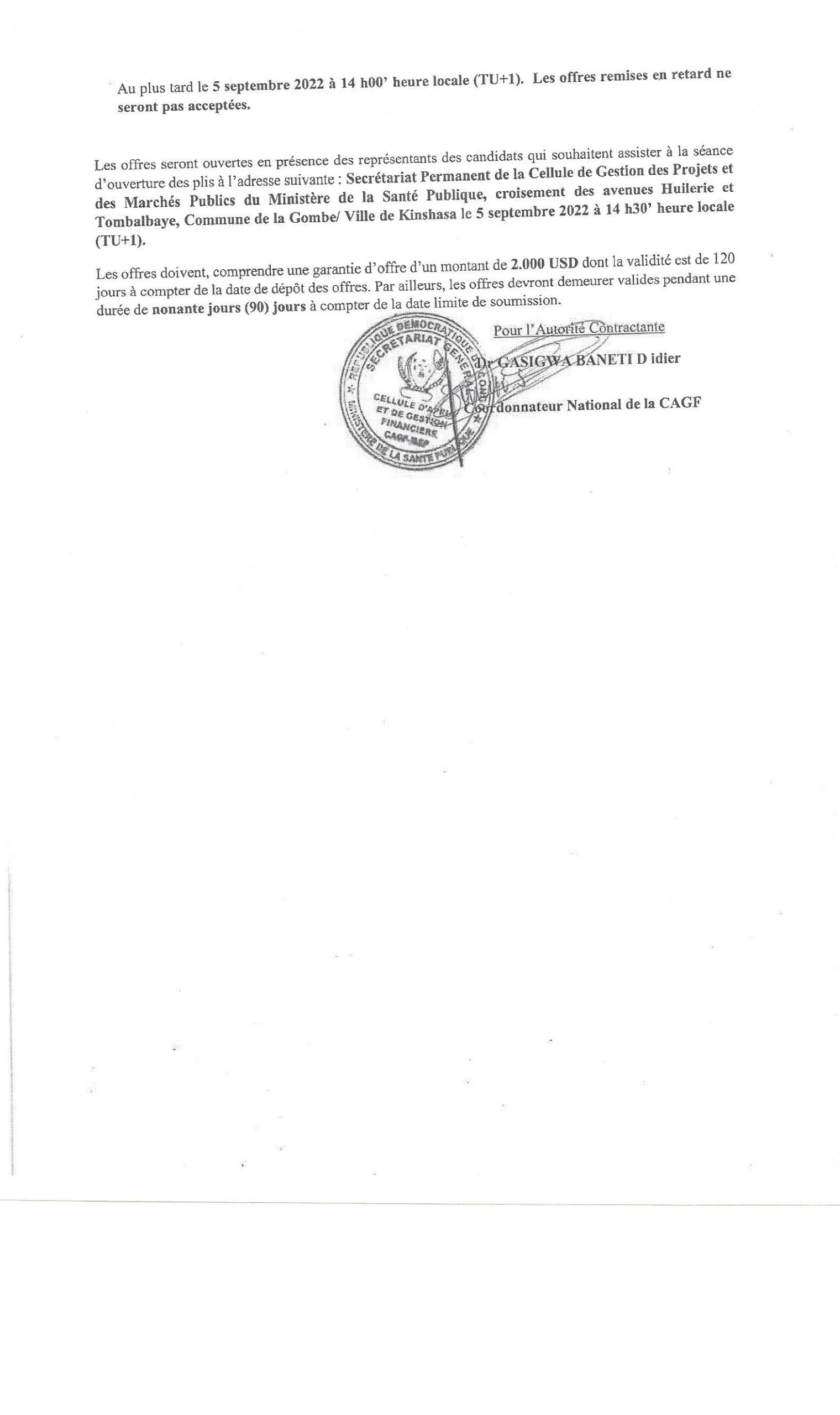AVIS D’APPEL À PROJETS : TRAVAUX DE CONSTRUCTION DES QUATRE CENTRES DE TRANSFORMATION DES PRODUITS AGRICOLES ET AIRES DE SÉCHAGES DANS LES SITES DE LUPUTA, KATABAYI, MIKETA ET MBAYA-KANKELENGE.