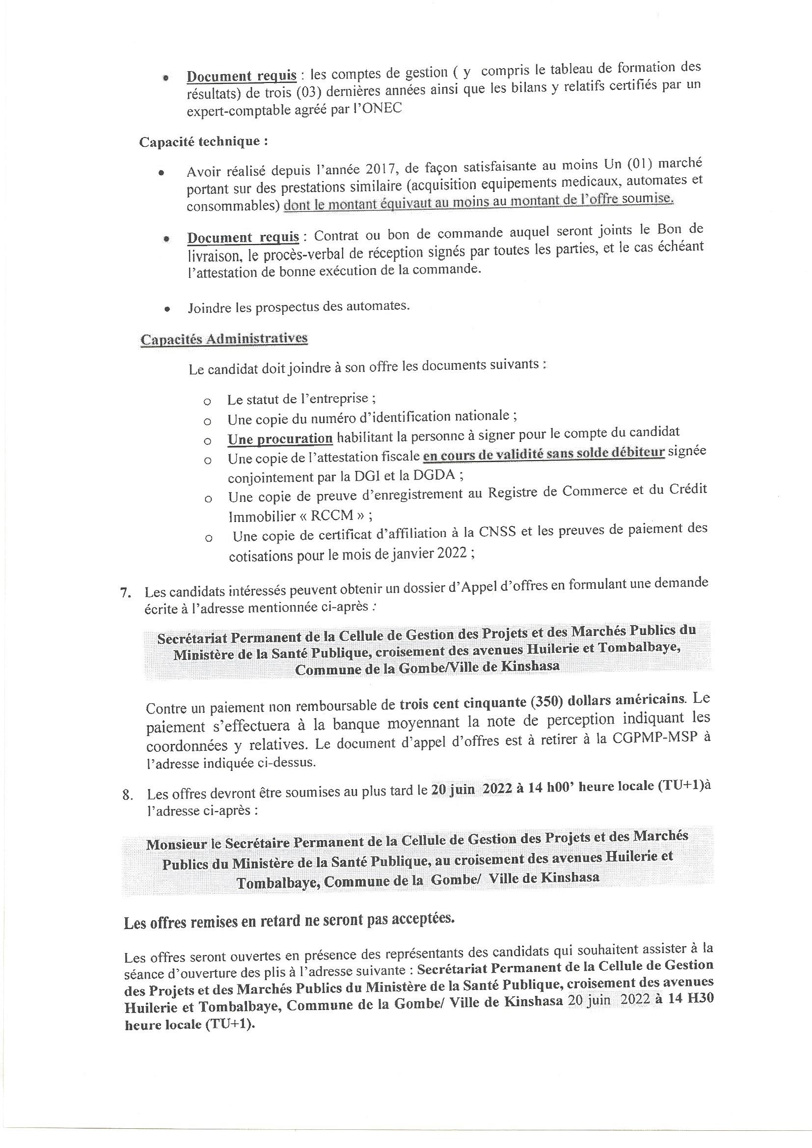 Marche d’acquisition des automates immuno – hématologie et consommables