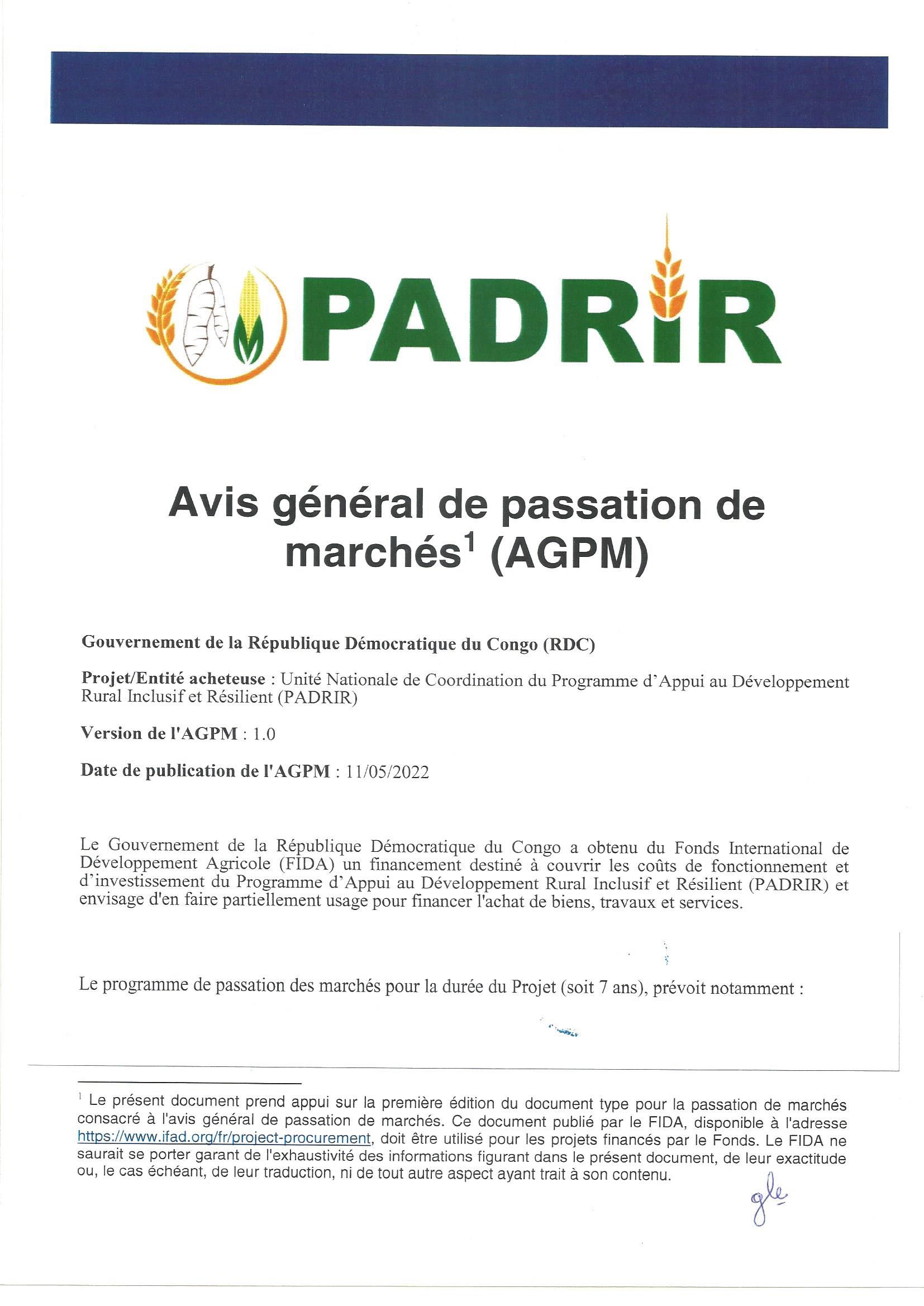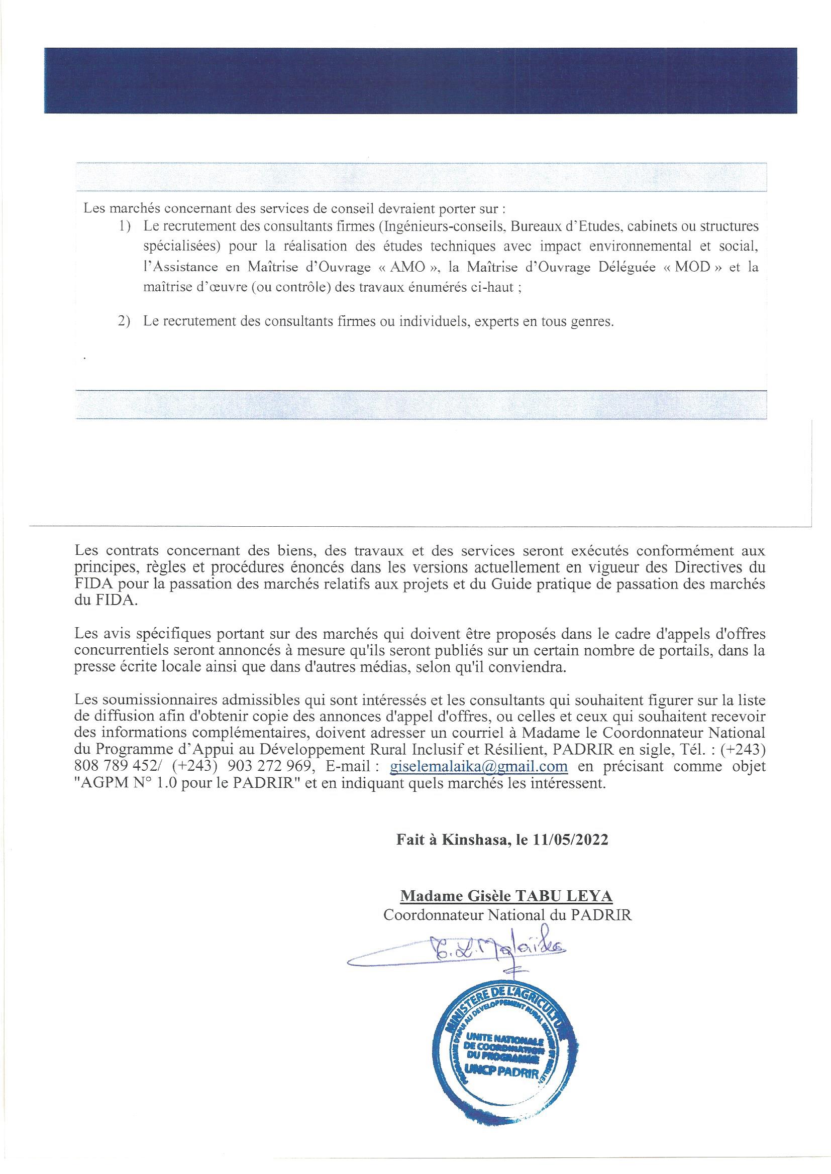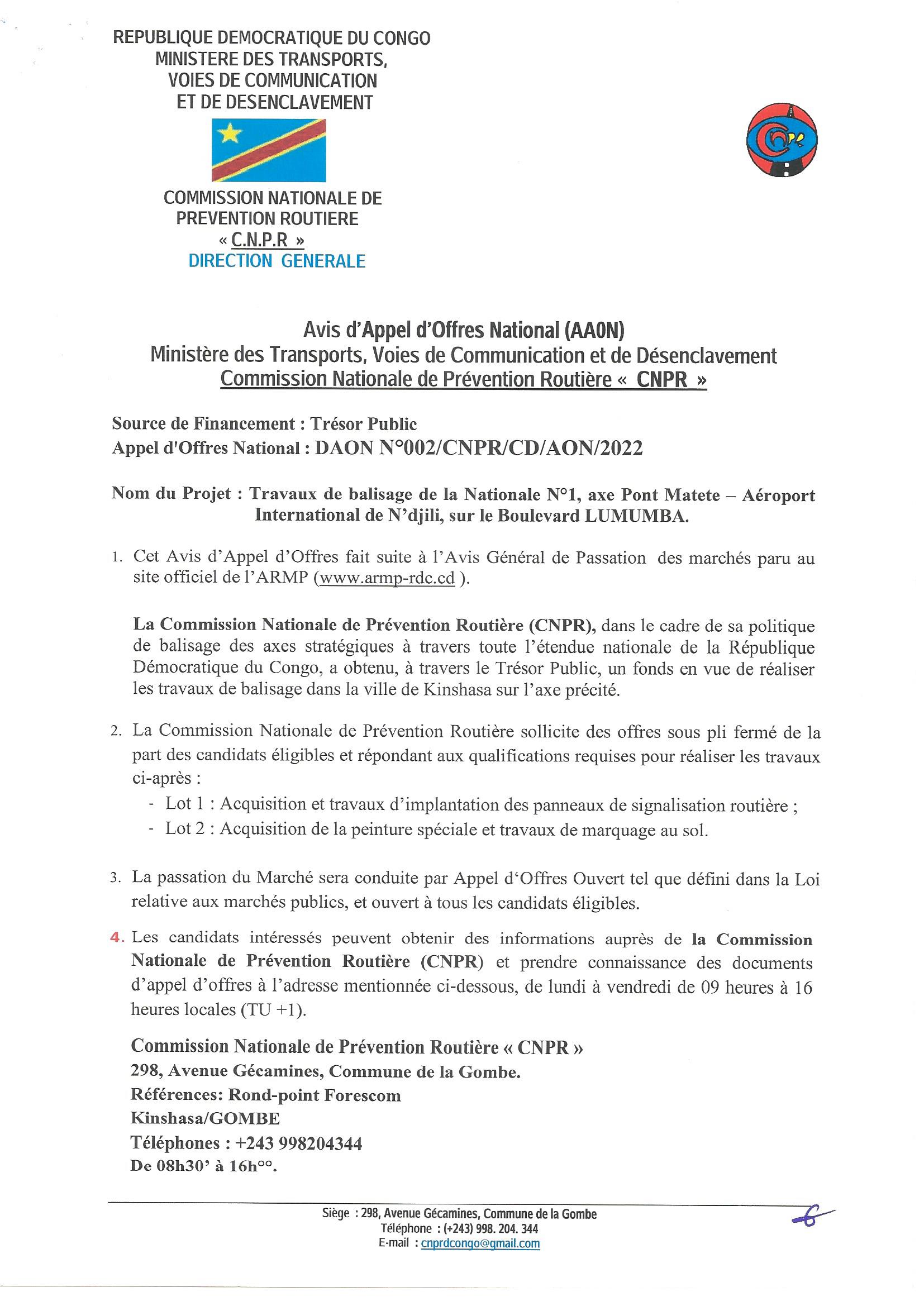 1. Cet Avis d’appel d’offres fait suite au Plan de Passation des Marchés qui a reçu l’avis de non objection de la DGCMP le et qui a été publié au site de l’ARMP en date du 18 avril 2022.