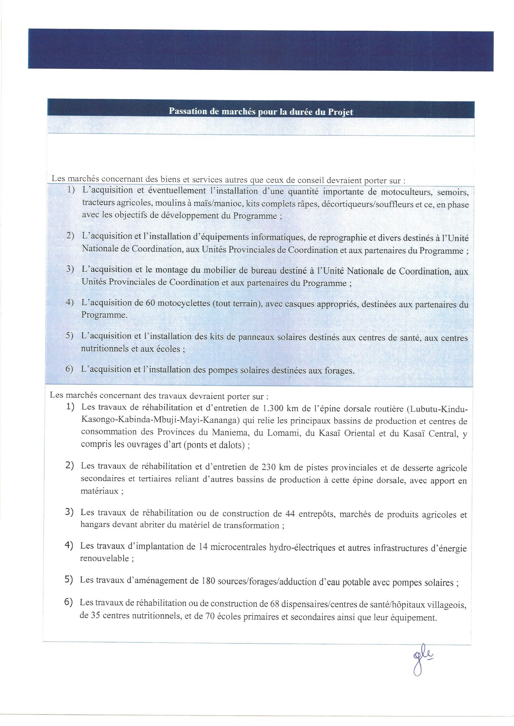 2. Le Gouvernement de la République Démocratique du Congo a reçu un financement auprès de la Banque Africain de Développement (FAD), pour couvrir le coût du Projet d’Appui au Développement du Secteur Prive et à la Création de l’Emploi (PADSP-CE), et entend affecter des paiements au titre du marché relatif aux Travaux de Construction et de Réhabilitation du Bâtiment Administratif au profit du programme-cadre de création d’emplois et de revenus (PROCER) à Kinshasa/Gombe suivant l’AAON n°09/BAD/CEP/PADSP-CE/COORD/CP/PM/2022.