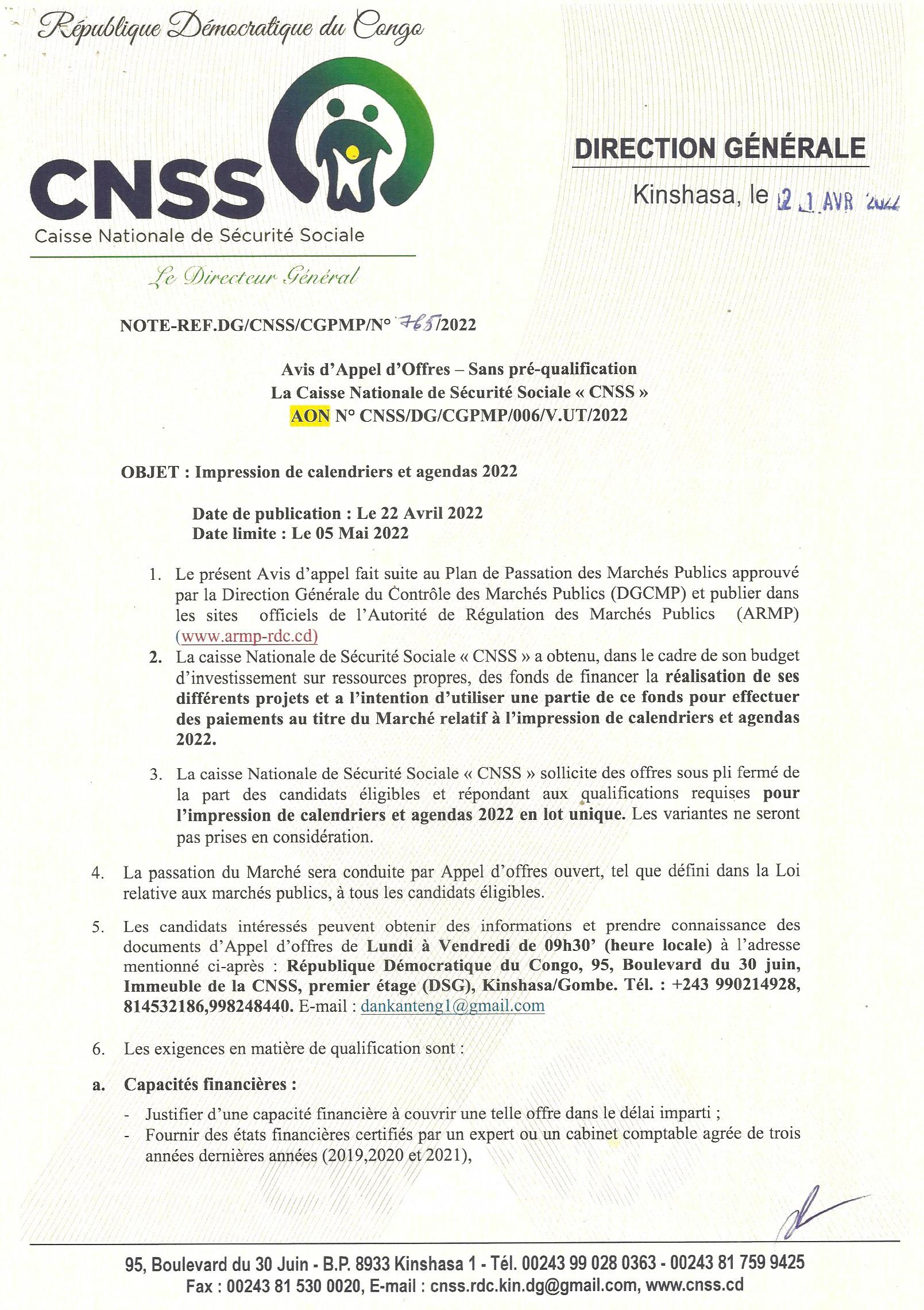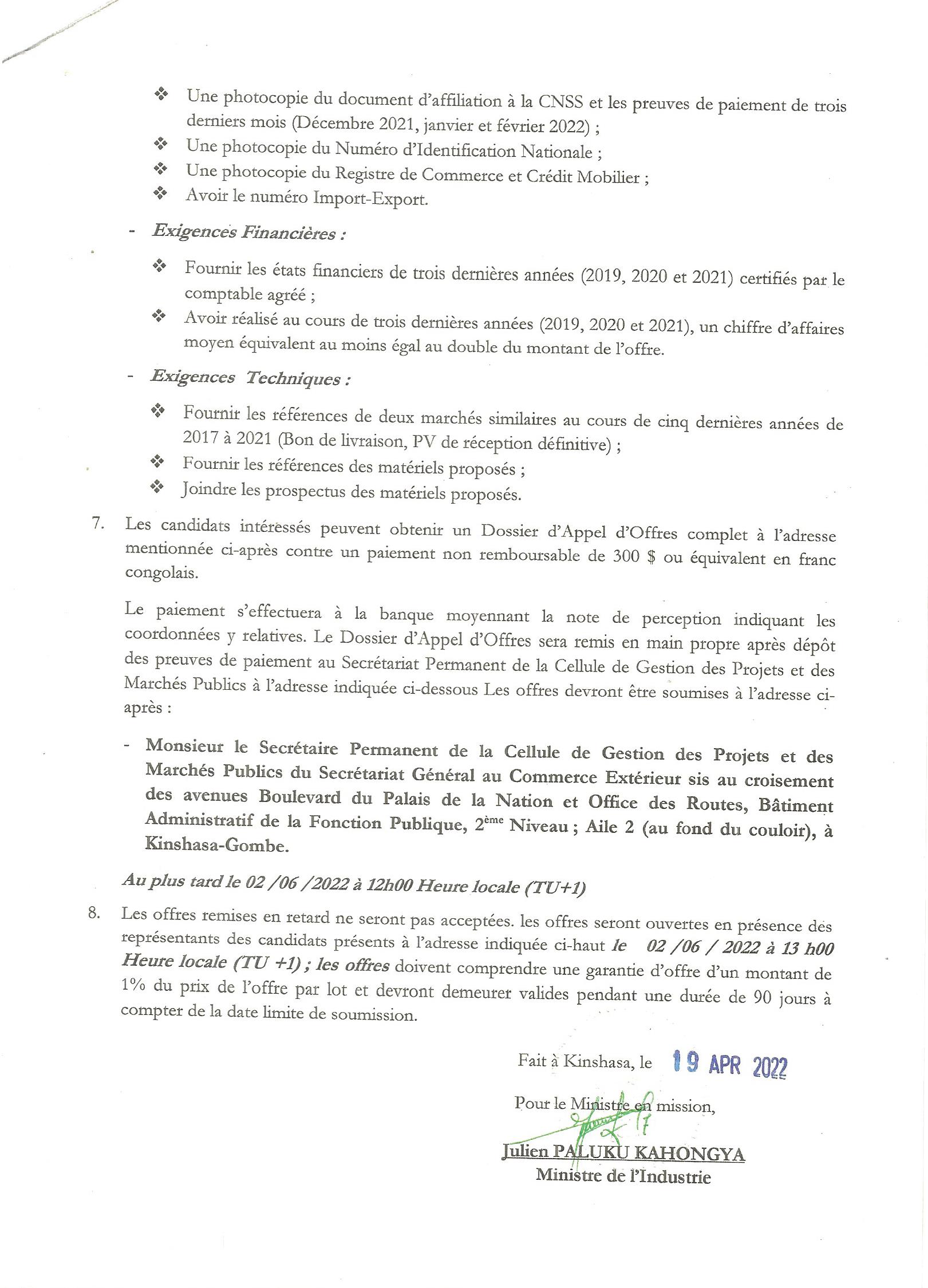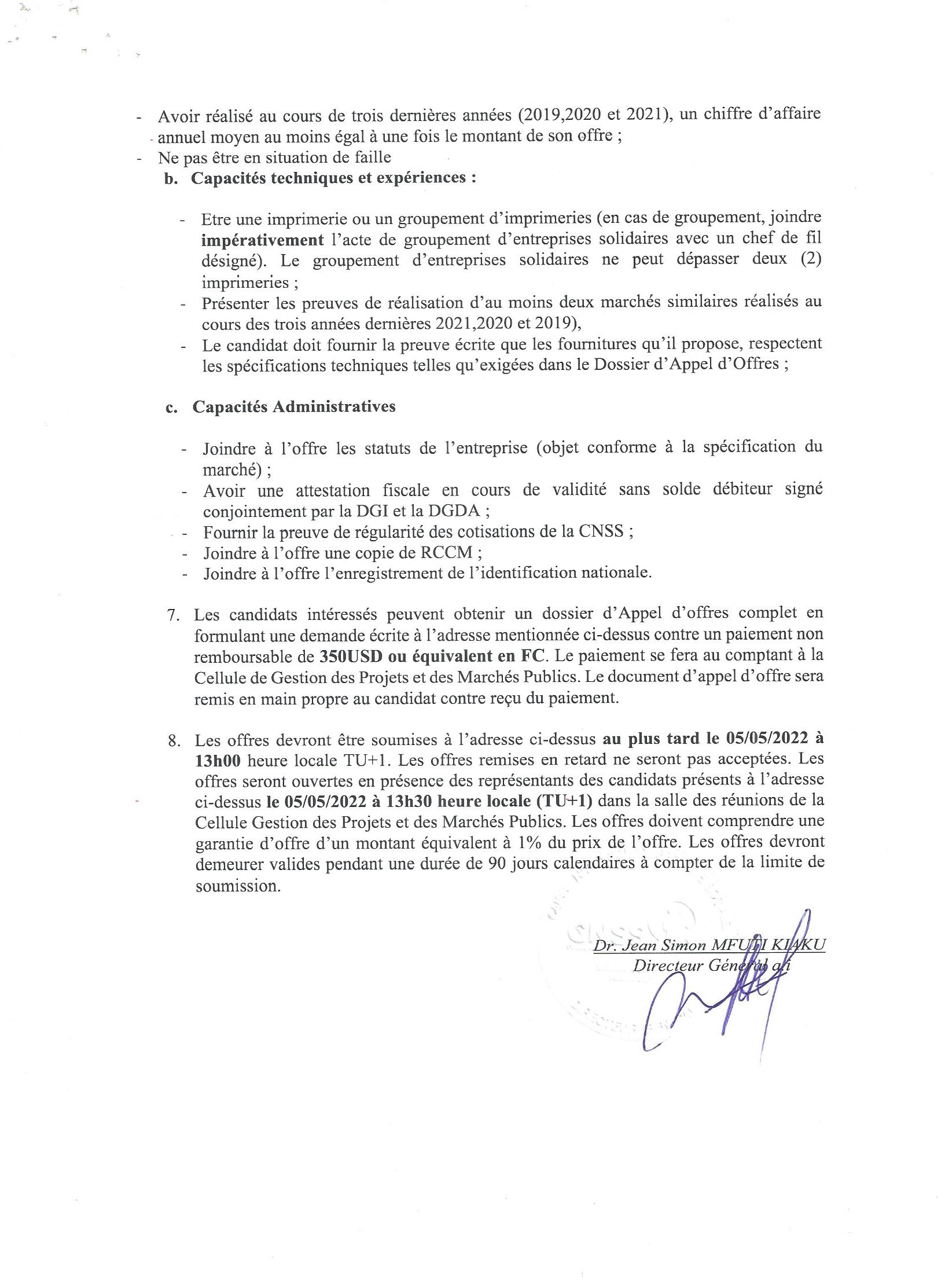 AVIS D’APPEL D’OFFRES DE LA PROVINCE DU LUALABA RELATIF AU MARCHES TRAVAUX DE CONSTRUCTION D’UNE SALLE POLYVALENTE SELON LES DETAILS DANS LE DOSSIER D ‘APPEL D’OFFRES.