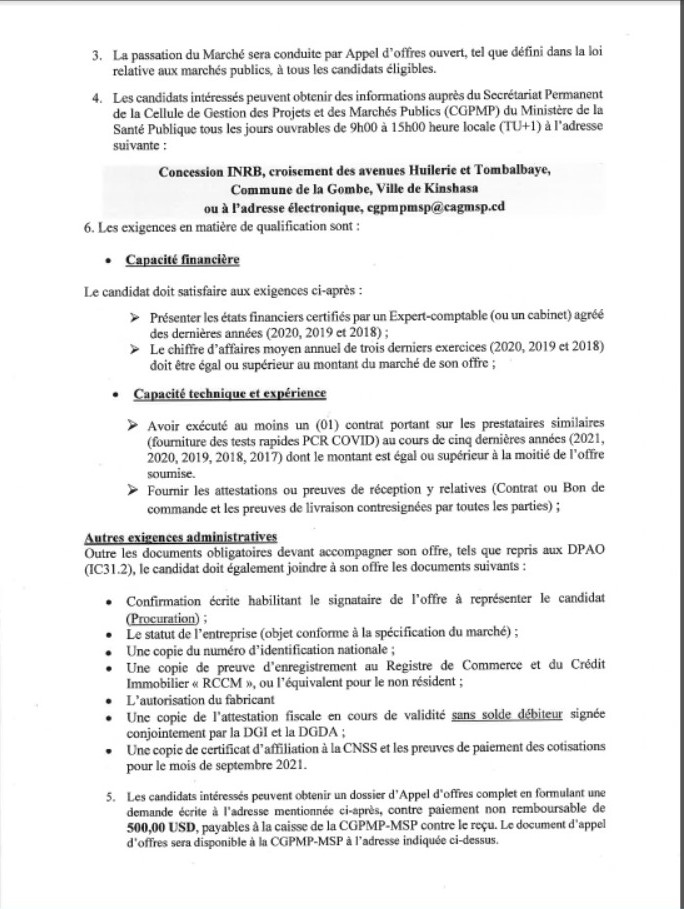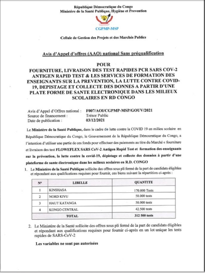 AVIS D’APPEL D’OFFRES DU MINISTERE DE L’ENSEIGNEMENT PRIMAIRE, SECONDAIRE ET TECHNIQUE” EPST” RELATIF A LA CONSTRUCTION DE 200 ECOLES DANS LES 58 PROVINCES EDUCATIONNELLES DE LA RDC EN 58 LOTS.