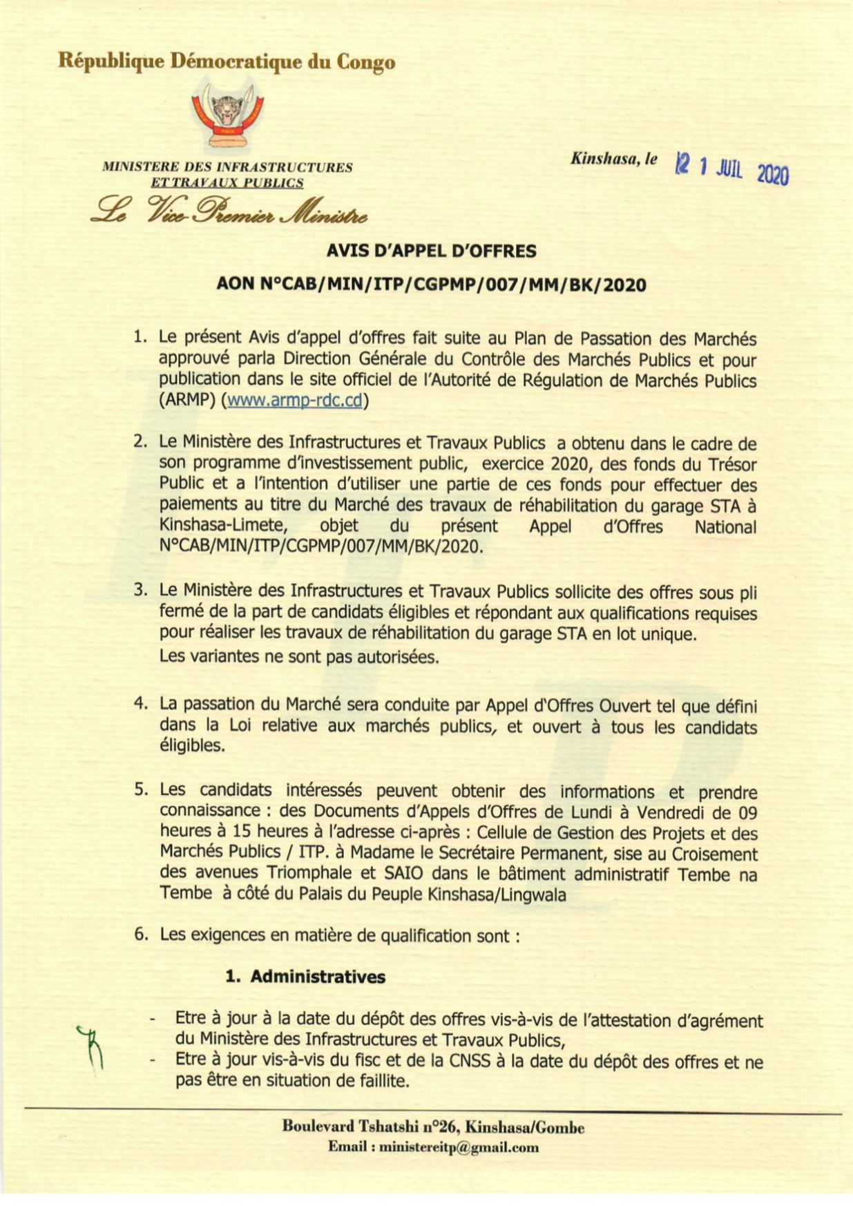 TRAVAUX DE REHABILITATION DU GARAGE STA A KINSHASA-LIMETE
