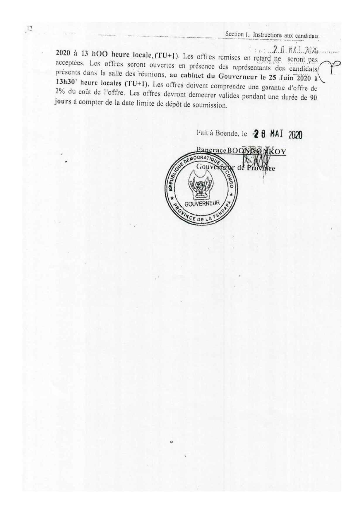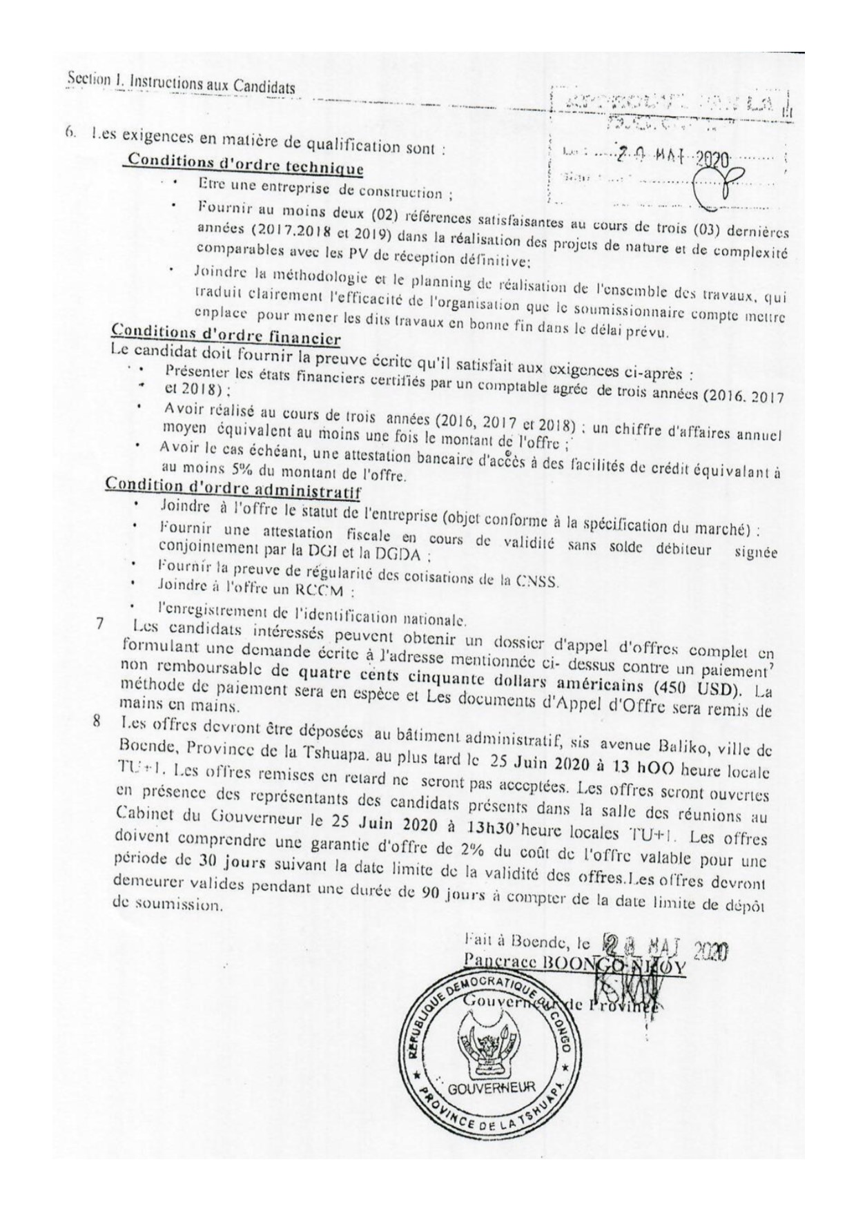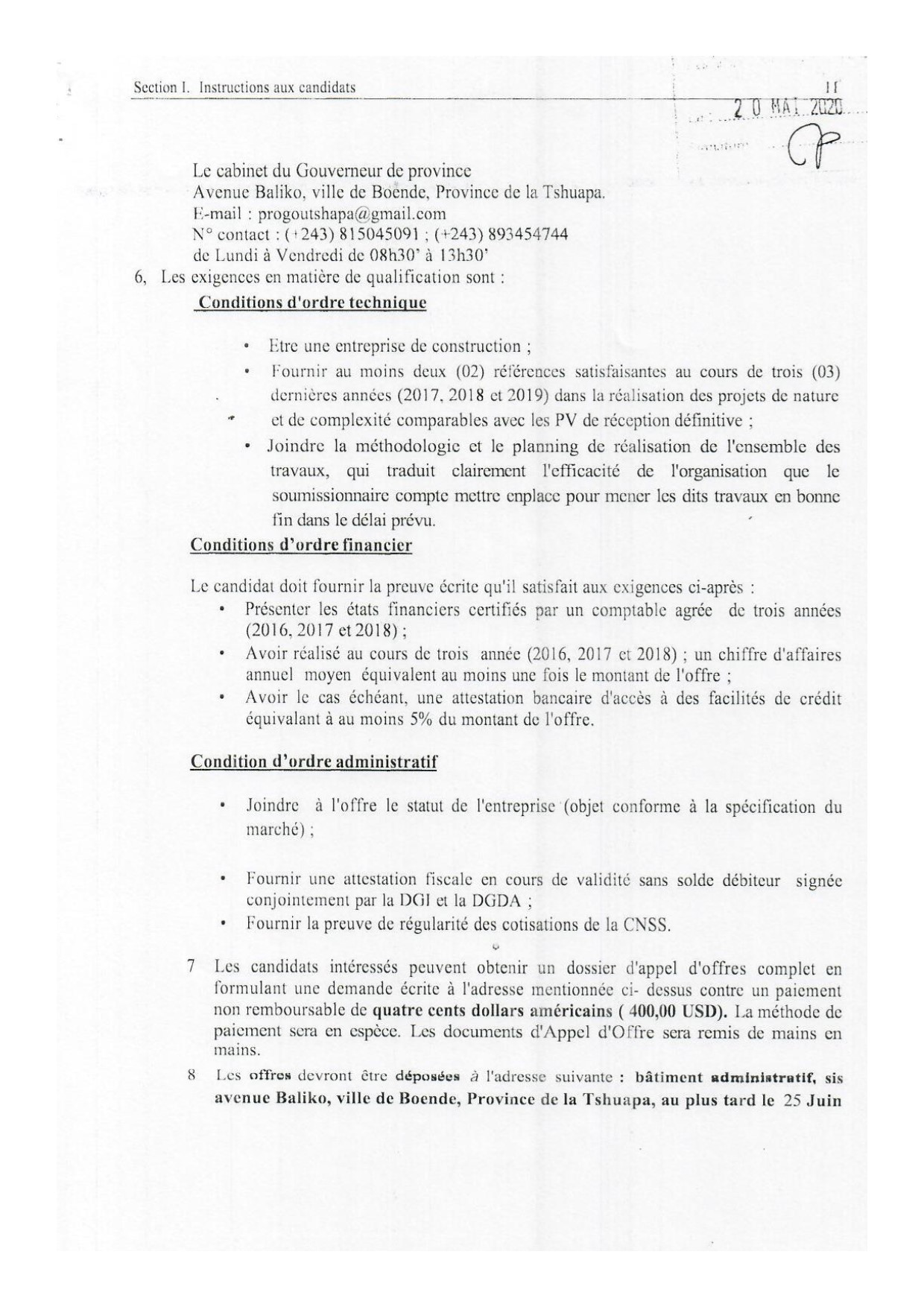 CONSTRUCTION DE L’HOTEL DU GOUVERNEMENT DE LA PROVINCE DE LA TSHUAPA.