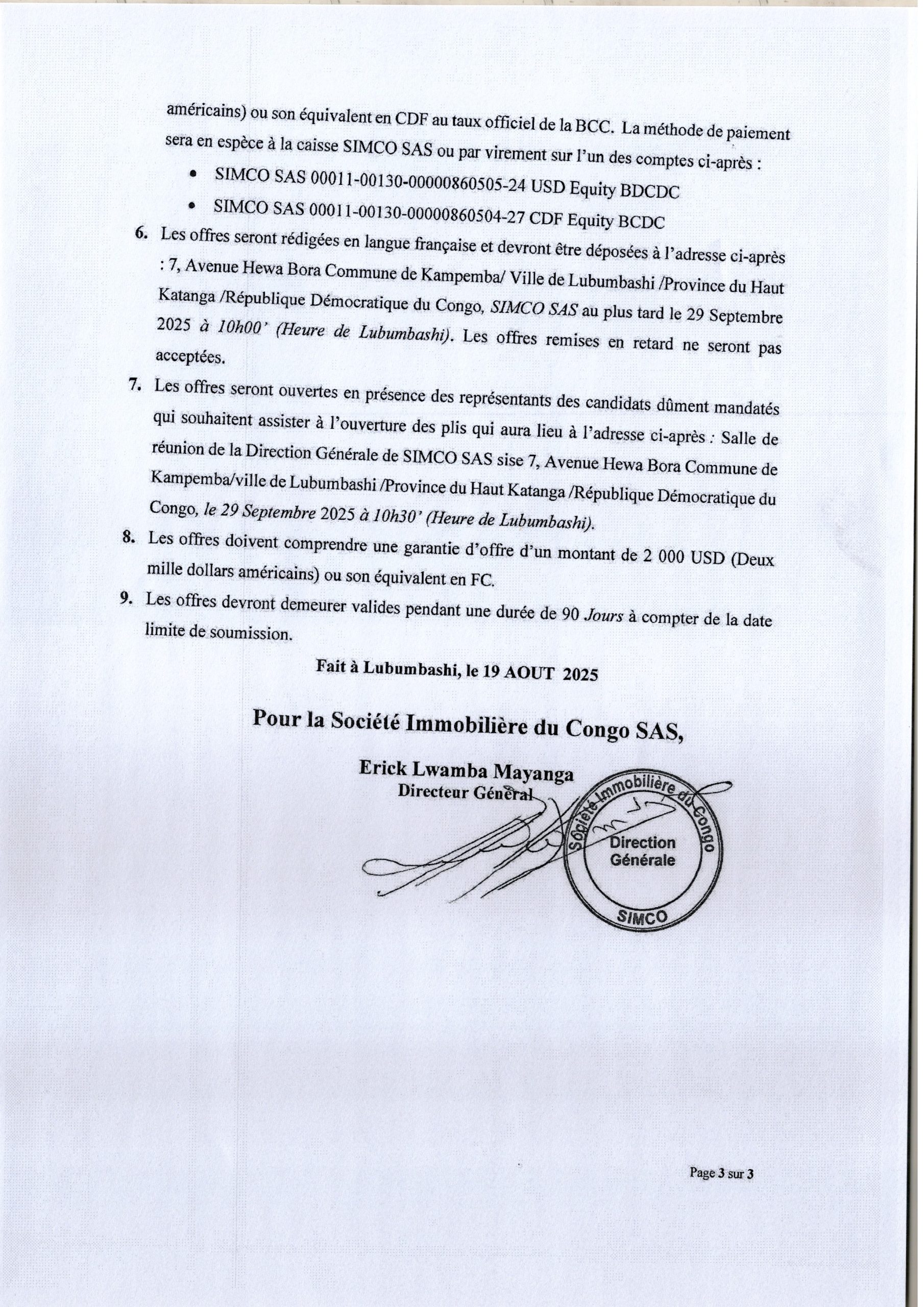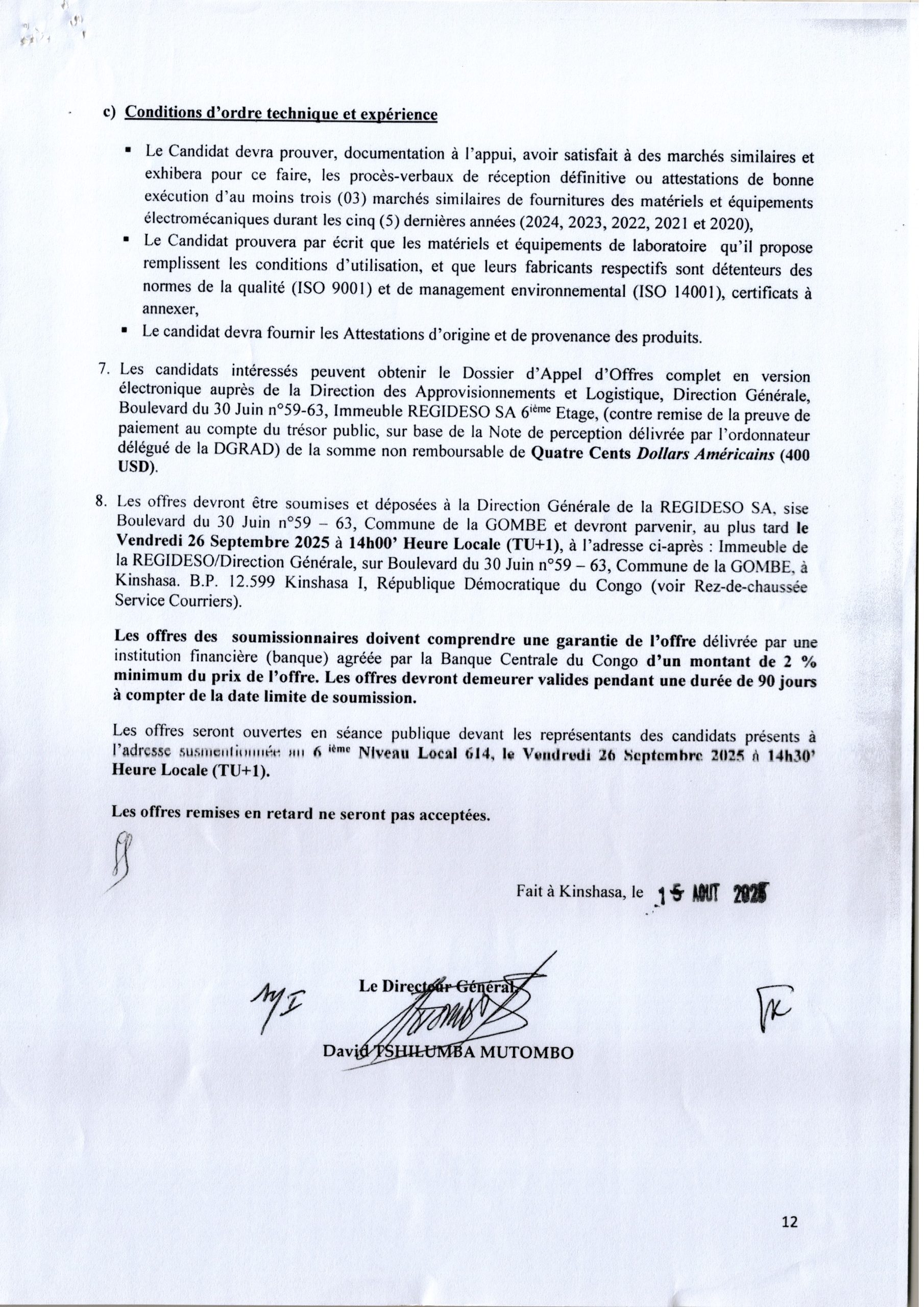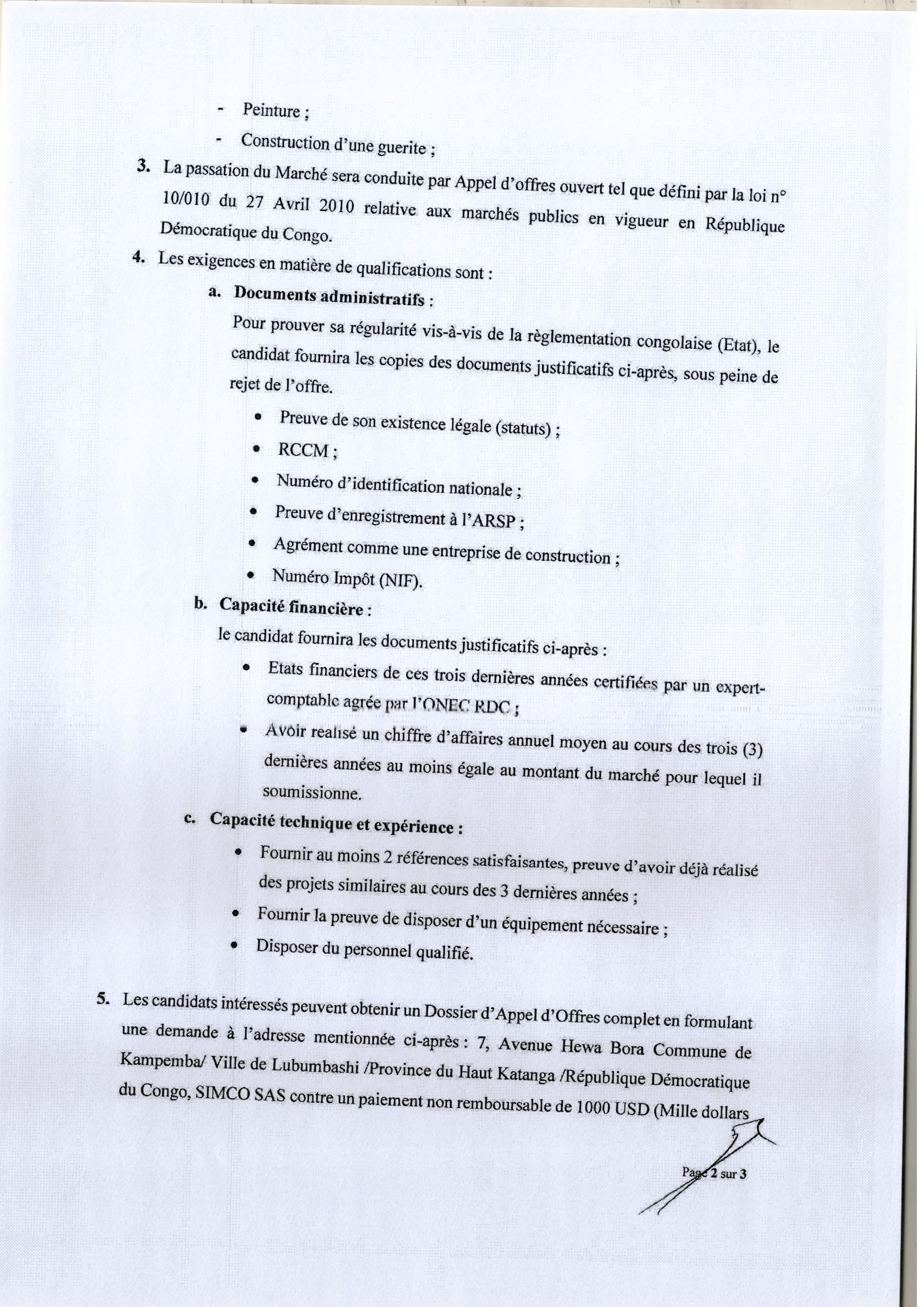 Acquisition des équipements de bureau au profit des Entités Territoriales Décentralisées “ETD” dans les provinces ciblées du Projet (Kasai, Kasai-Oriental, Kwango, Kwilu et Kongo Central).