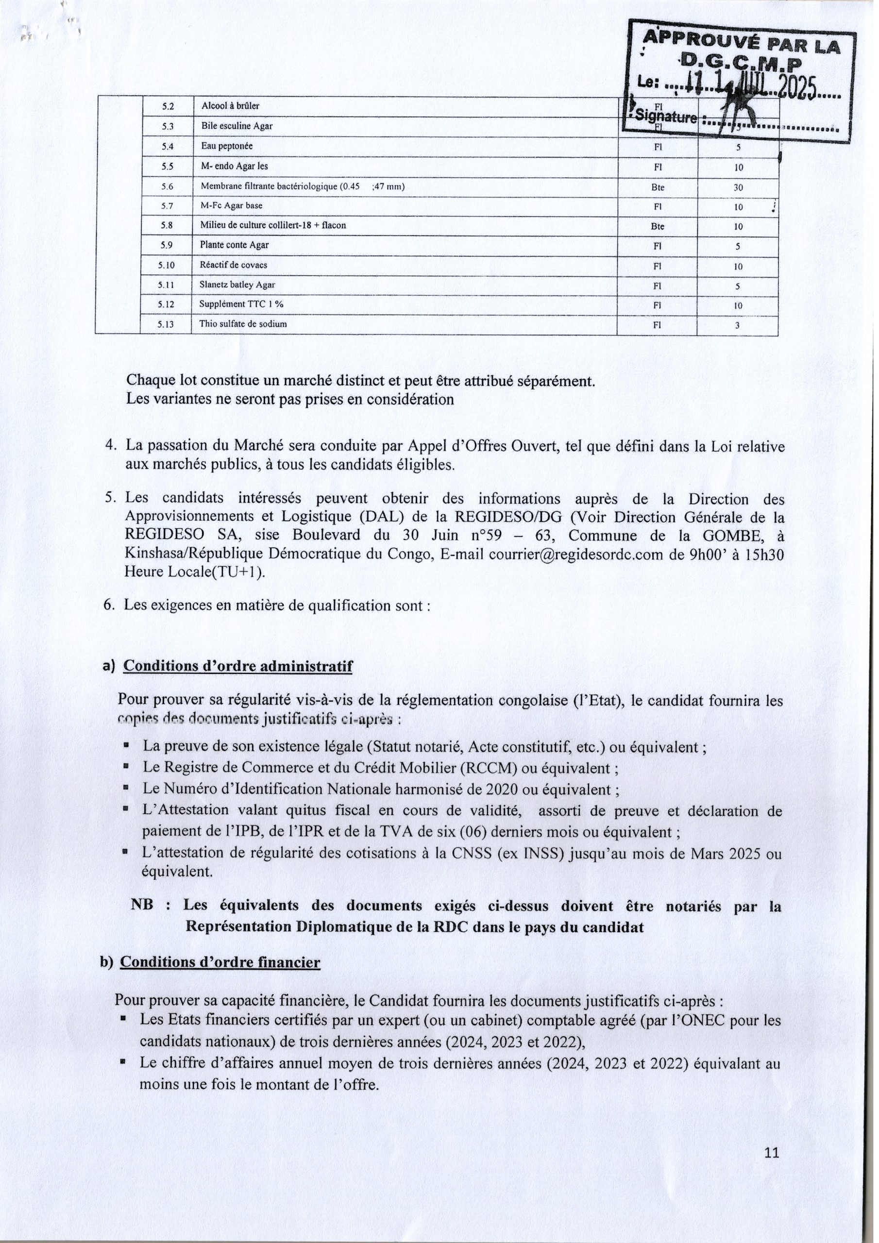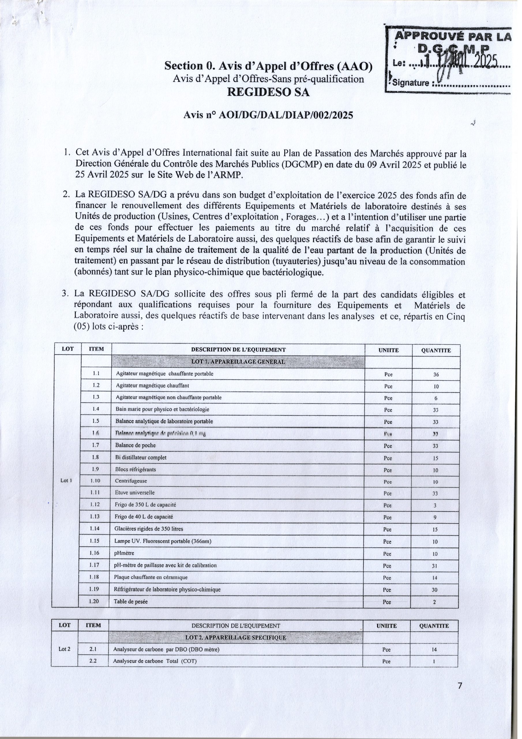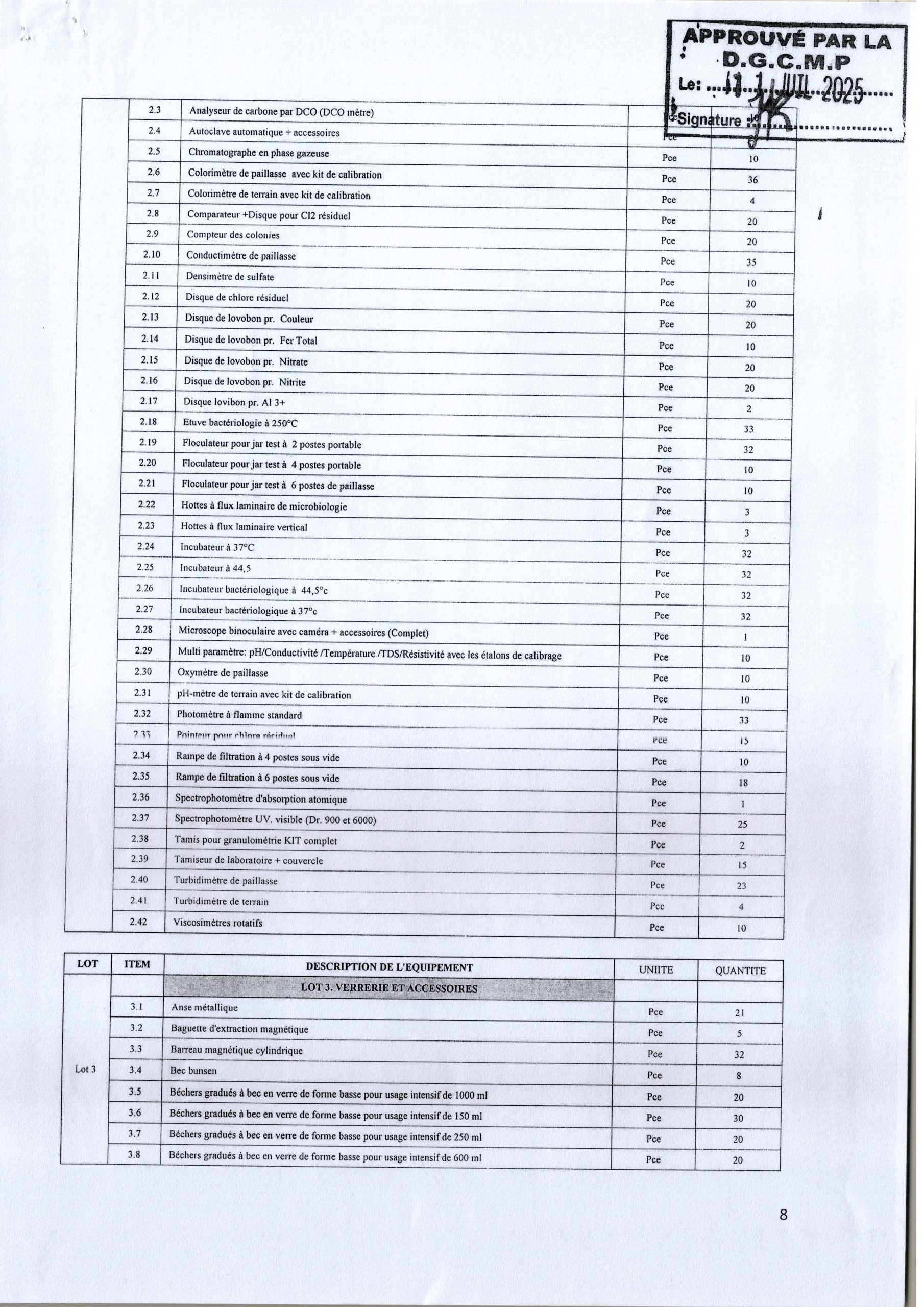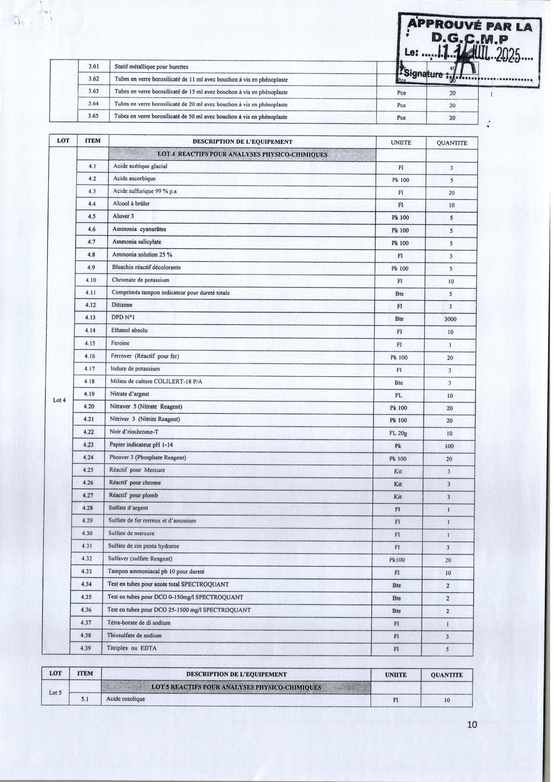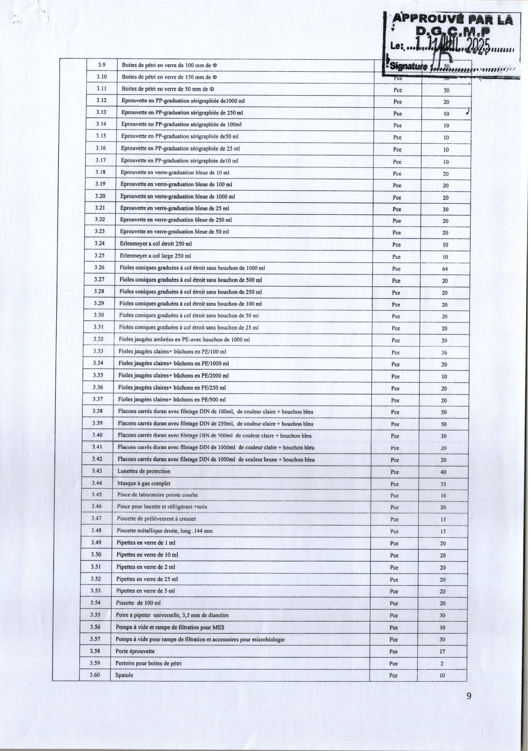 Acquisition des Matériels, Equipements et Réactifs de laboratoire reparti en 5 lots.
