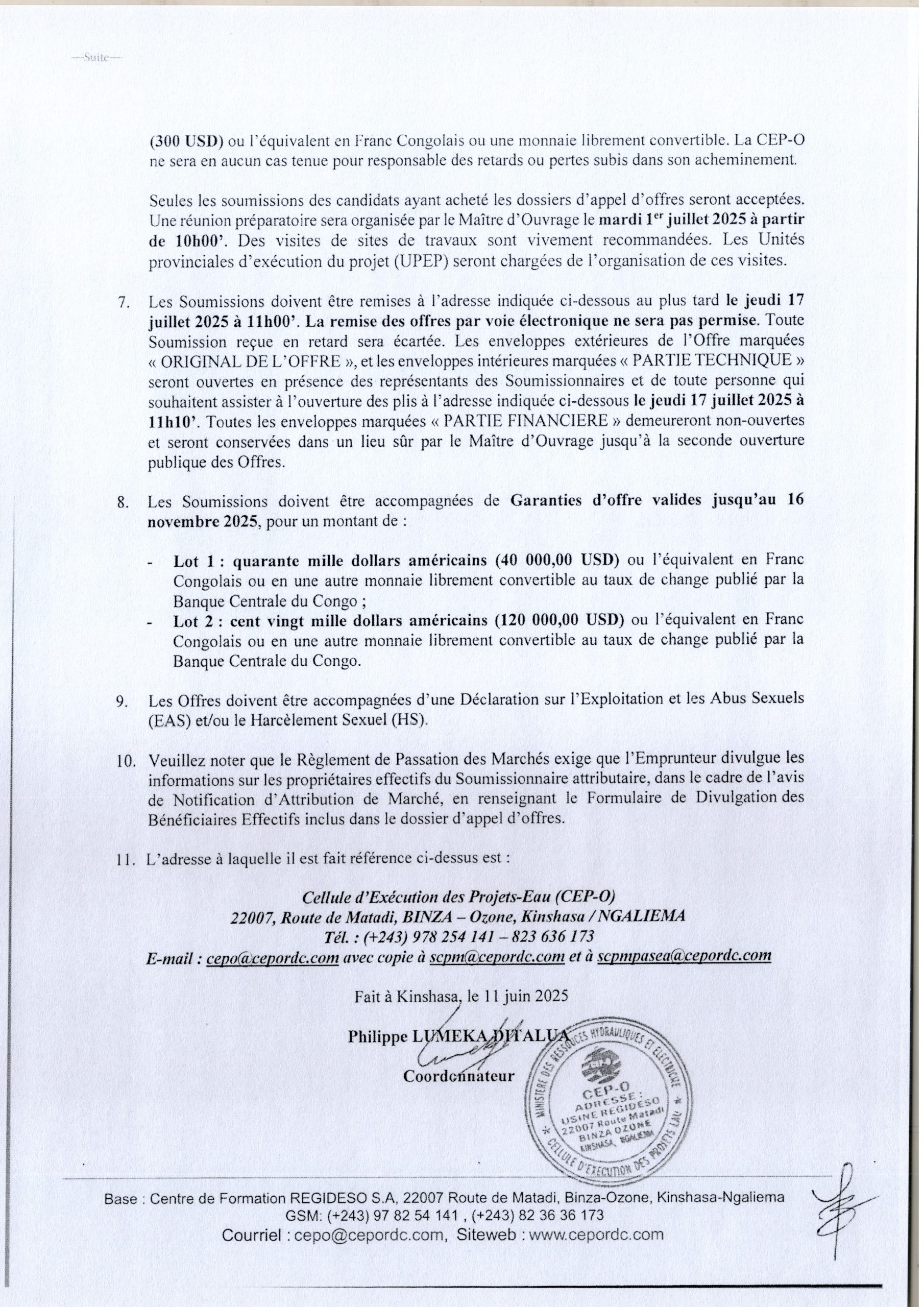 Travaux d’exécution des forages dans les provinces de Kwilu, Kasai Kasai Central et Kasai Oriental