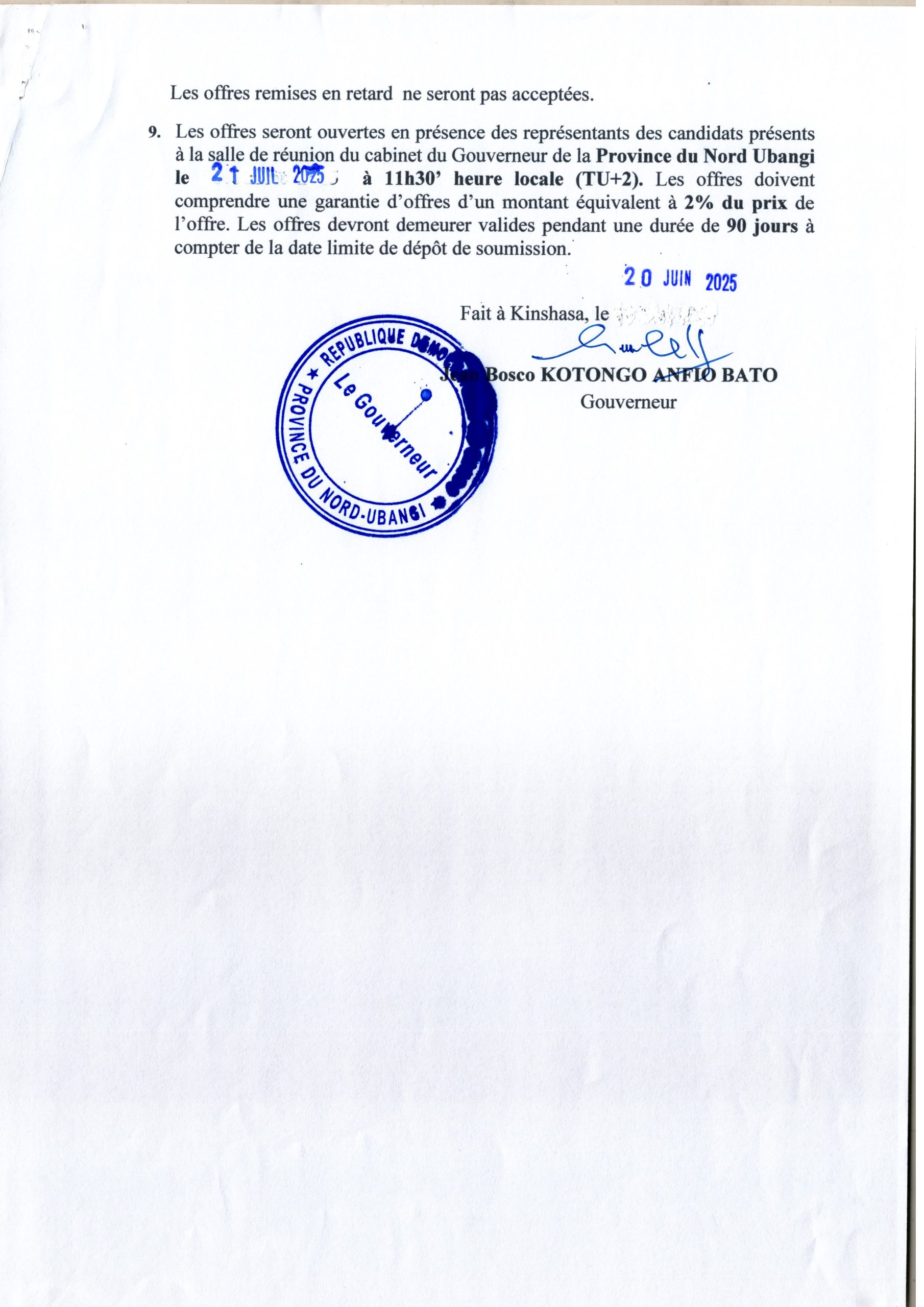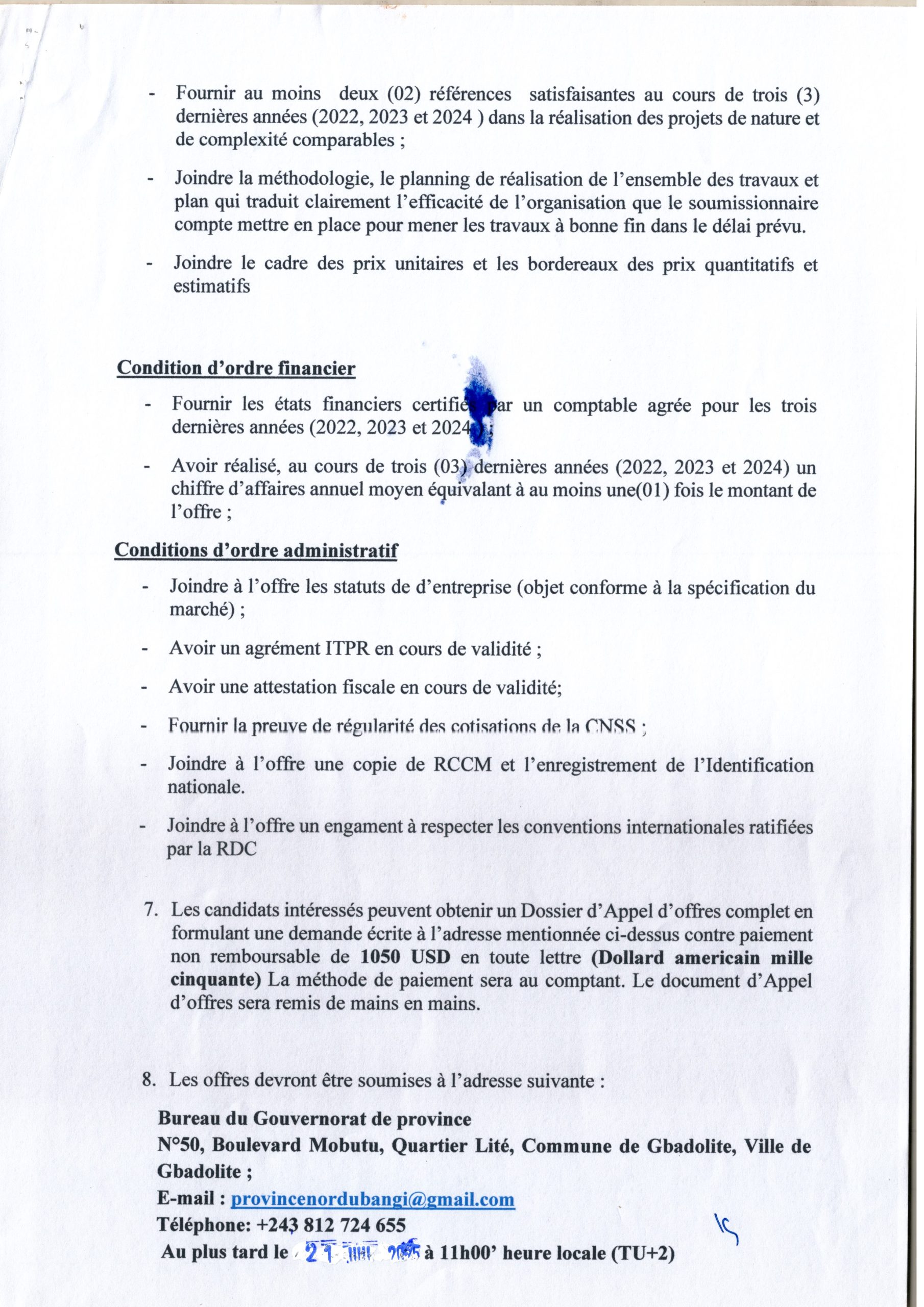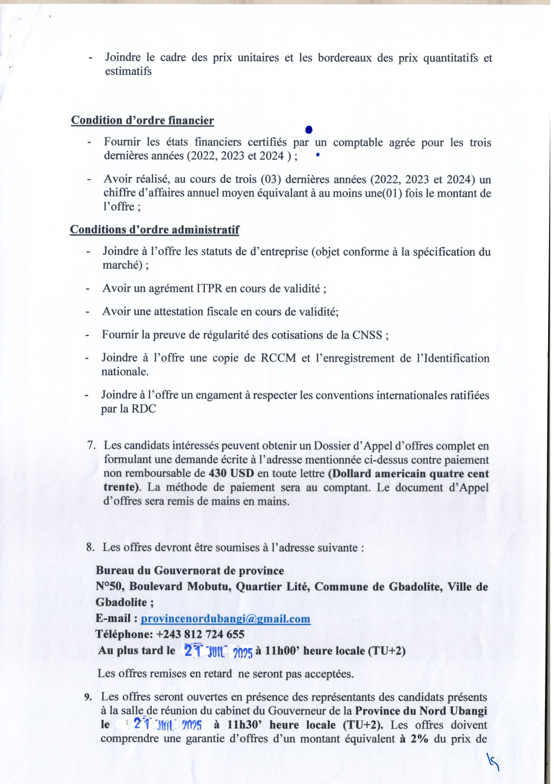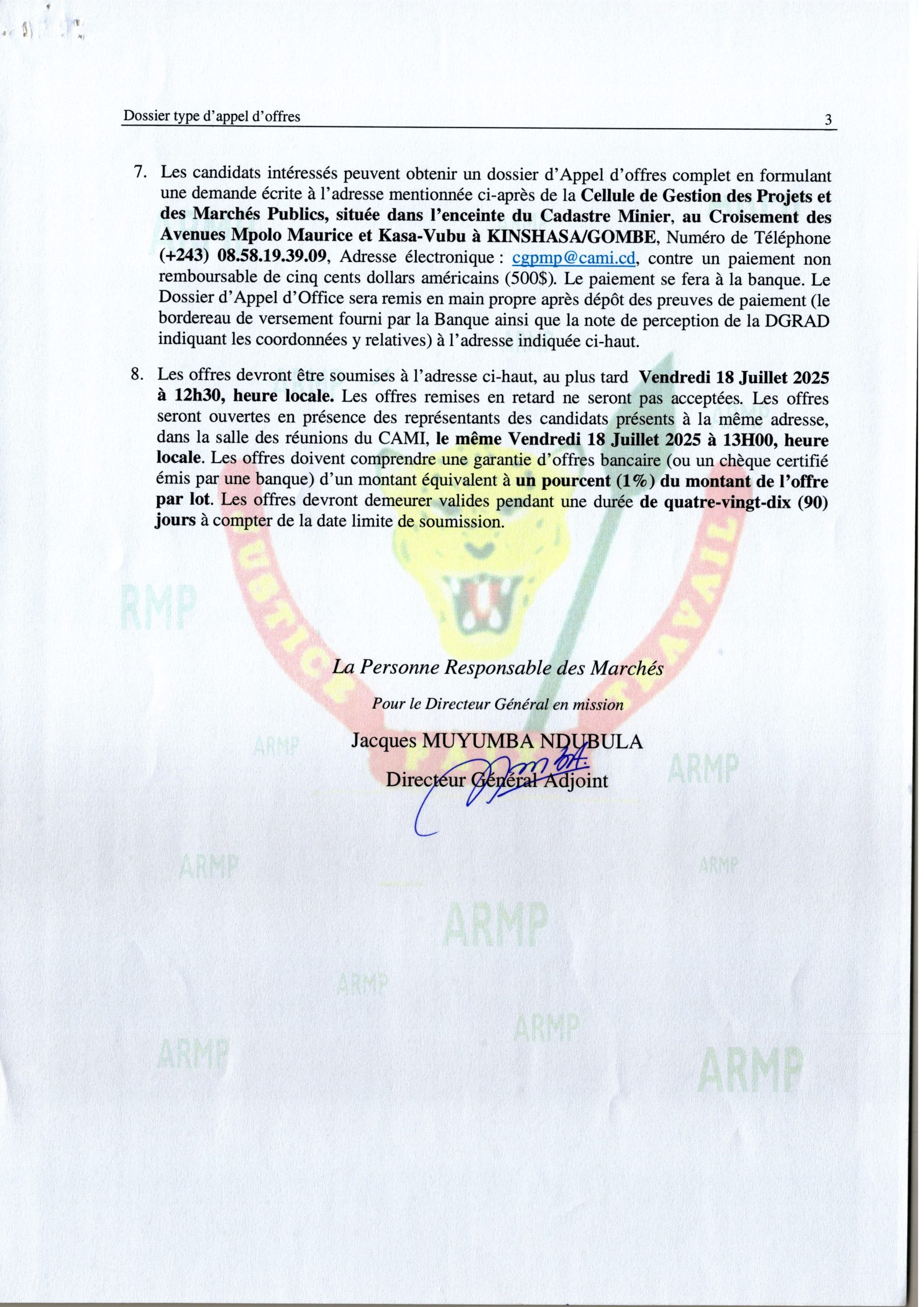 Avis général de passation de marchés
