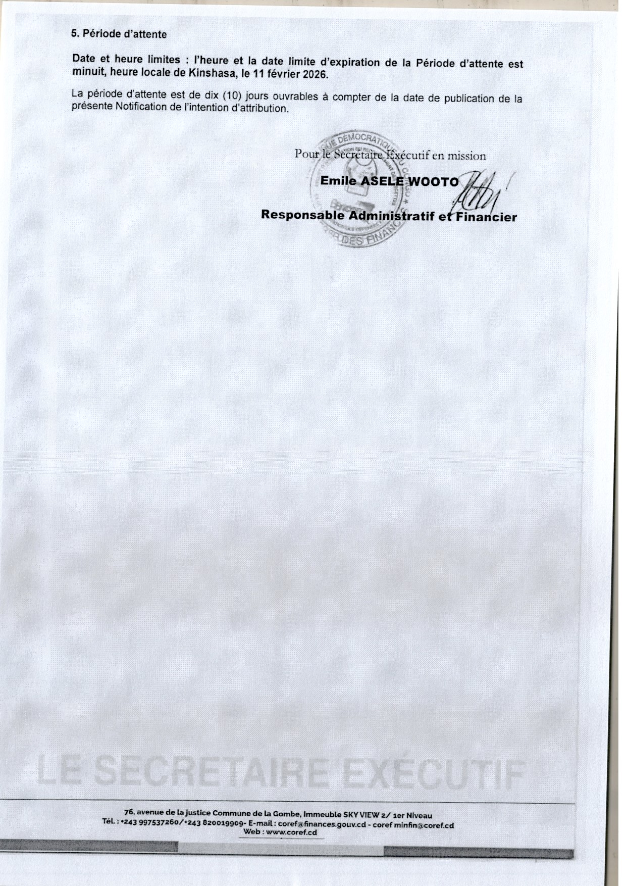 Attribution provisoire accordée aux établissements “DEV SOLAIRE” relative au marché d’acquisition des matériels et équipements électriques au profit du Centre Multifonctionnel Genre de Kenge, des Secteurs : Bukanga Lonzo, Pelende Nord, Kolokoso et Dinga dans la Province du Kwango.