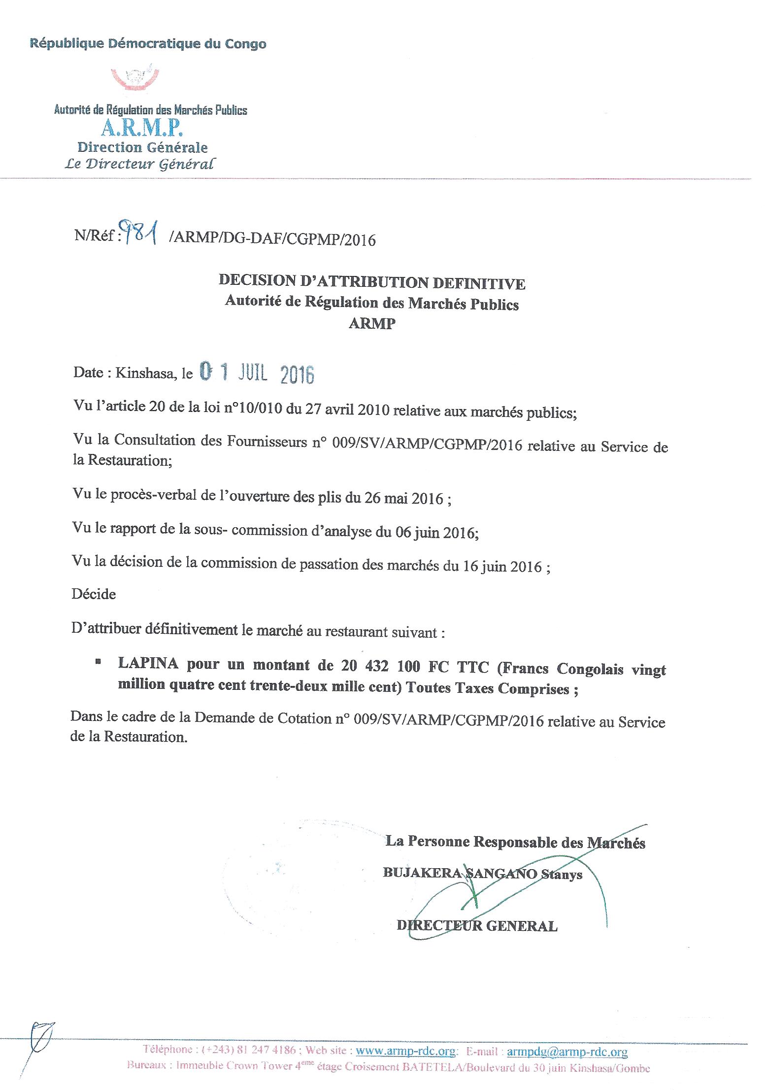 Attribution provisoire du marché relatif à l’acquisition des équipements informatiques au profit de LA DIRECTION GÉNÉRALE DE MIGRATION.