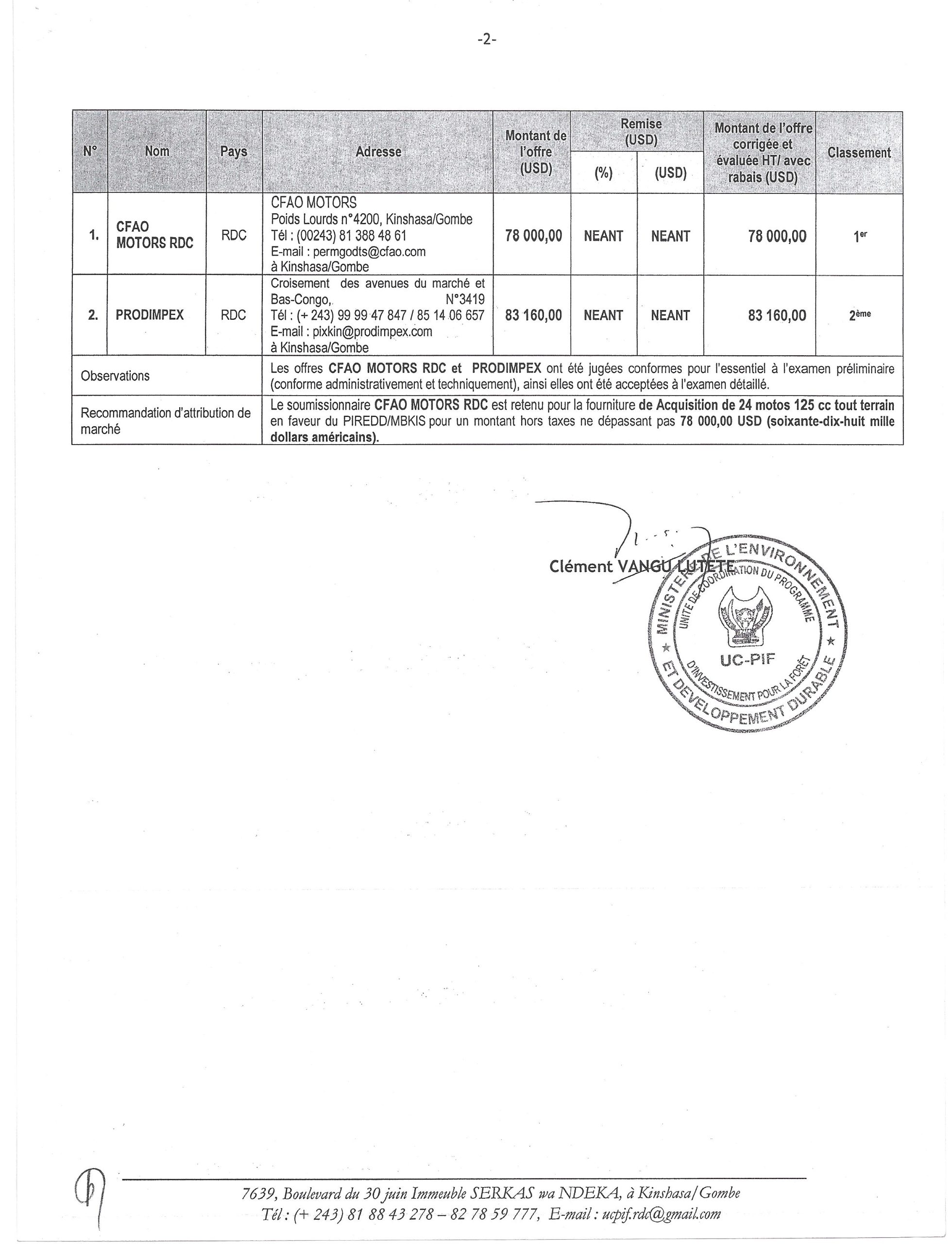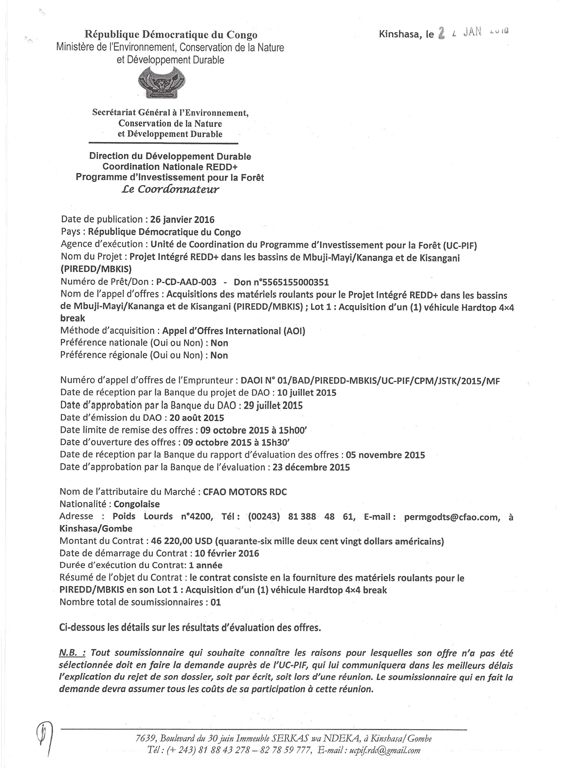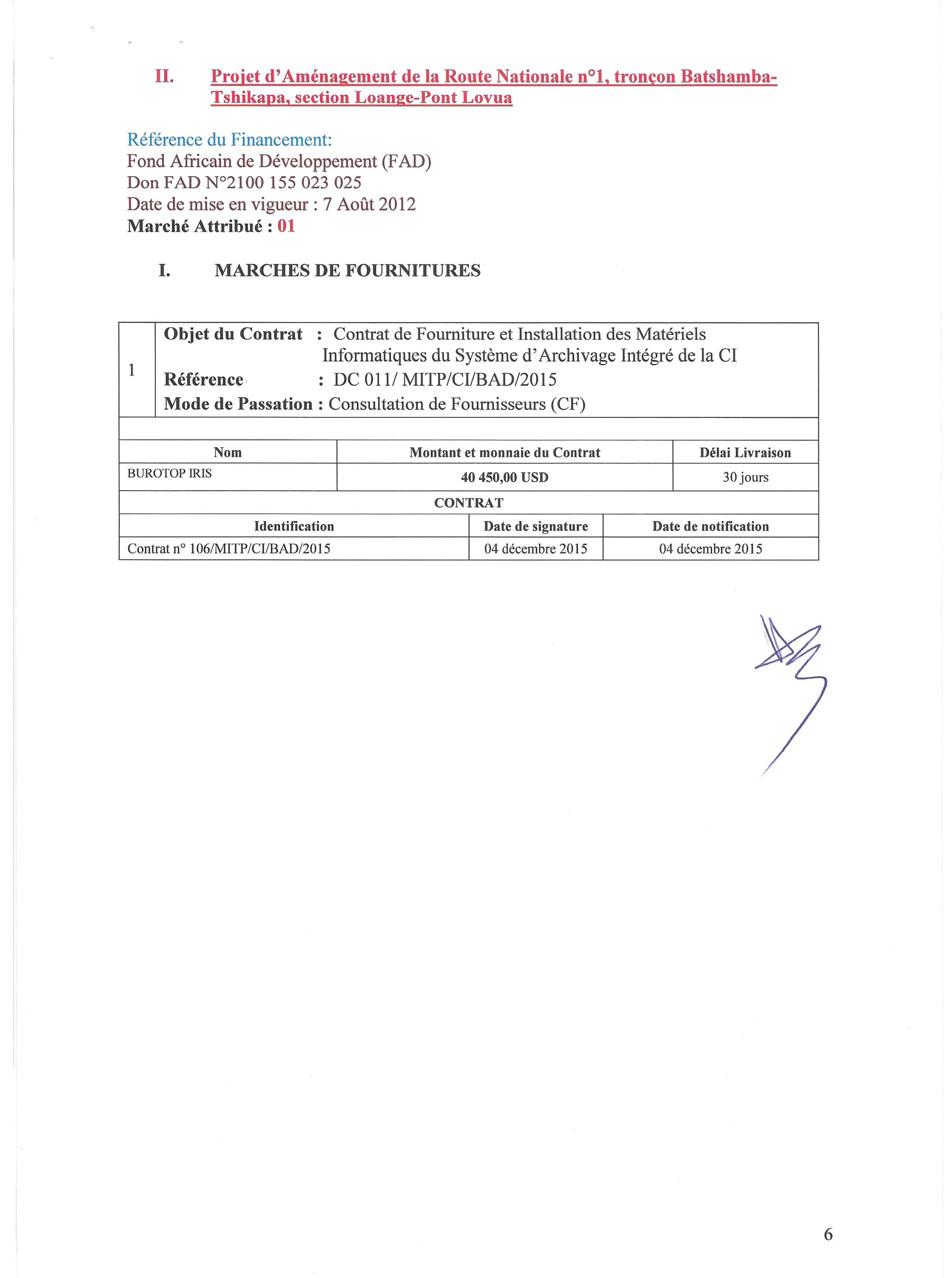 marché d’impression de la loi de finance 2016 à la société imprimerie du CONGO IMPRICO SARL