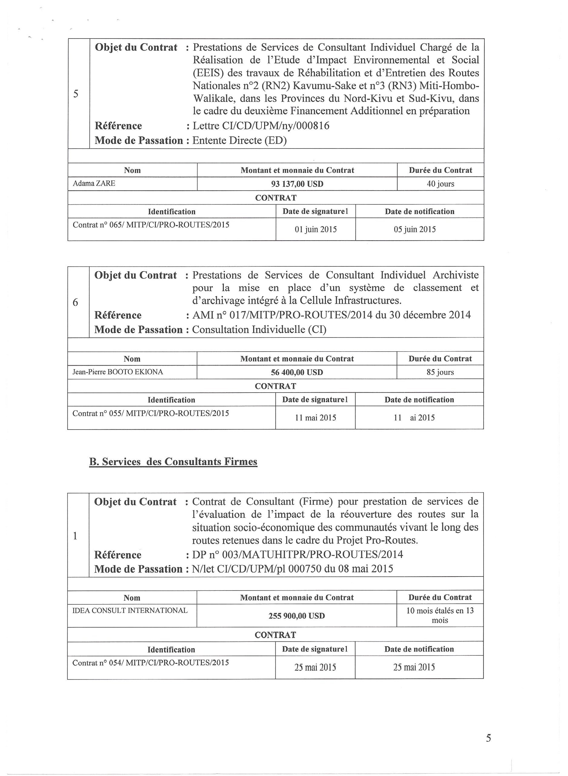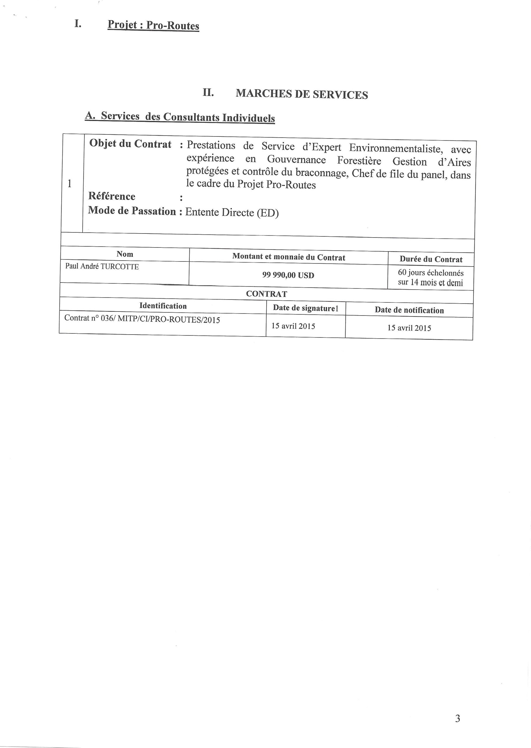 Attribution du marché à mr Paul André Turcotte pour les prestations de service d’expert environnementaliste, avec expérience en gouvernance forestière gestion d’aires protégées et contrôle du braconnage, …