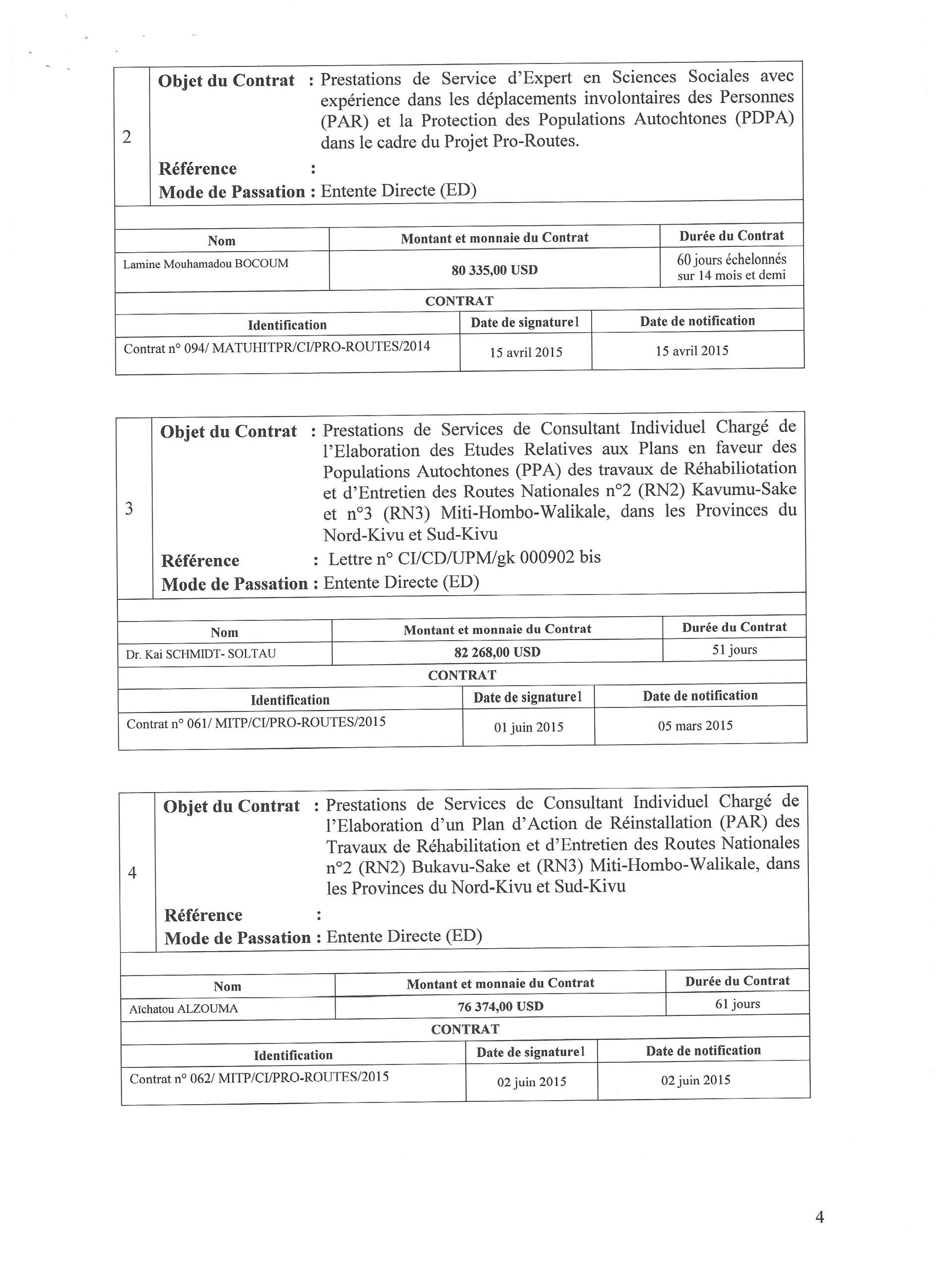 Attribution accordée à ITCA MOTORS relative au fourniture de quatre (04) voitures utilitaires berline pour les assistants techniques individuels et la coordination nationale du projet.