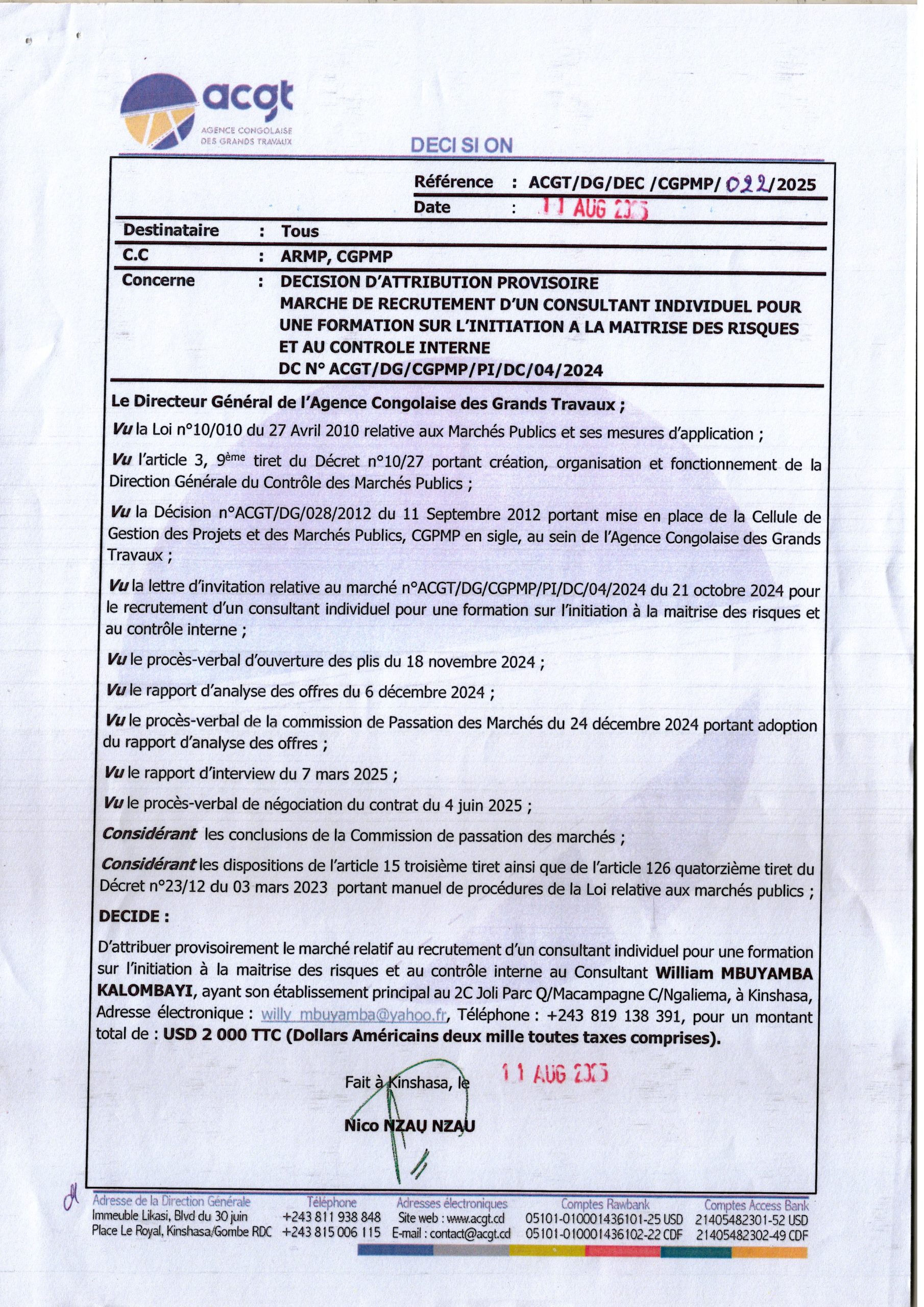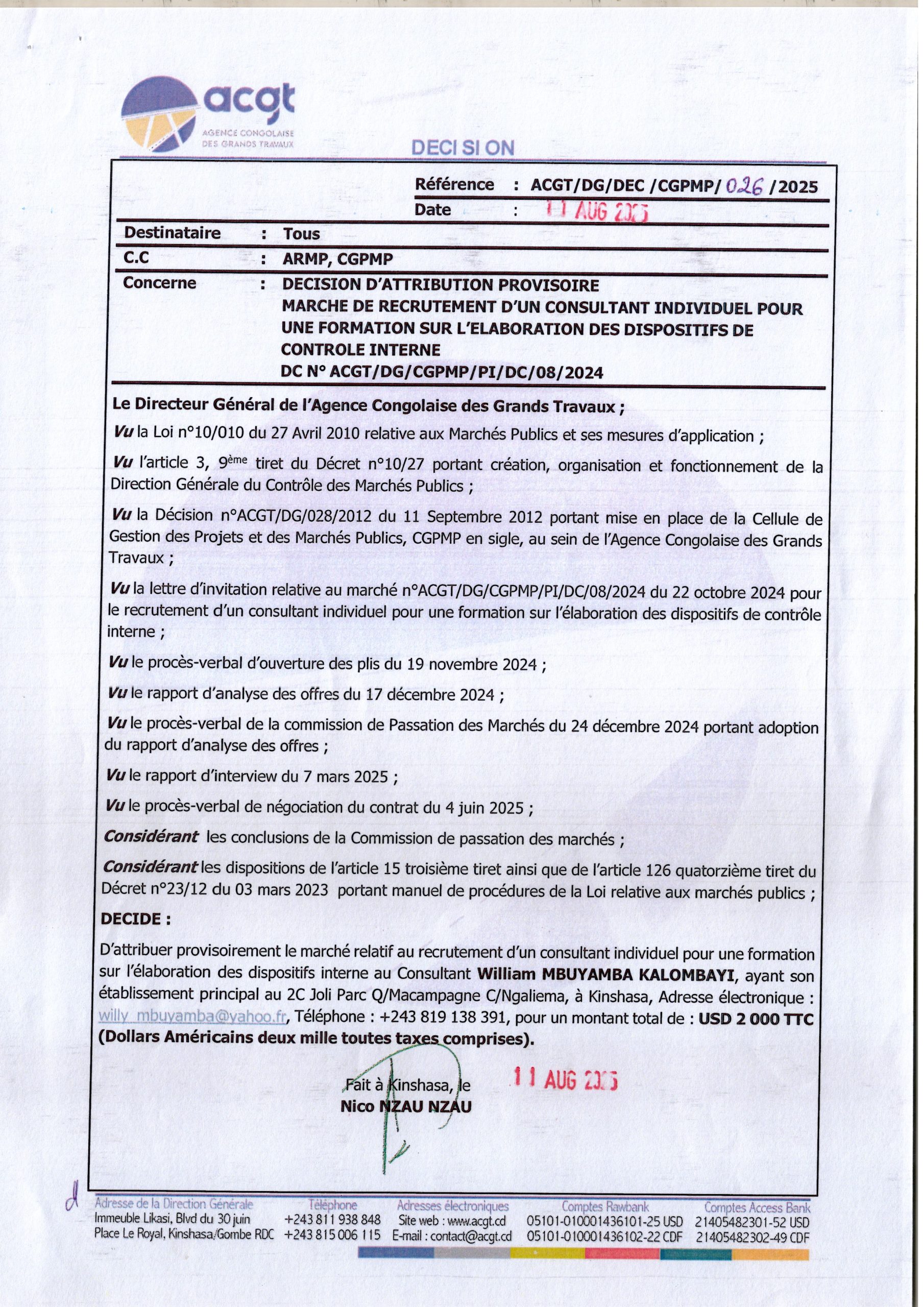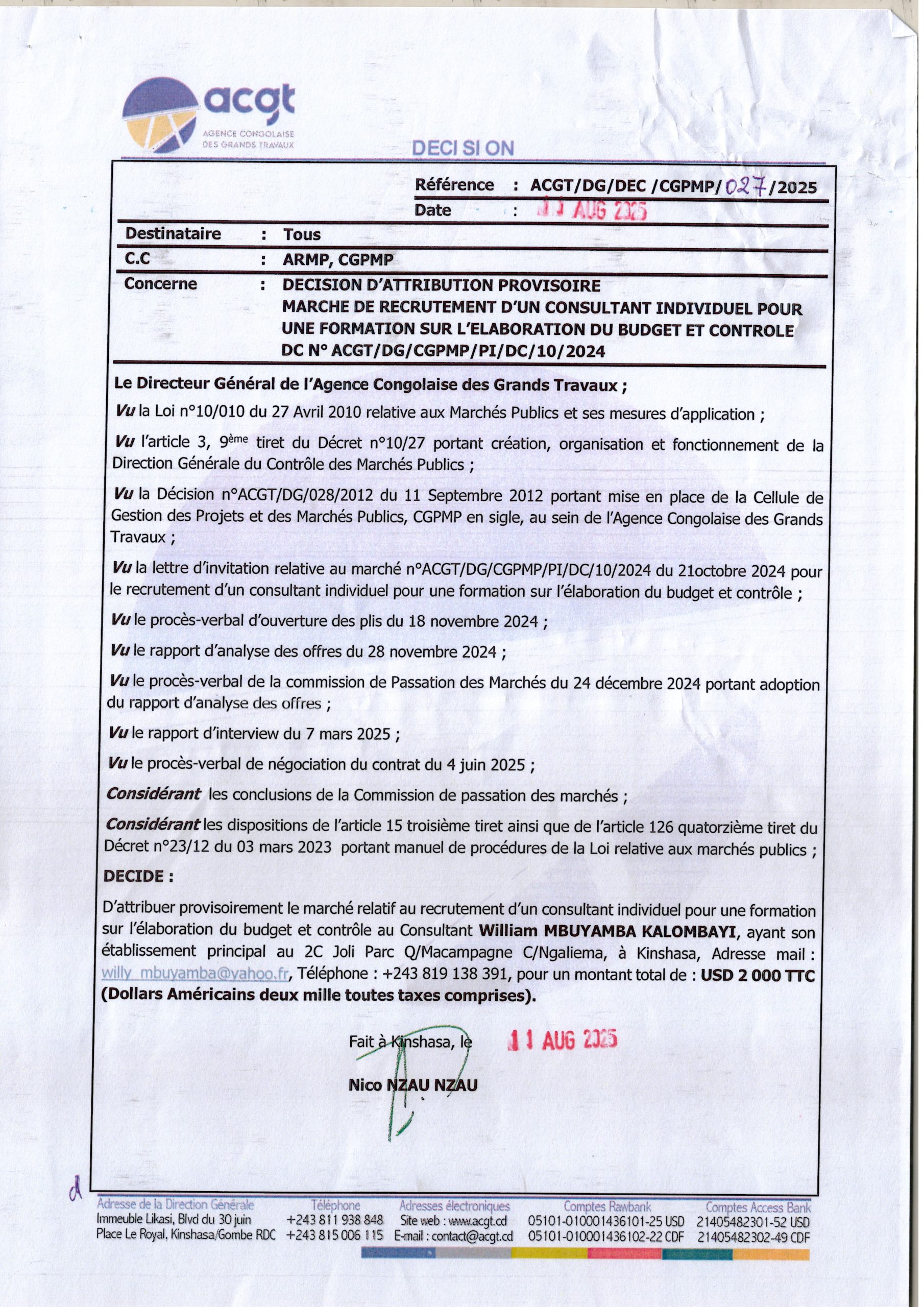 Attribution définitive accordée à la société “SOKIN SARL” le marché relatif à l’acquisition des vivres de fin d’année 2024 en faveur des agents et cadres du Secrétariat Général aux Finances, des membres du Cabinet du Ministère des Finances et des Services connexes (Complément).