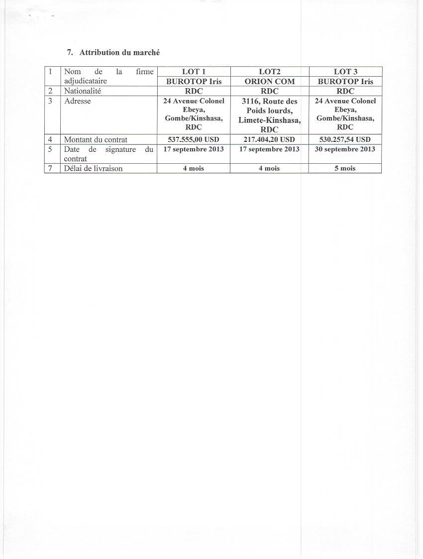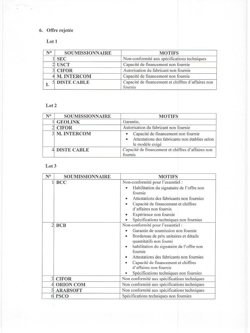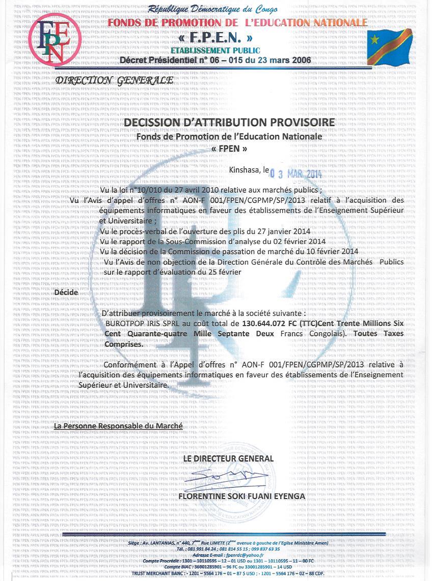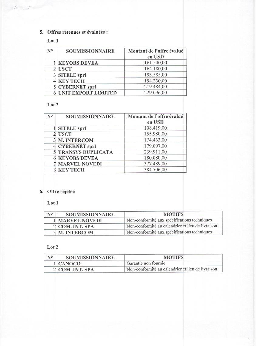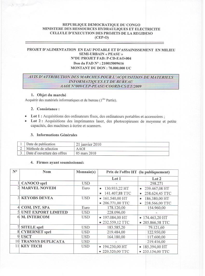 Attribution des Marchés pour l’acquisition de matériels Informatiques et de Bureau.