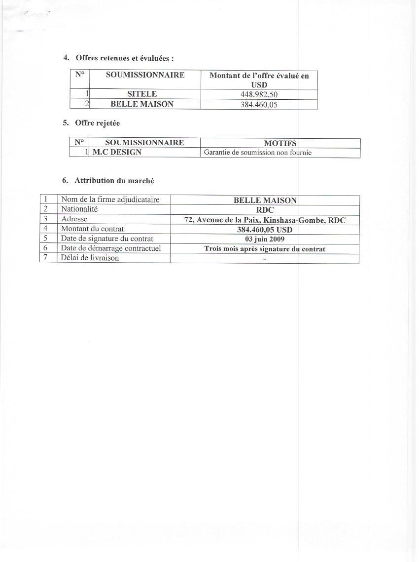 Attribution des Marchés pour la Fourniture de Mobiliers de Bureau.