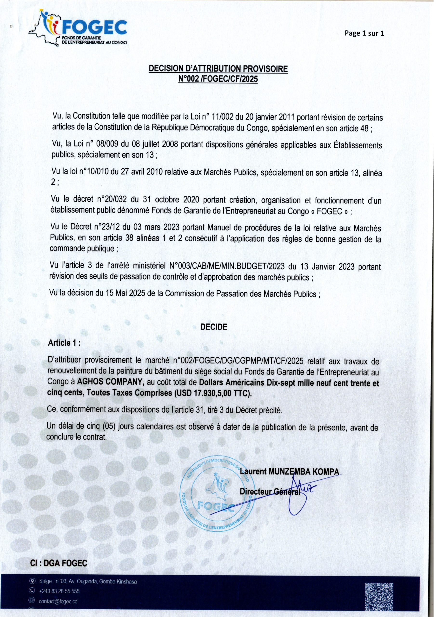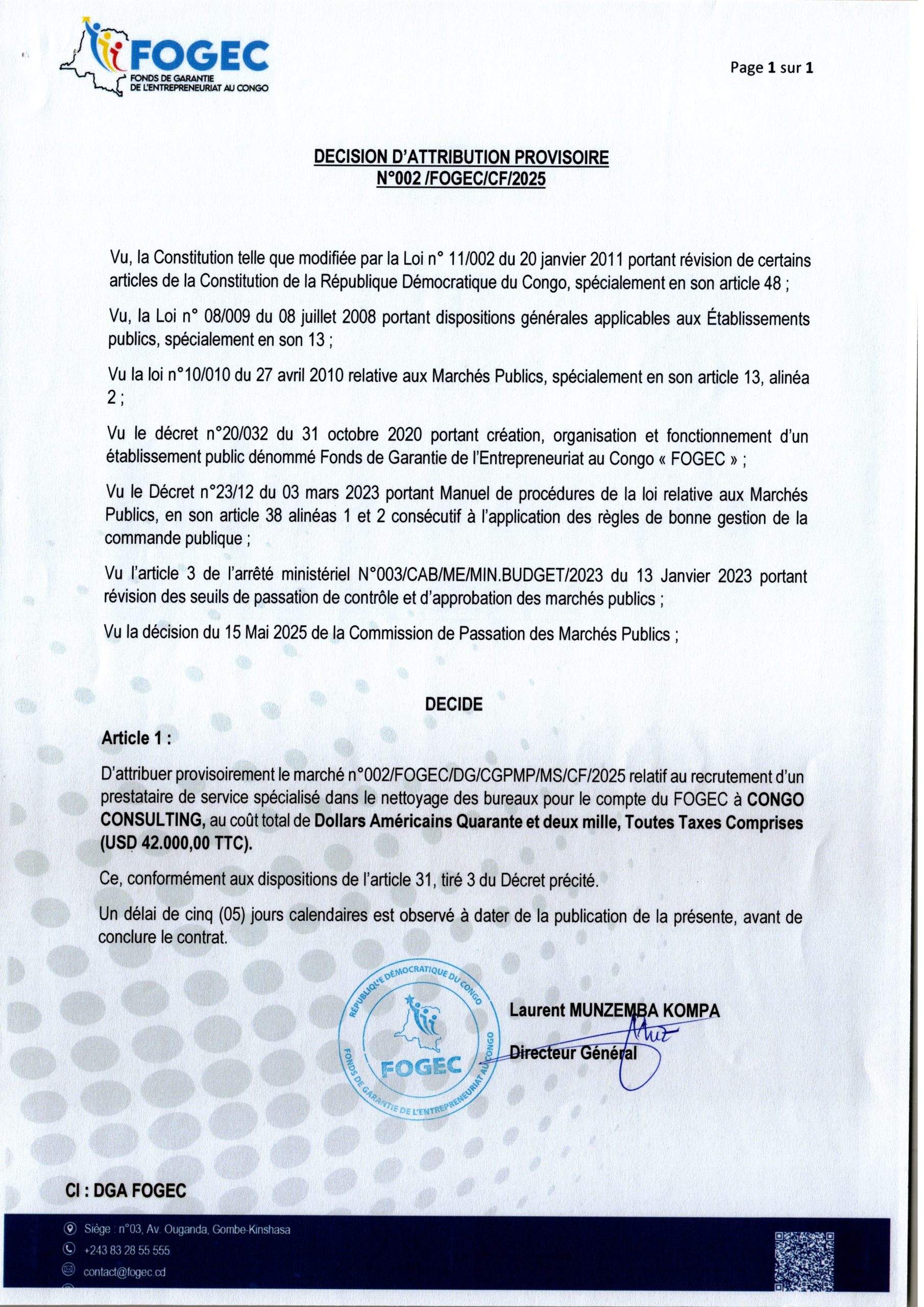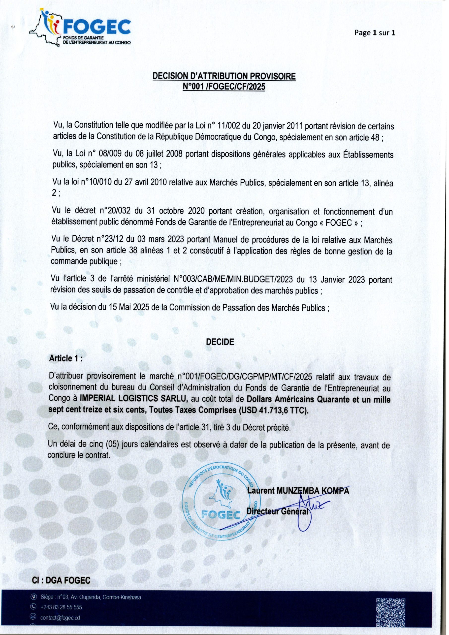 Attribution provisoire accordée à la société Intelligencia Tech Academy, en sigle ITS ACADEMY relative au recrutement d’un consultant (firme) chargé de dispenser une formation sur le logiciel de visualisation de données et d’analyse décisionnelle au bénéfice des agents de TRANS-ACADEMIA.