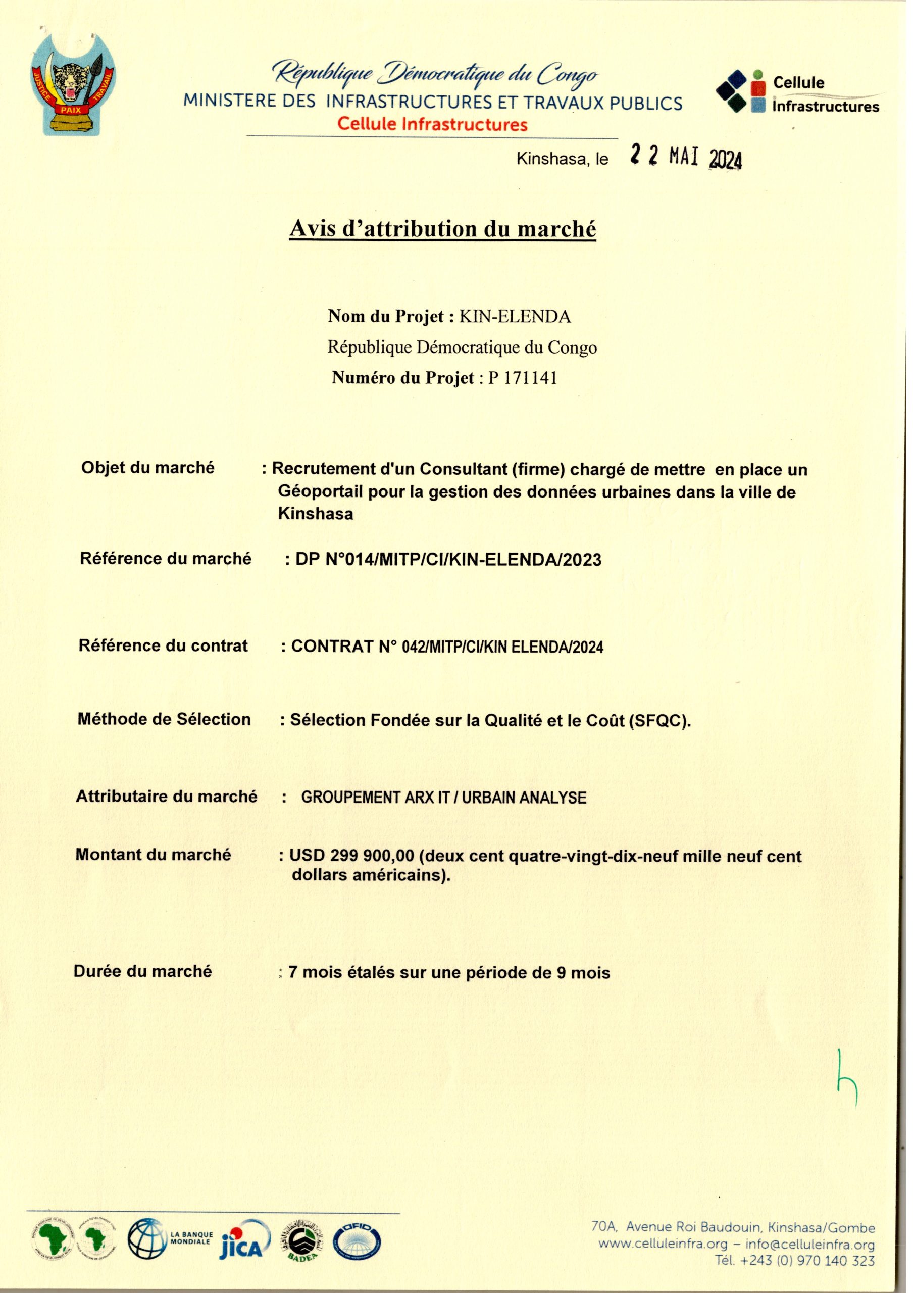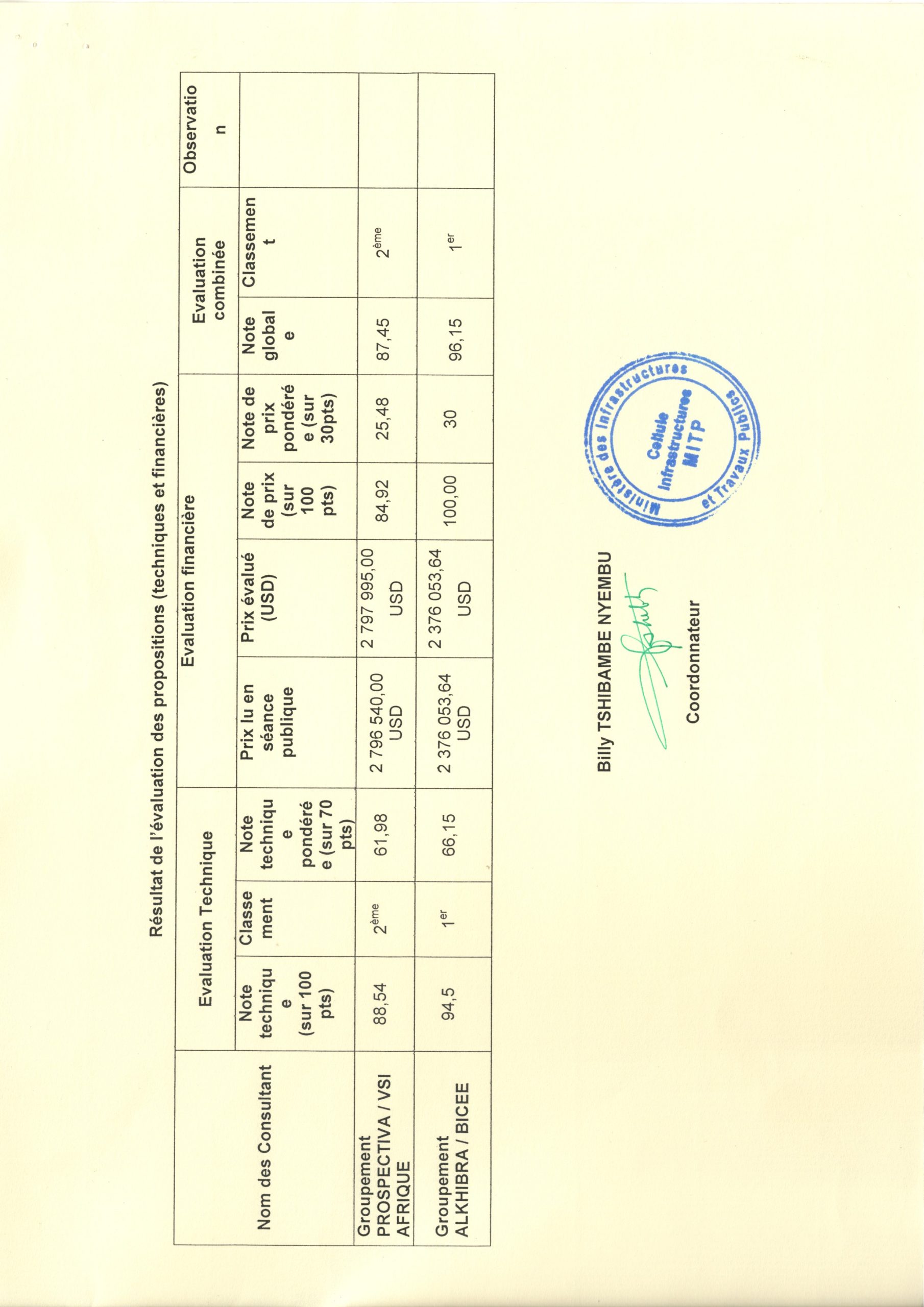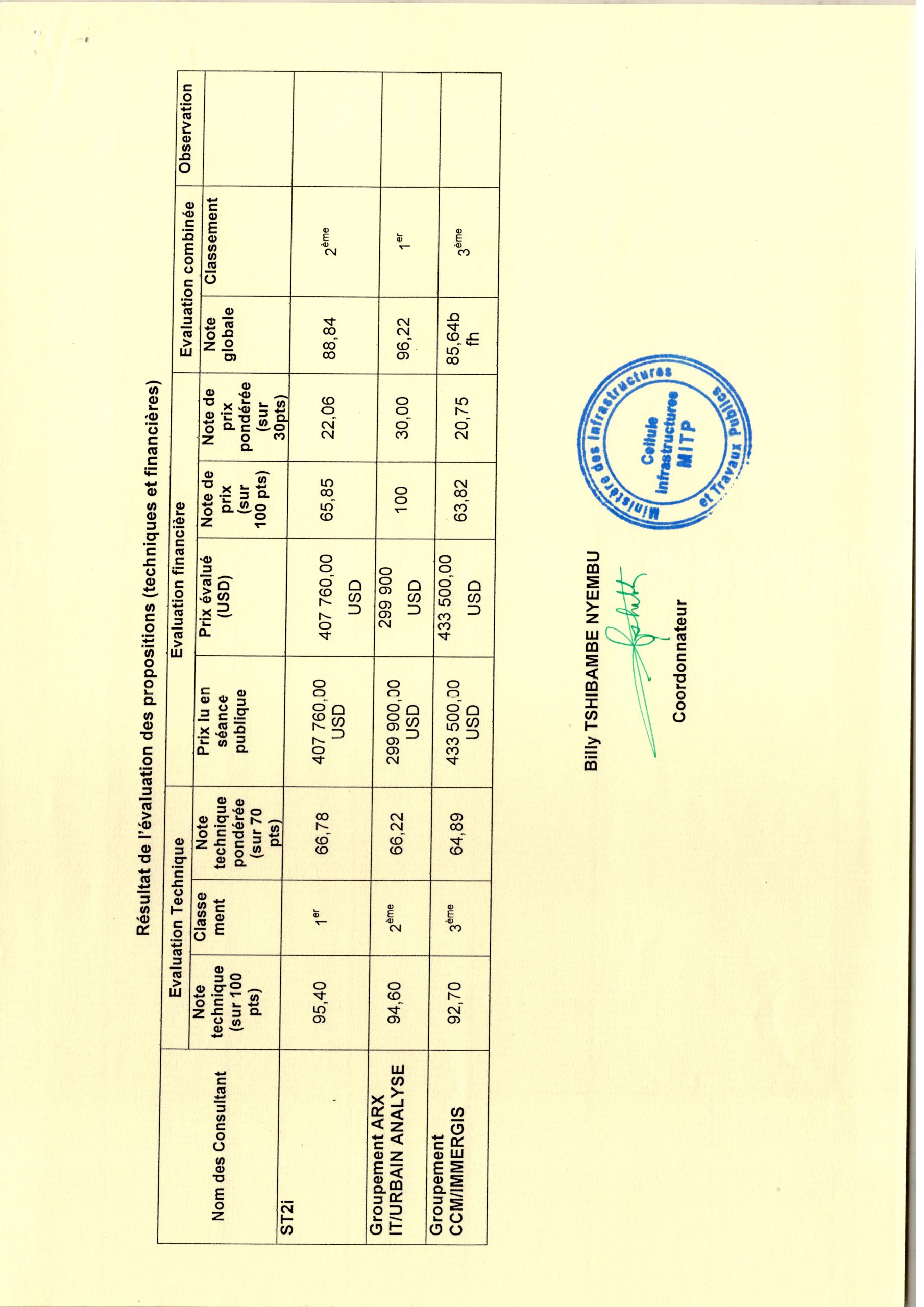 Attribution provisoire du BCECO accordée à Monsieur MUKOKA KAZADI Jonathan relative aux services d’un consultant (Individu) devant réaliser les études architecturales des travaux des travaux de construction d’un centre sportif dans le quartier Kemi dans la Commune de Lemba à Kinshasa.