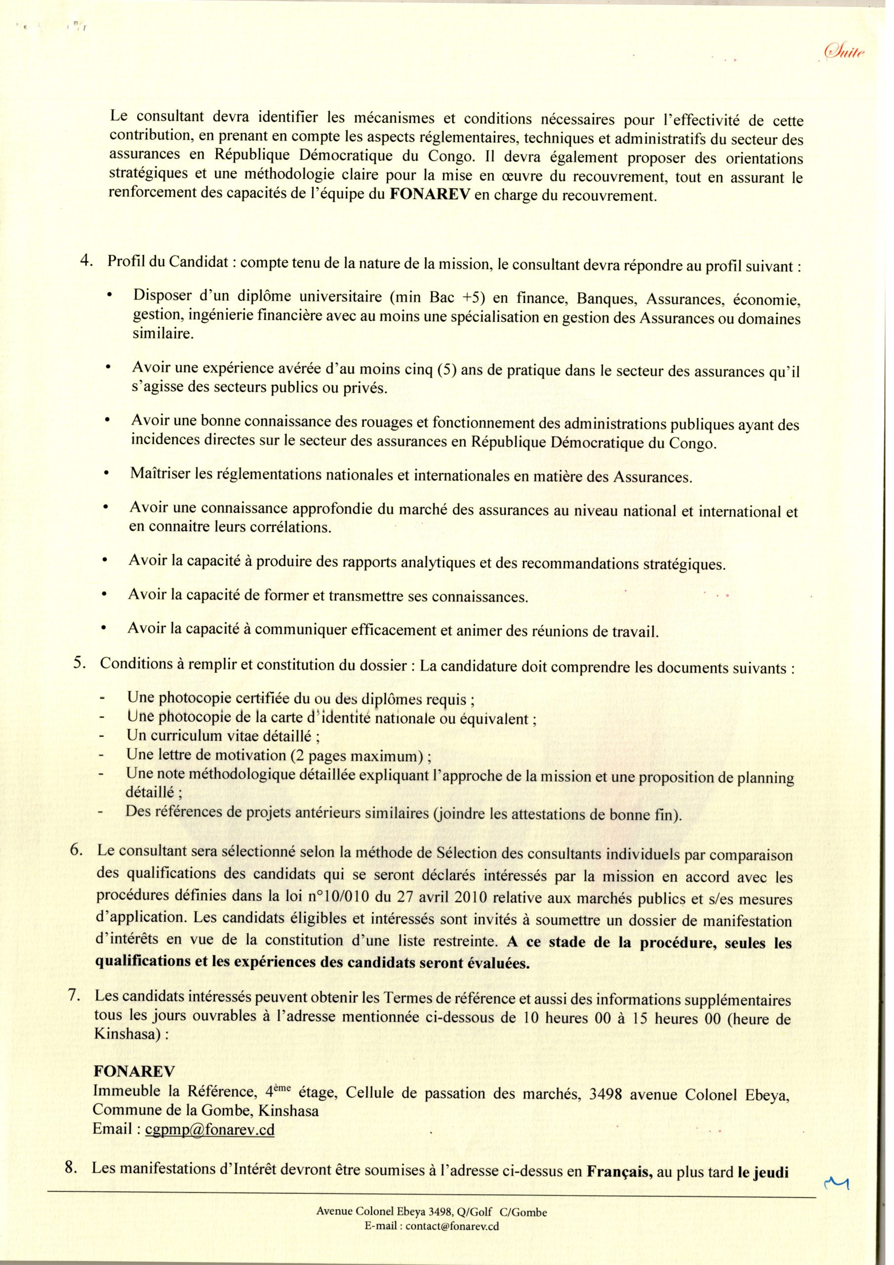 Recrutement d’un consultant pour la réalisation des études sur le marché des assurances.