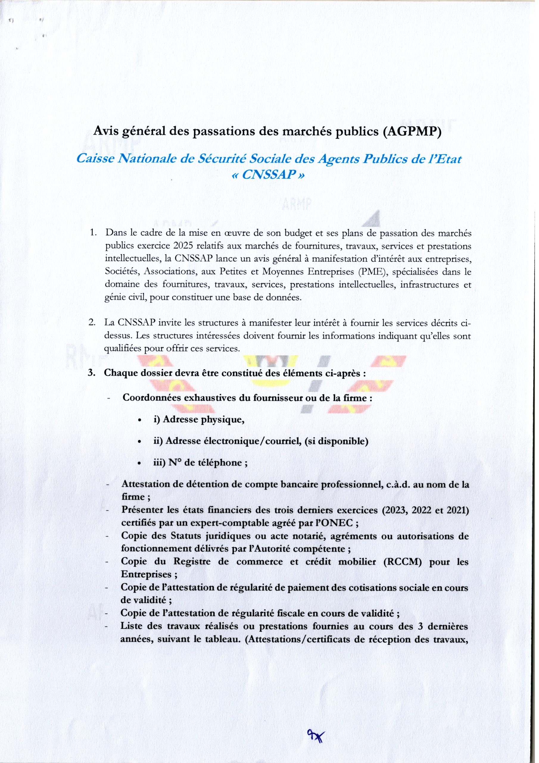Avis à manifestation d’intérêt pour l’actualisation de la base de données des fournisseurs à la CNSSAP.