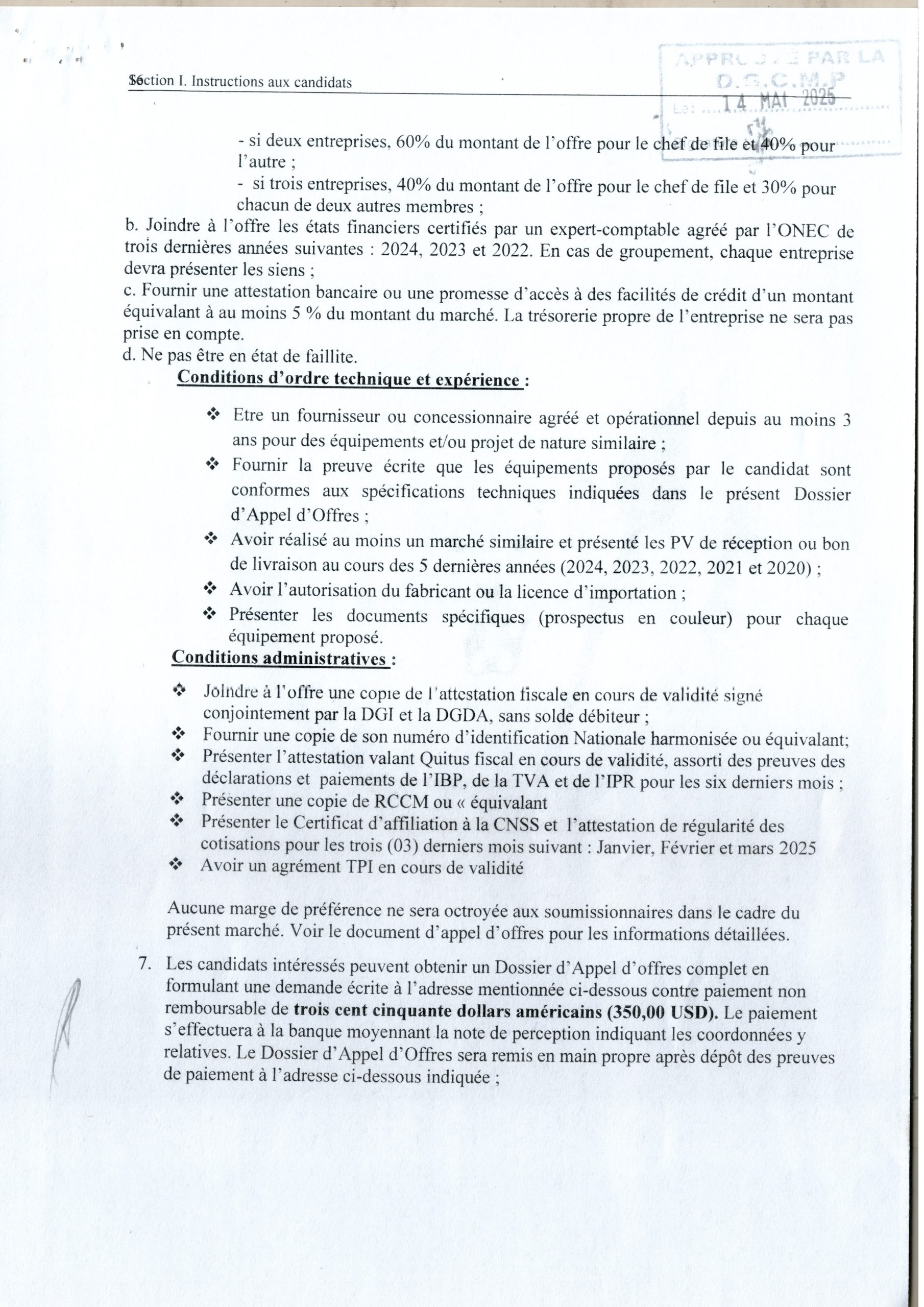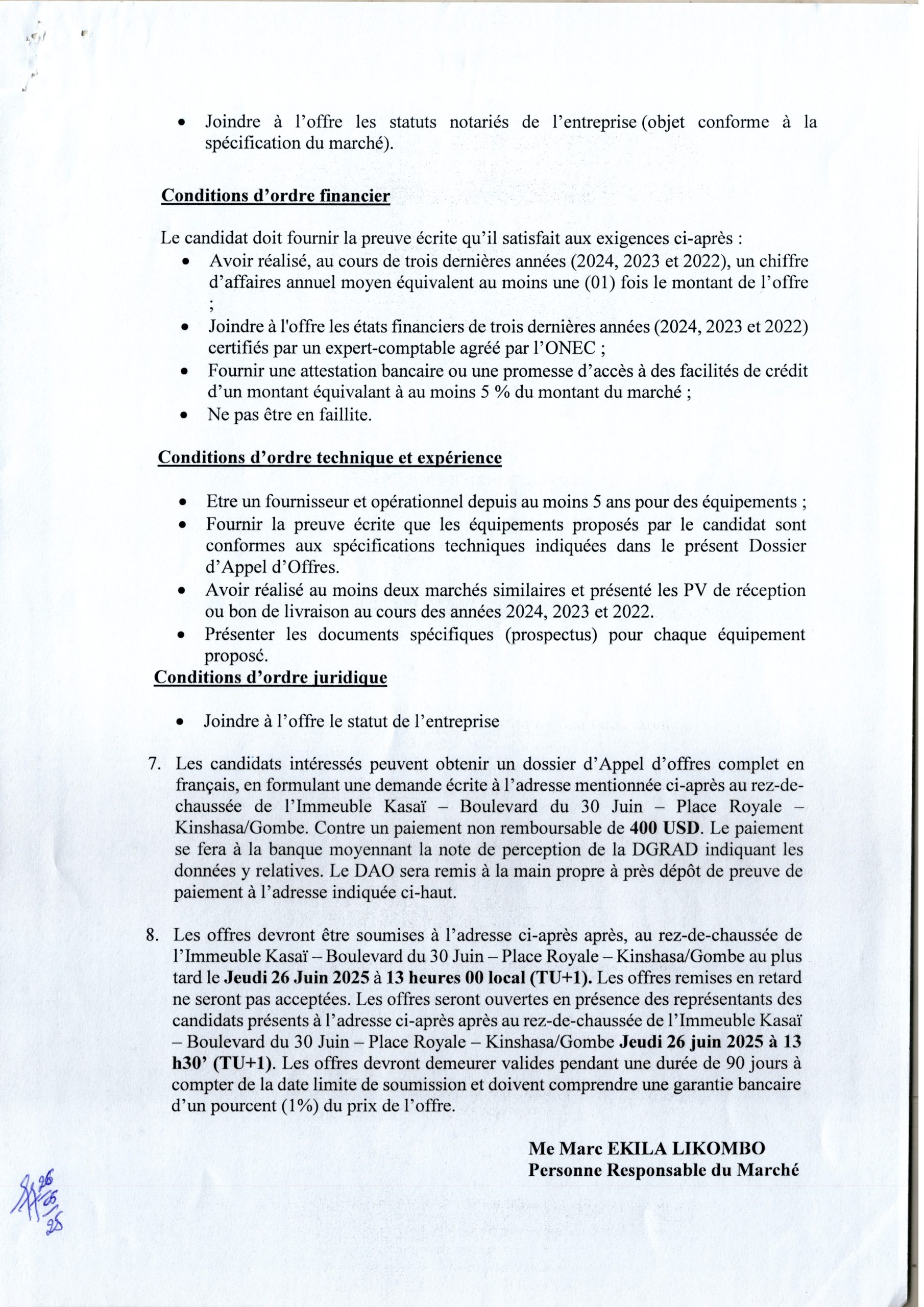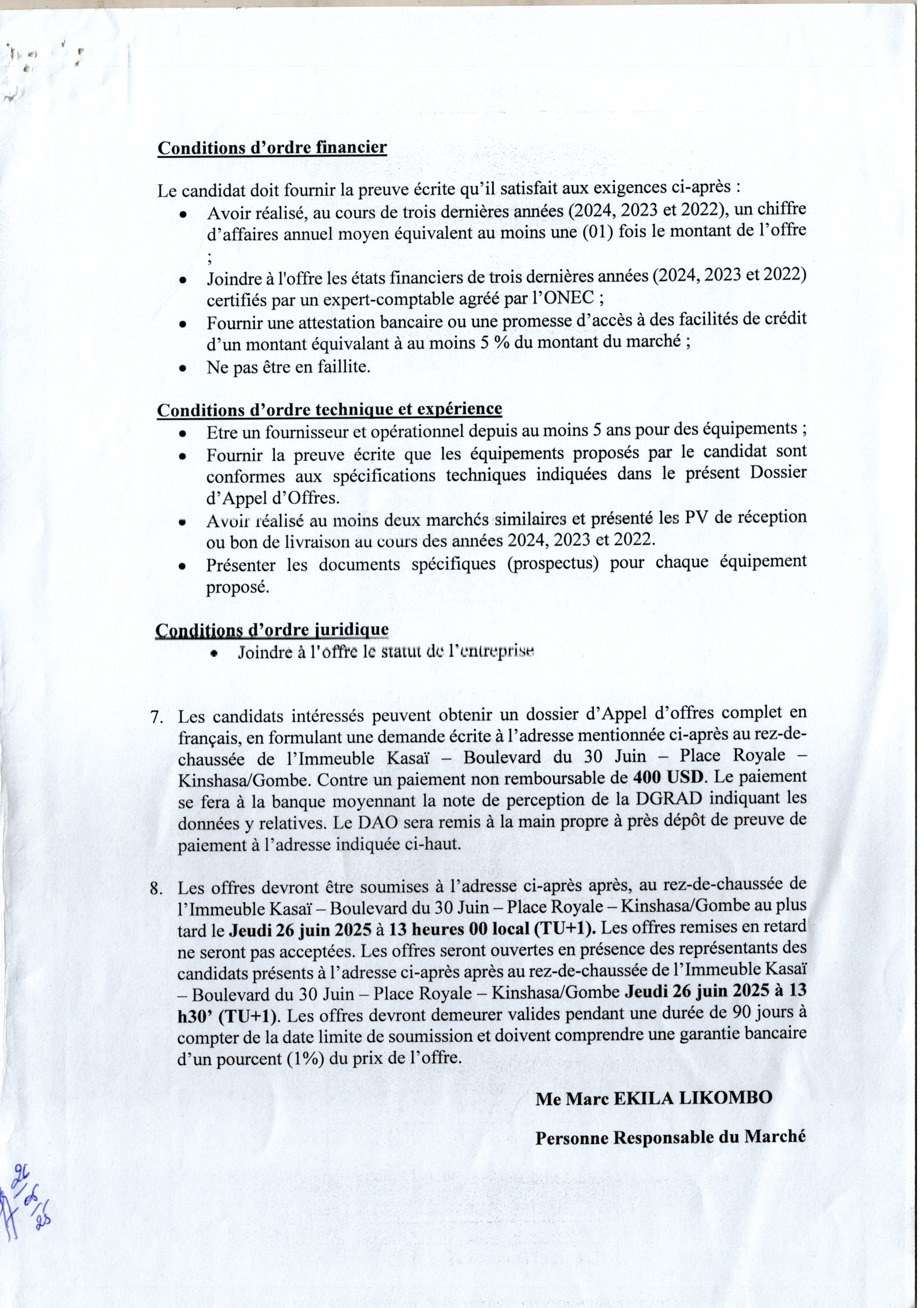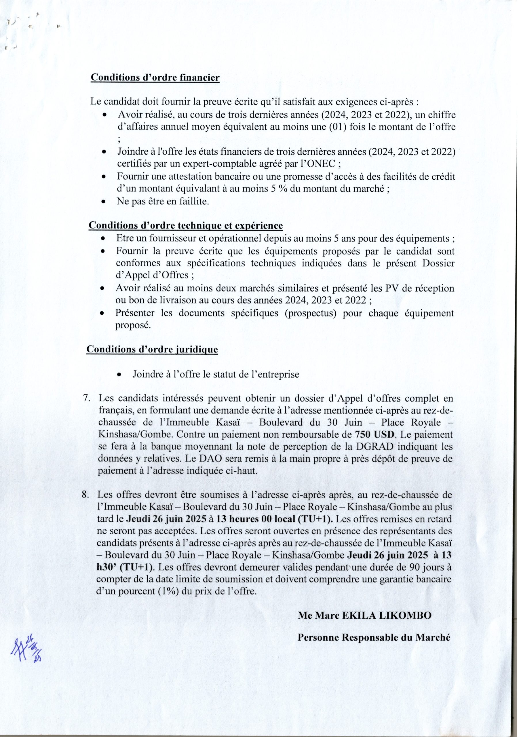 Acquisition des intrants pour le balisage des cours d’eau M’fimi et Lukeni en deux lots distincts.