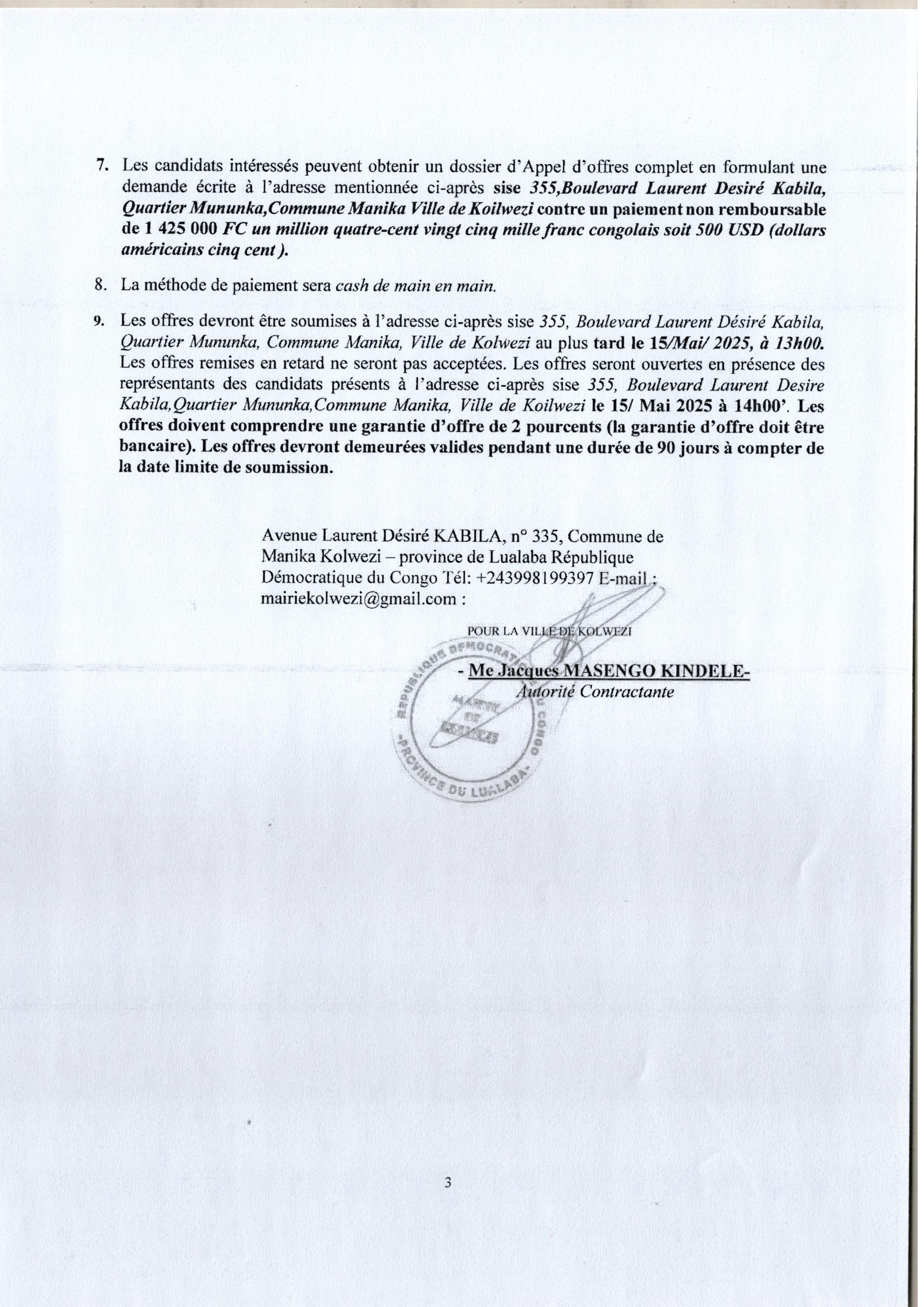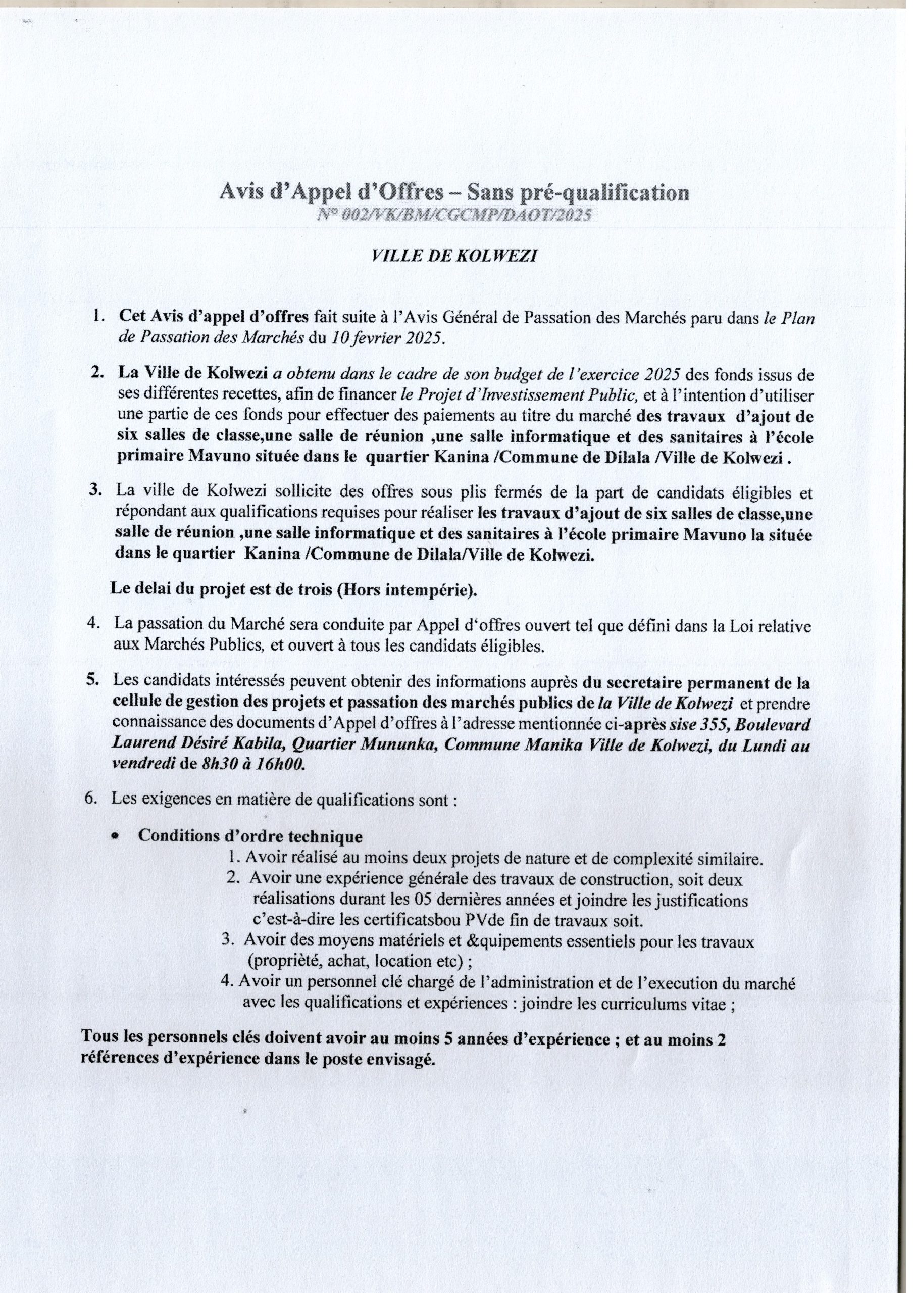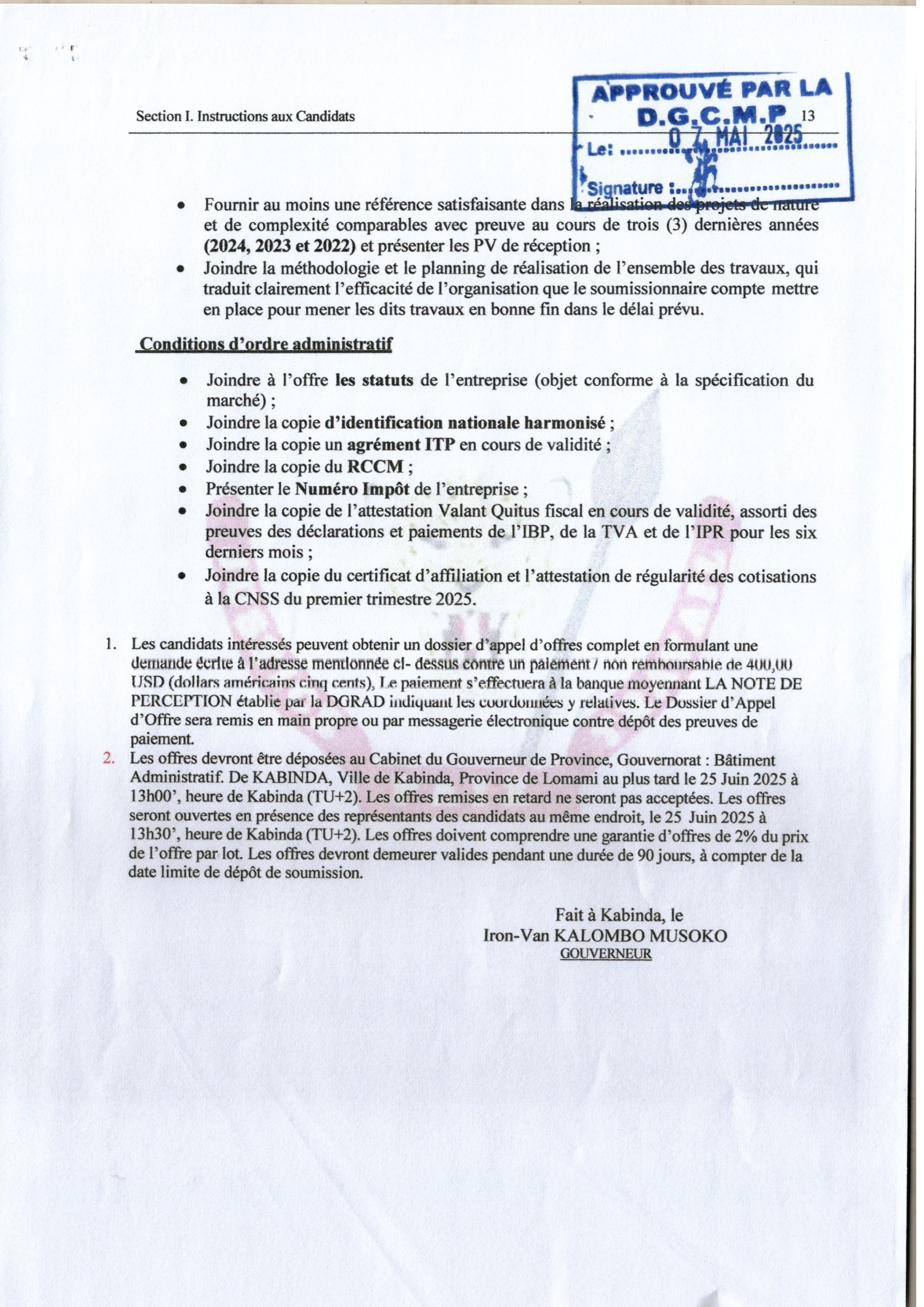 Travaux de construction des infrastructures sanitaires dans la province de Lomami repartis en trois (3) lots distincts