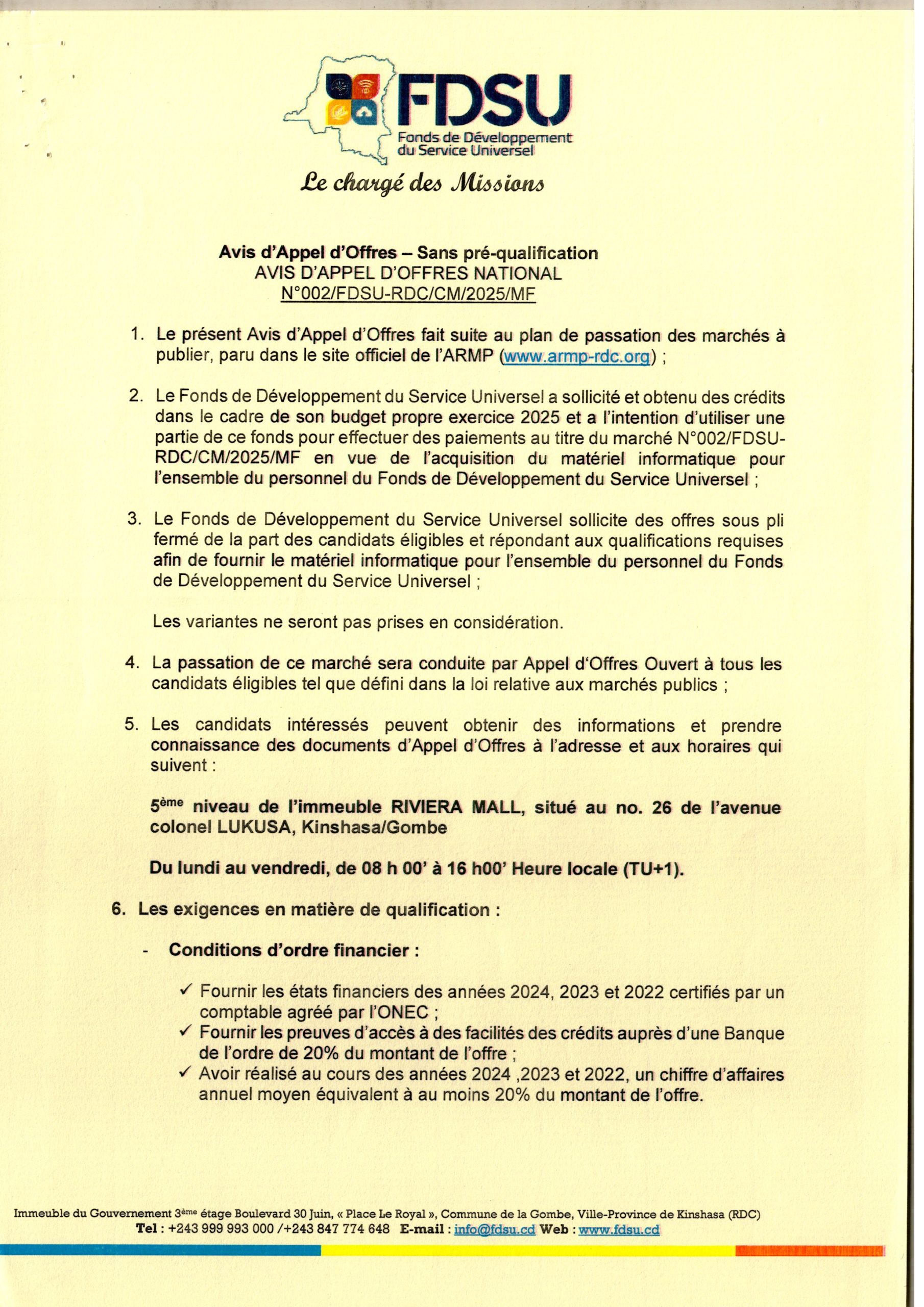 Acquisition des matériels informatiques pour l’ensemble du personnel du FDSU.