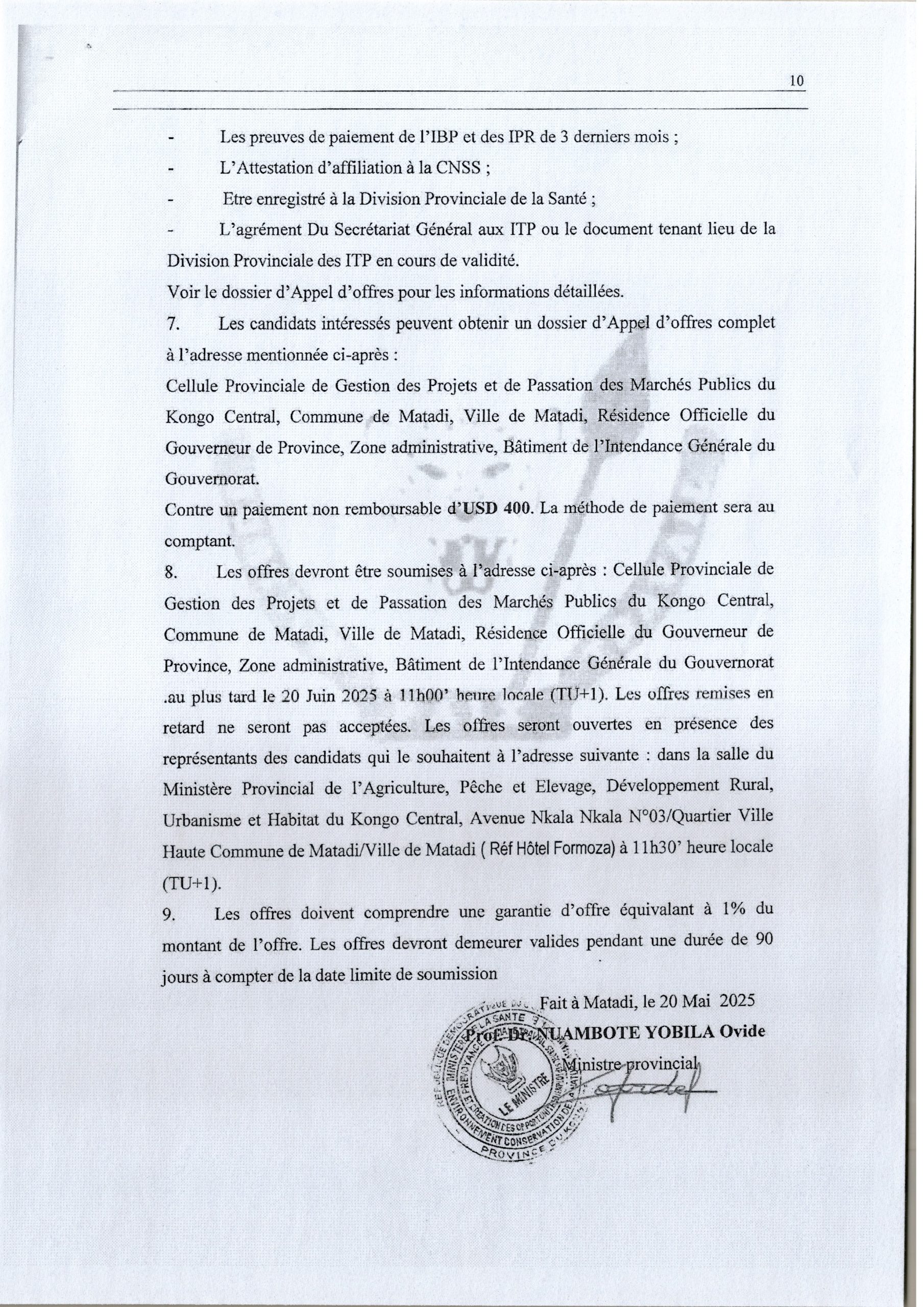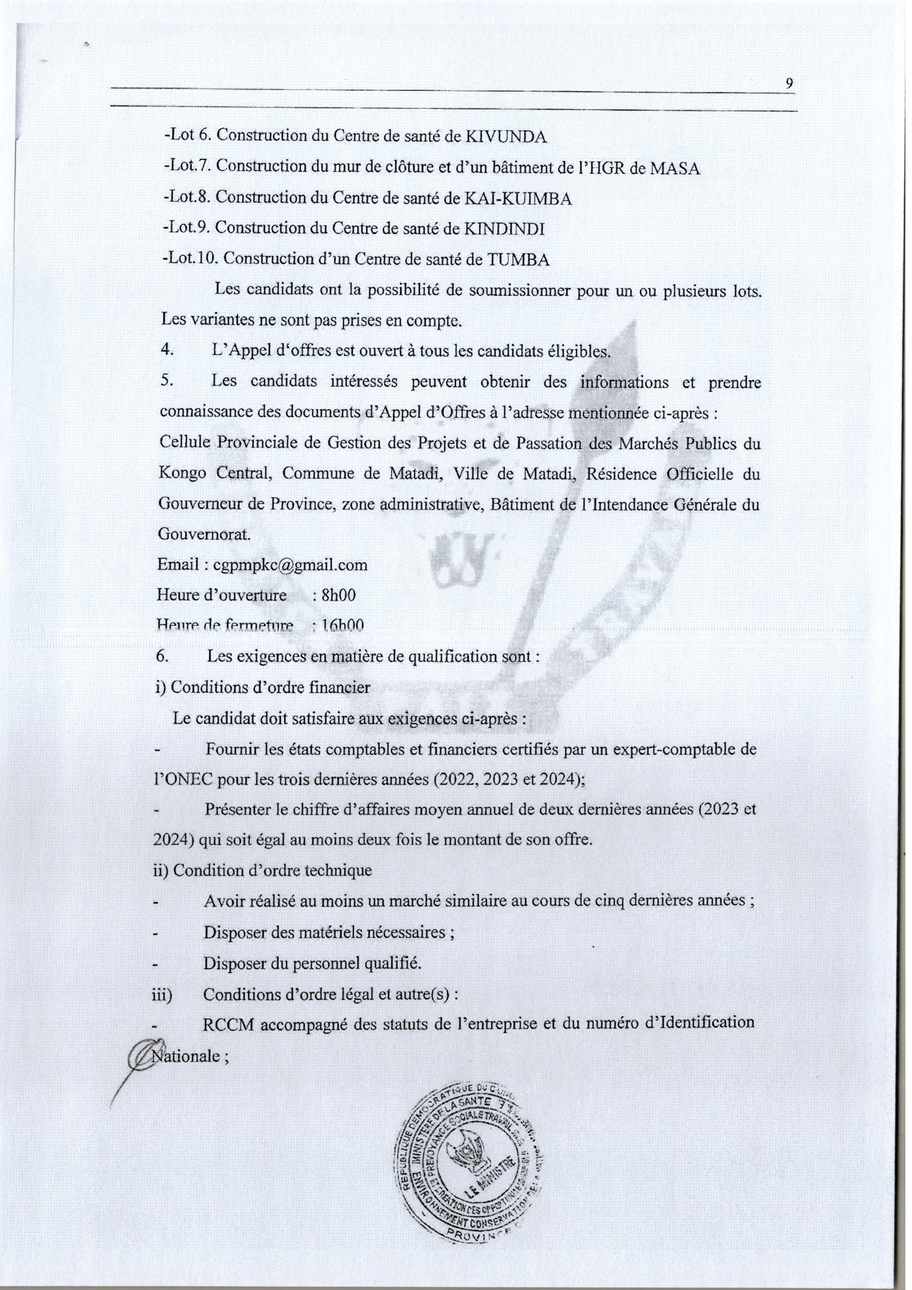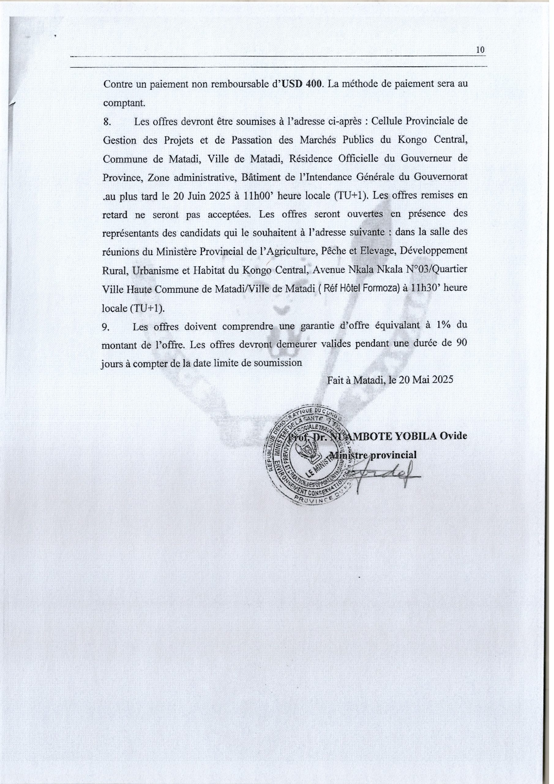 Attribution provisoire accordée à GENERALE MALTA FOREST (EGMF sa avec CA) relative aux travaux de réhabilitation, reconstruction et/ou modernisation de 27 km de la voirie urbaine sur 8 axes principaux prioritaires de la ville de Kinshasa…..