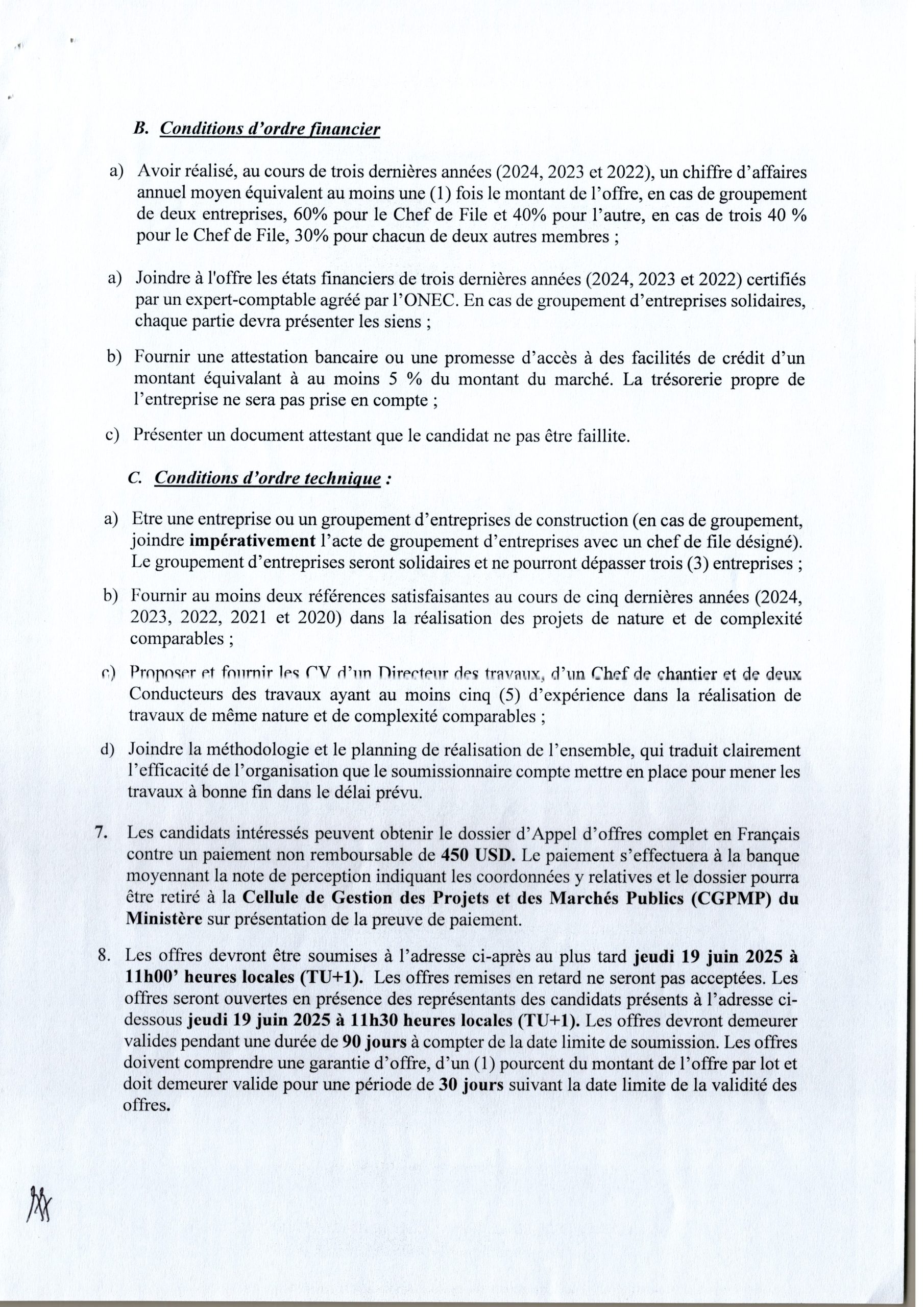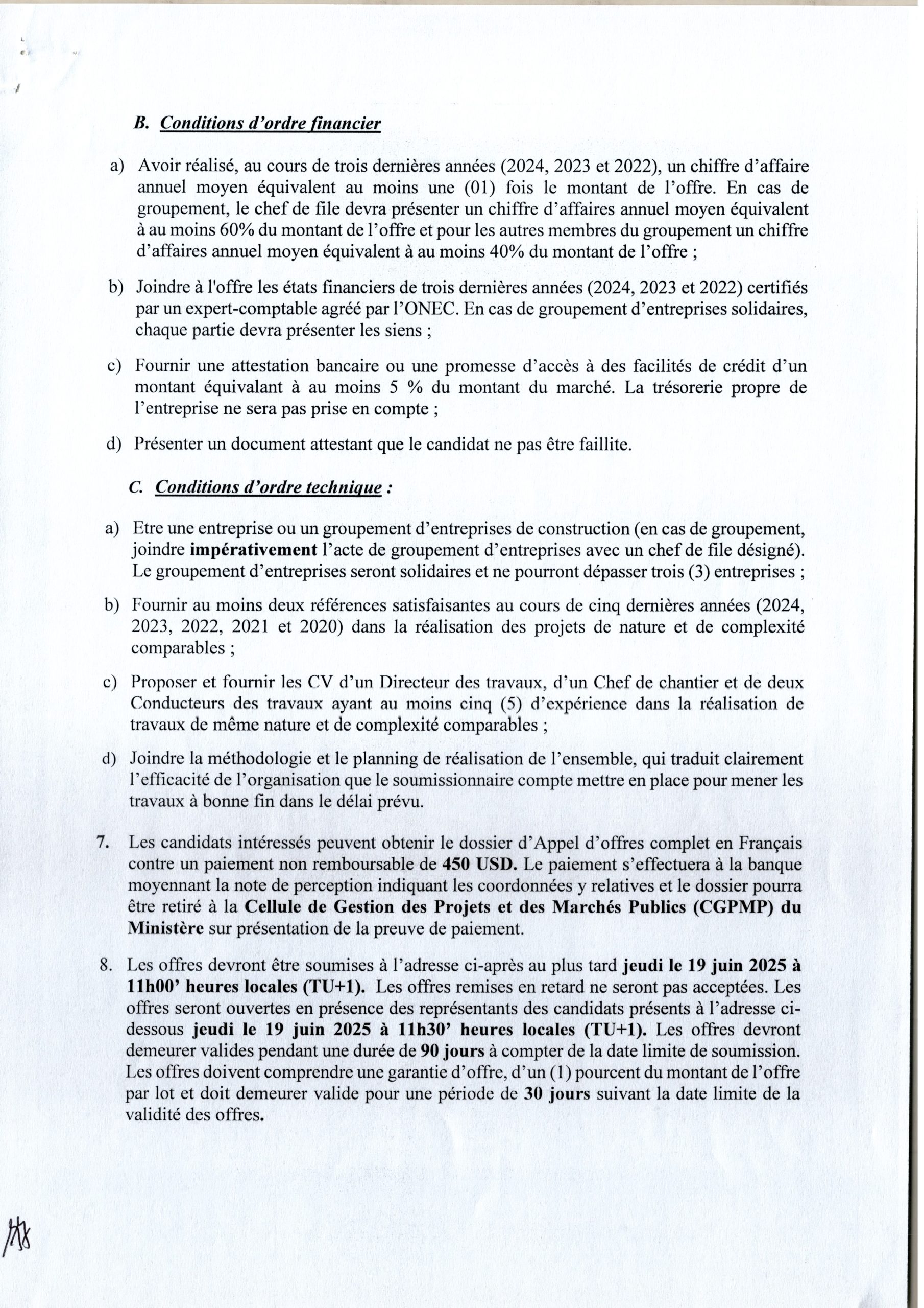 Avis d’attribution définitive accordée à la société FLOGEX SARL relatif au service de consultant, firme chargée de l’élaboration des études de faisabilité de la voie d’accès au site du projet…