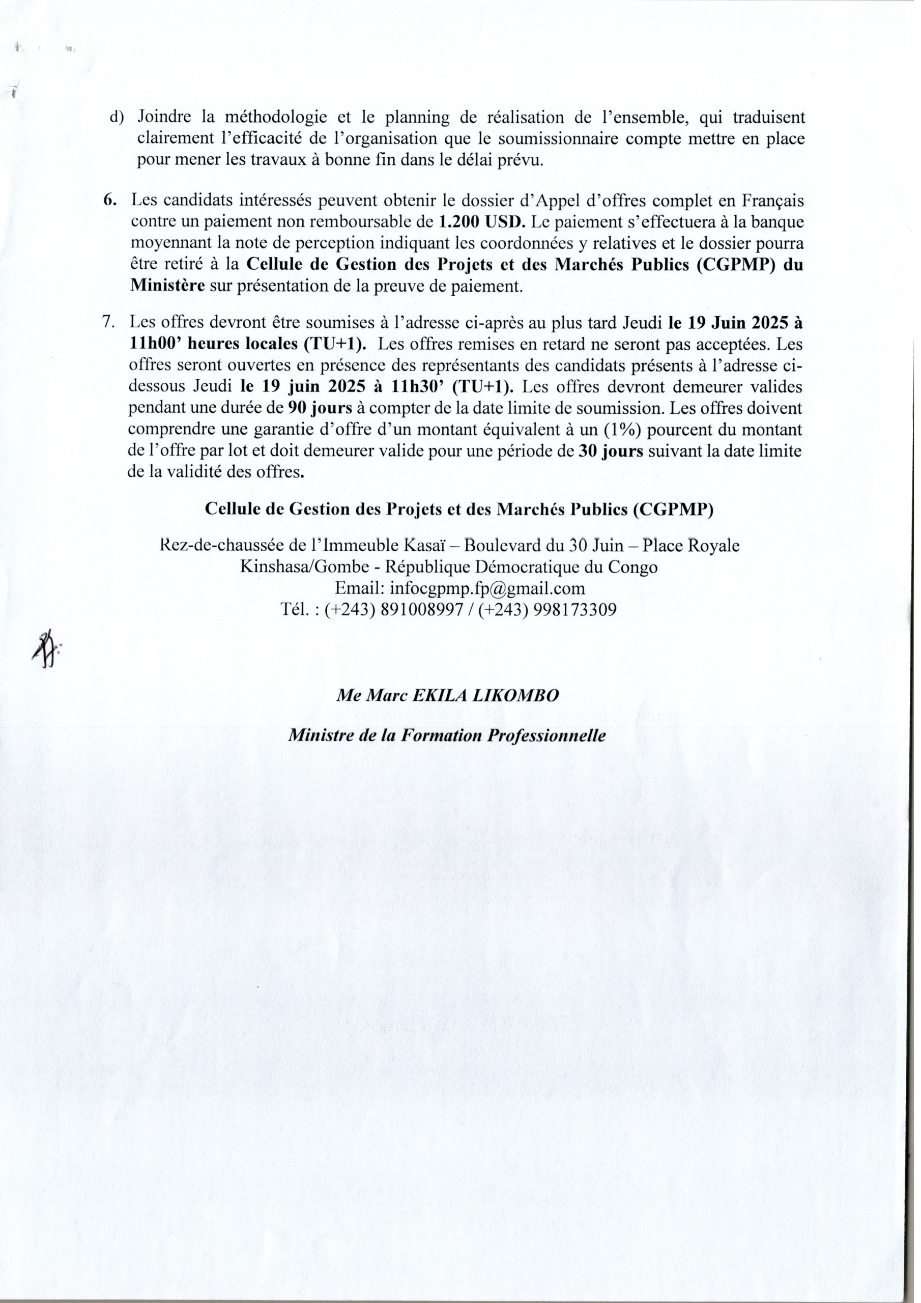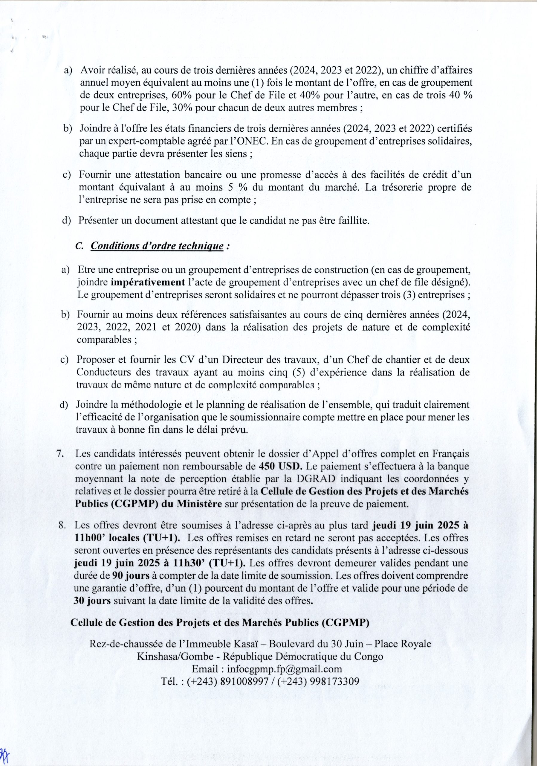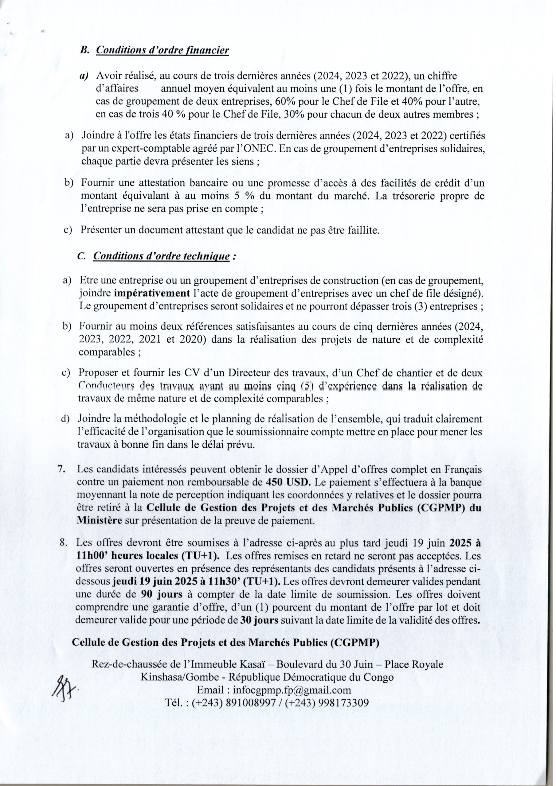 Travaux de Construction de dix (10) centres de formation professionnelle dans les territoires du Kasaï-Central et Kasaï-Oriental, marché à dix (10) lots en République Démocratique du Congo