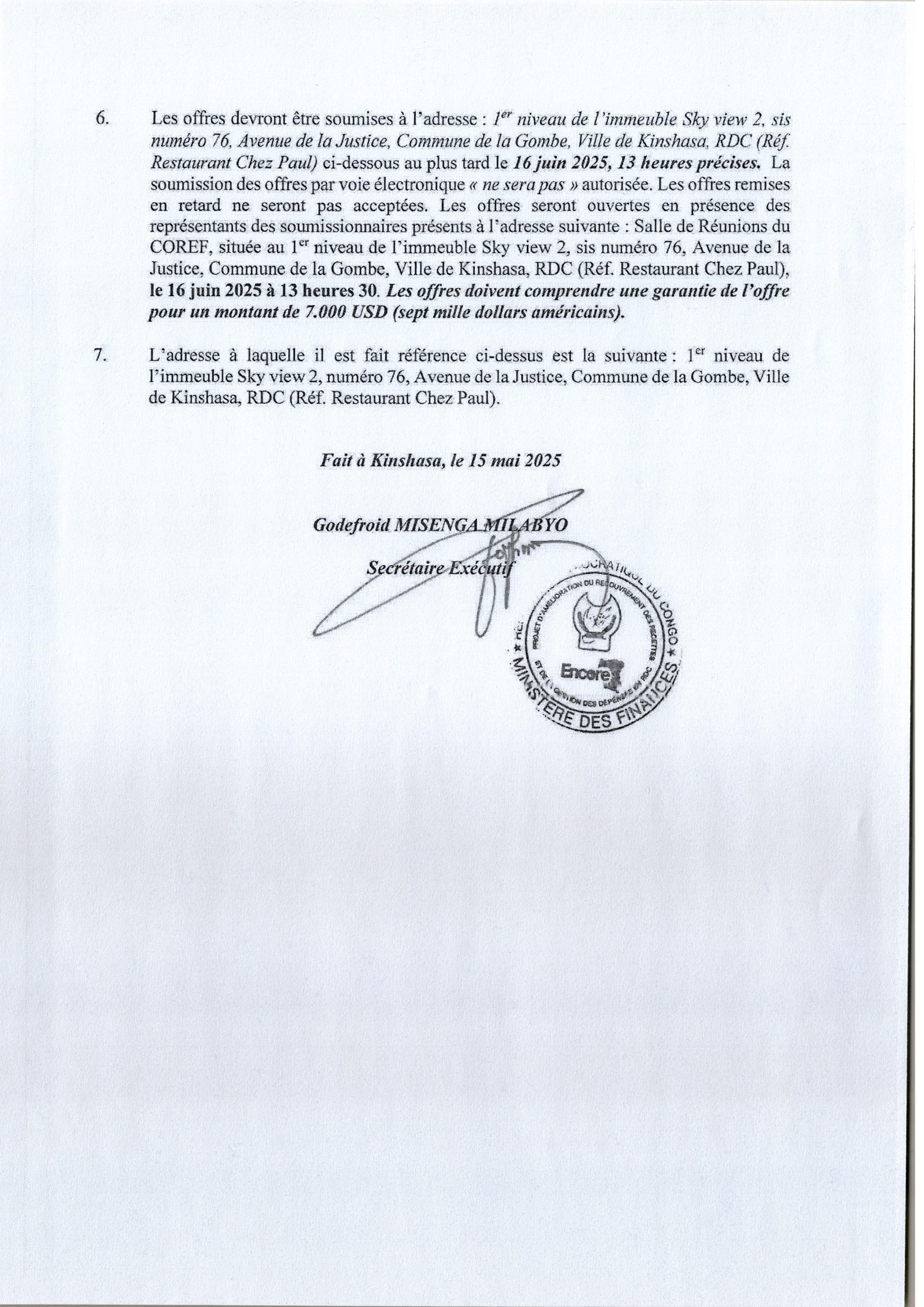 Acquisition des mobiliers des bureaux en faveur de l’Initiative pour la Transparence dans les Industries Extractives (ITIE-RDC)